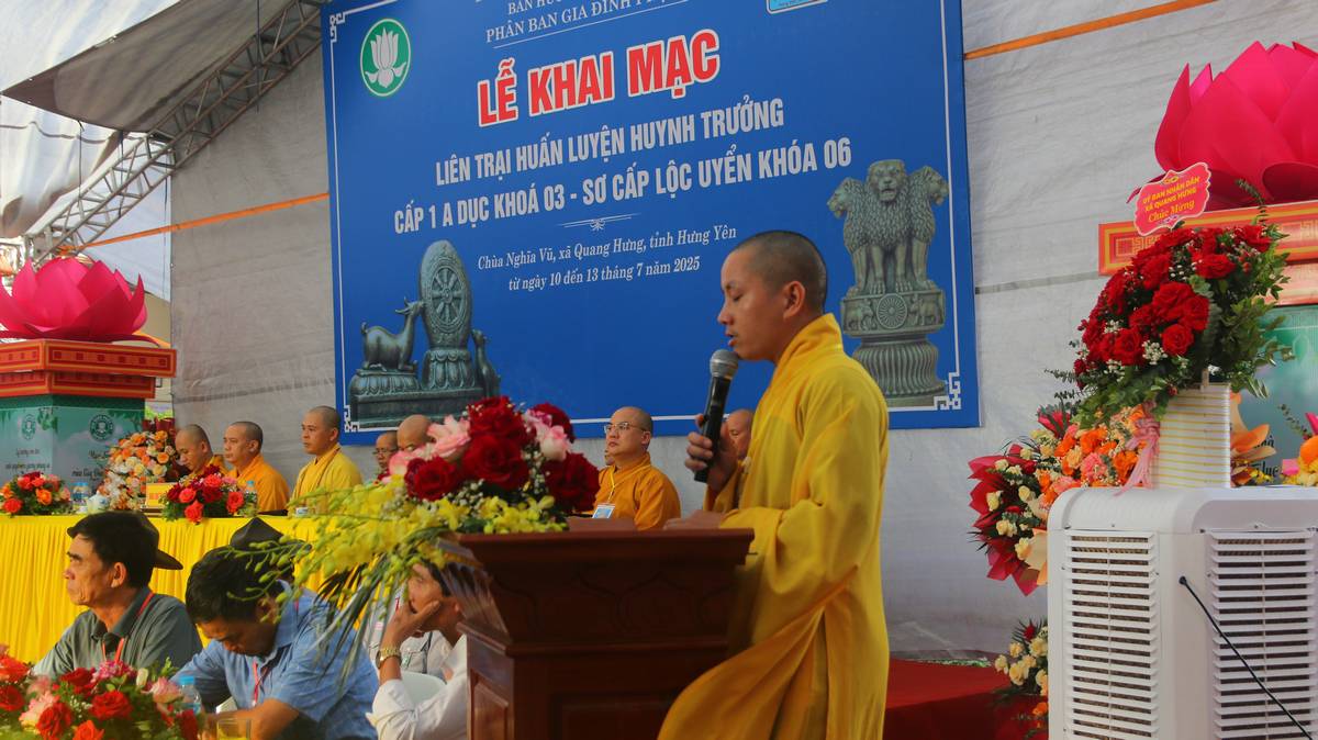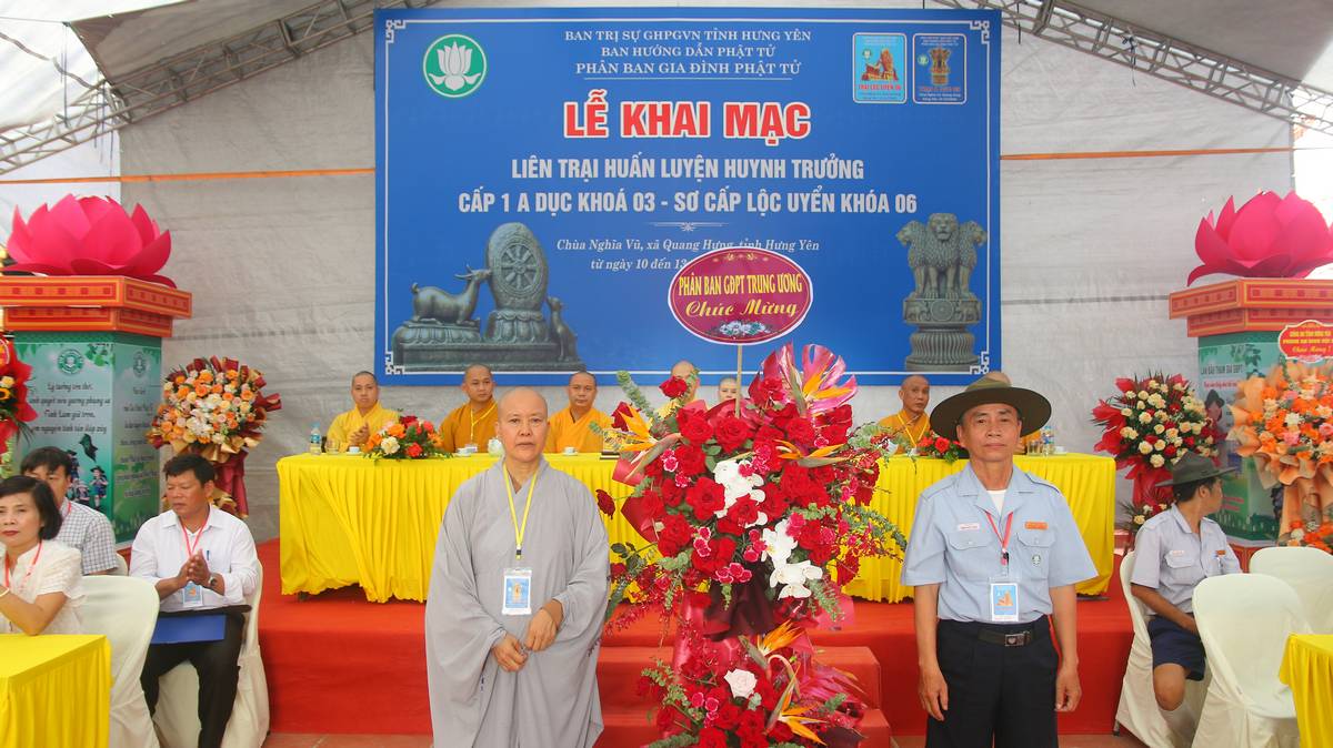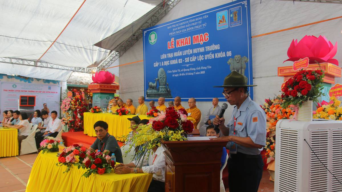 Ban đạo từ tại buổi lễ, Đại đức Thích Nguyên Quang – Ủy viên Thường trực Ban Trị sự GHPGVN tỉnh Hưng Yên đã tán thán công đức của Ban Hướng dẫn Phật tử, Ban Hướng dẫn Phân ban GĐPT tỉnh Hưng Yên và các Huynh trưởng Ban quản trại, trại sinh đã tích cực dành tâm huyết, thời gian để tổ chức và tham gia kỳ trại. Đại đức cũng mong muốn toàn thể Huynh trưởng trại sinh phát huy tinh thần của người Huynh trưởng áo lam, người Phật tử chân chính để góp phần xây dựng đạo pháp và xã hội.
