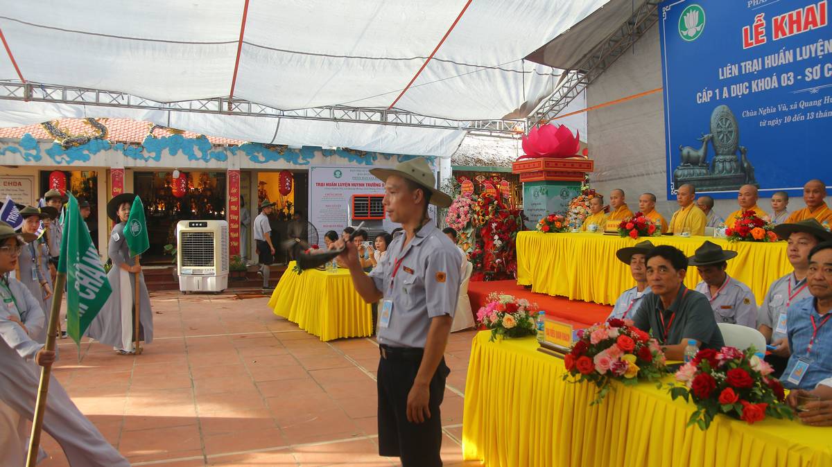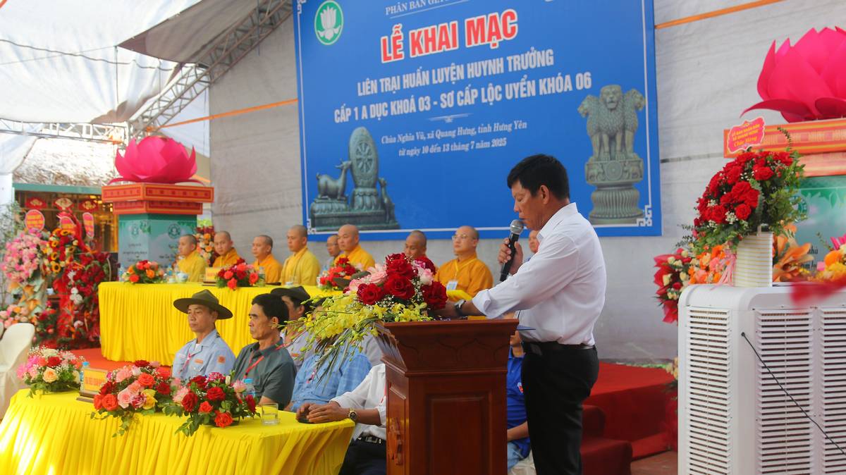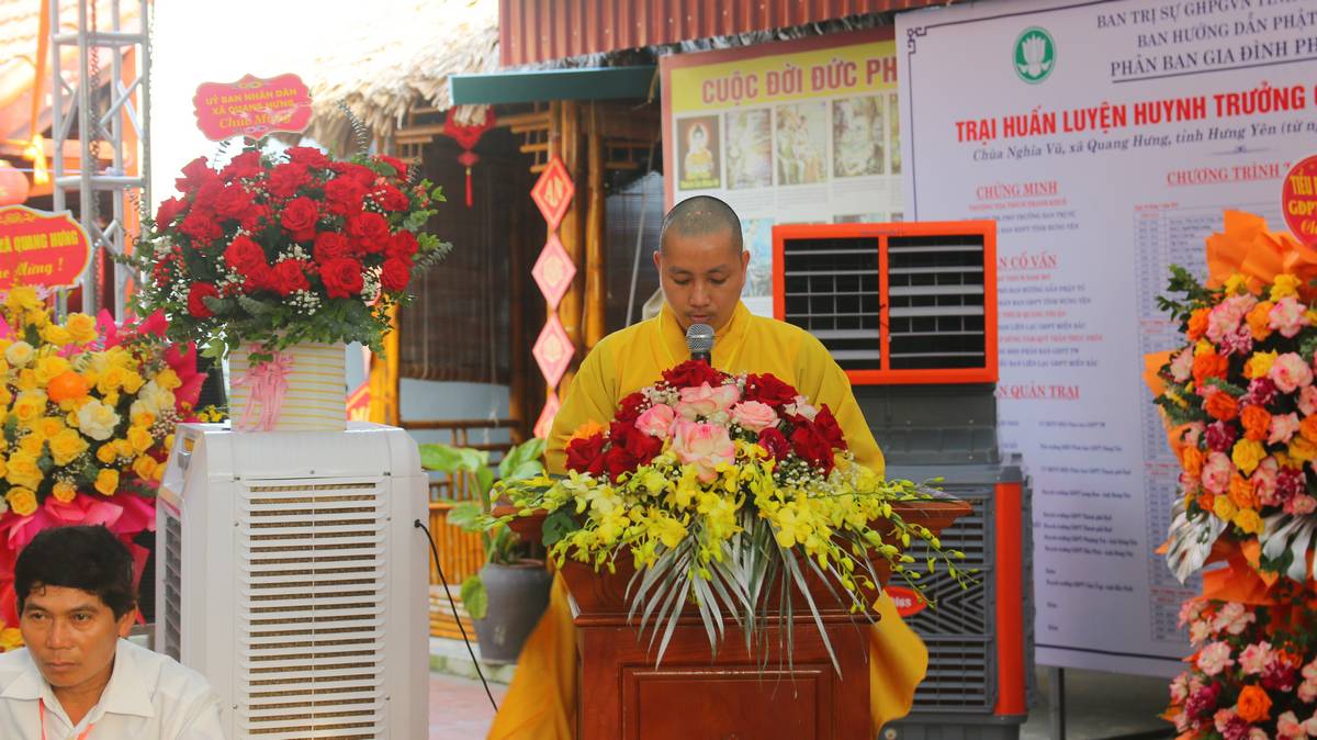 Đại diện chính quyền địa phương, ông Nguyễn Văn Đông – Bí thư chi bộ, Trưởng thôn Nghĩa Vũ, xã Quang Hưng đã có những lời phát biểu động viên đại đức trụ trì cùng toàn thể Ban quản trại và trại sinh. Ông cũng chia sẻ tinh thần hỗ trợ nhiệt thành đối với các hoạt động của kỳ trại.