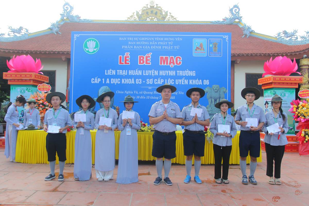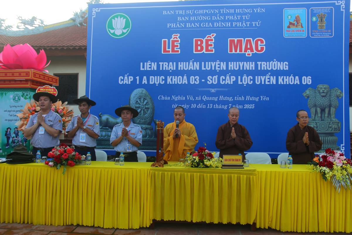 Vào hồi 06h00 sáng ngày 13/7/2025 (nhằm ngày 19/6/Ất Tỵ), Lễ bế mạc Liên trại huấn Huynh trưởng cấp I A Dục 3 và sơ cấp Lộc Uyển 6 GĐPT tỉnh Hưng Yên năm 2025 đã được diễn ra tại chùa Nghĩa Vũ, xã Quang Hưng, tỉnh Hưng Yên.