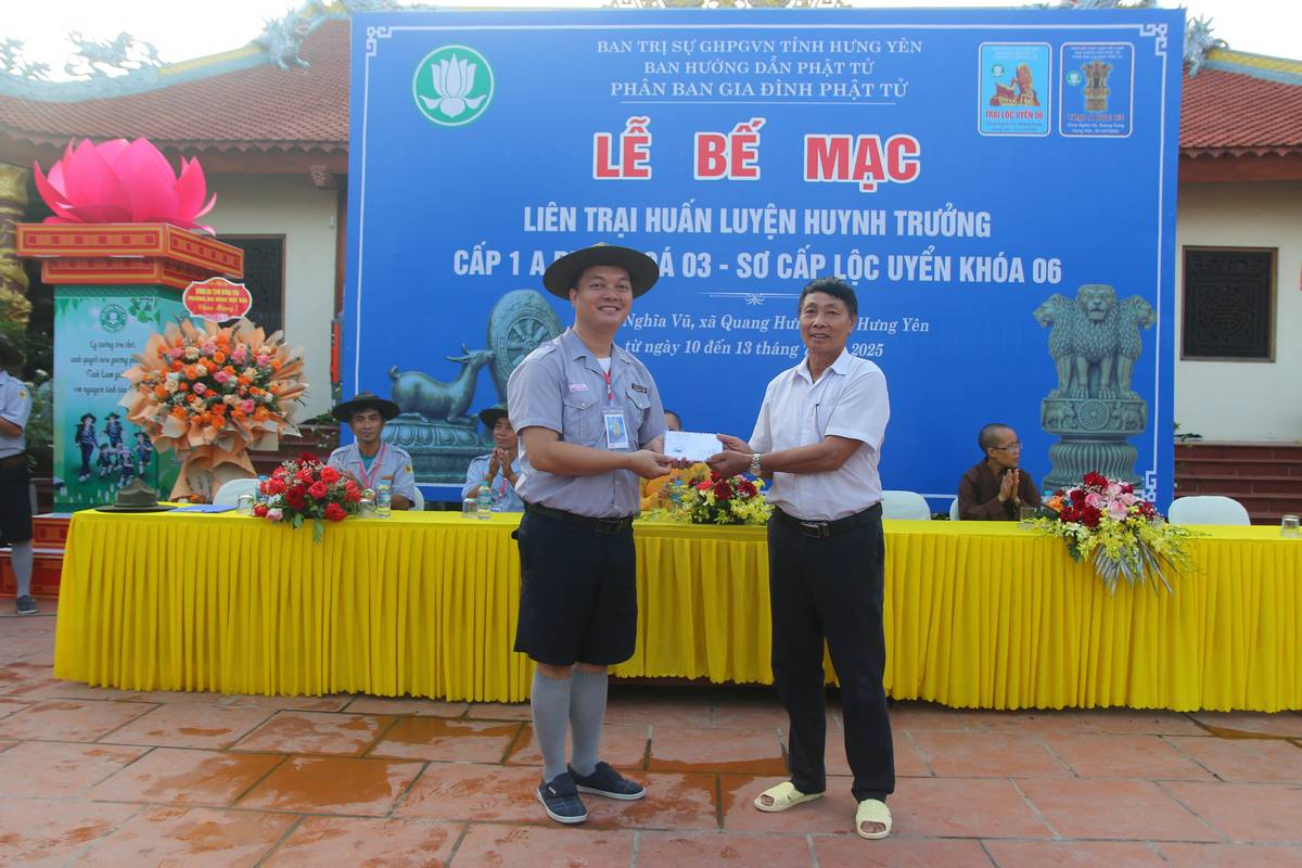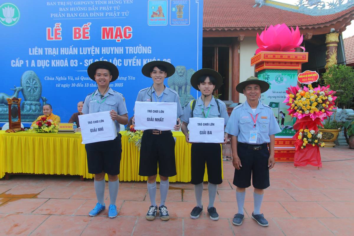 Ban quản trại cũng trao tặng phần quà cho các đội chơi có kết quả xuất sắc trong trò chơi lớn của Liên trại với chủ đề về Đức Phật Hoàng Trần Nhân Tông. Với tấm lòng nhân ái, sẻ chia, toàn thể Ban quản trại và trại sinh Liên trại huấn luyện cũng đã có phần quà đóng góp vào bếp ăn từ thiện của chùa Nghĩa Vũ.