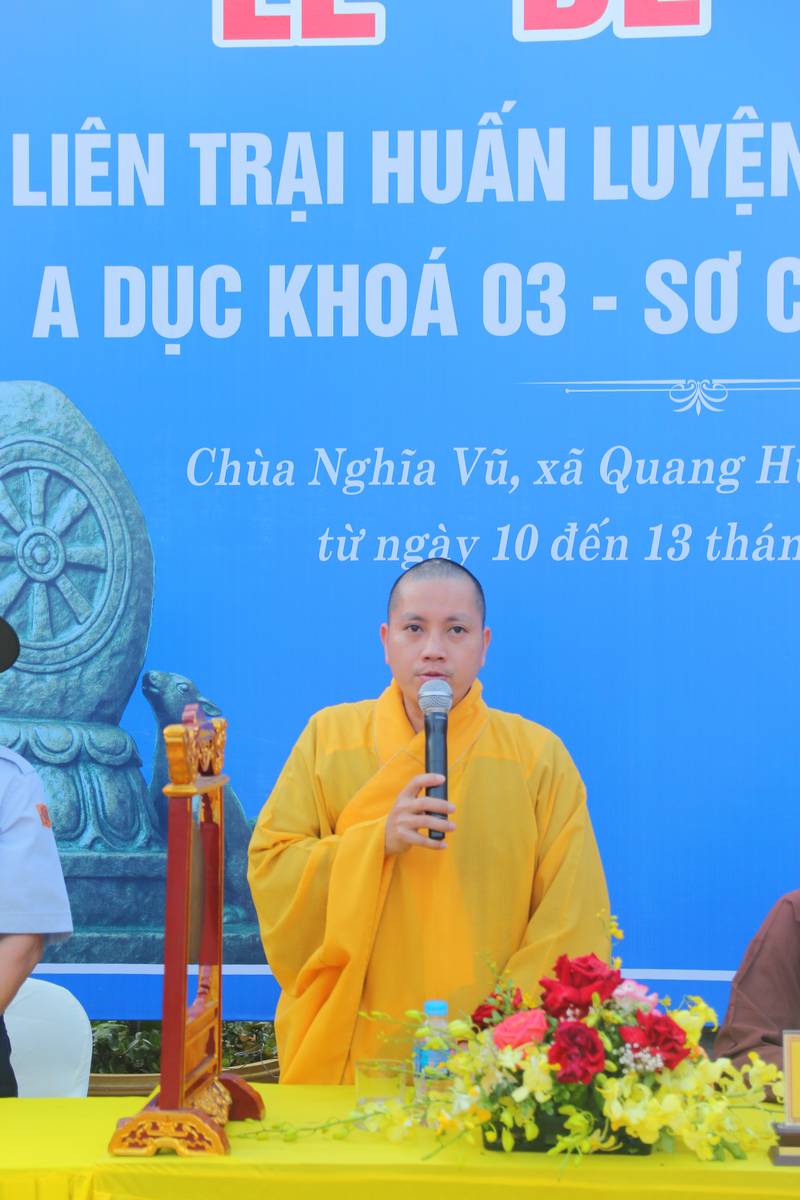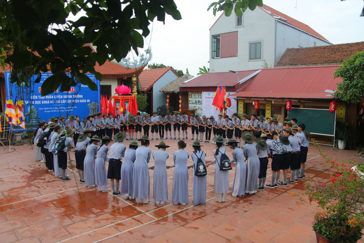 Đại diện 02 Ban quản trại, Huynh trưởng cấp Tín Nhuận Đạo Nguyễn Phi Long – Trại trưởng Trại Lộc Uyển 06 đã trình bày báo cáo tổng kết hoạt động của Liên trại huấn luyện. Theo báo cáo, Liên trại diễn ra từ ngày 10 đến 13/7/2025 tại chùa Nghĩa Vũ, xã Quang Hưng, tỉnh Hưng Yên. Các hoạt động đào tạo, huấn luyện, học tập và sinh hoạt của Liên trại đều được diễn ra thuận lợi theo đúng kế hoạch đề ra với điều kiện thời tiết thuận lợi cùng sự hỗ trợ tận tâm của Đại đức trụ trì và quý Phật tử chùa Nghĩa Vũ. Kết thúc trại đã có 23 trại sinh trại A Dục 3 và 38 trại sinh trại Lộc Uyển 6 hoàn thành trọn vẹn kỳ trại và dược cấp chứng nhận tham dự trại.