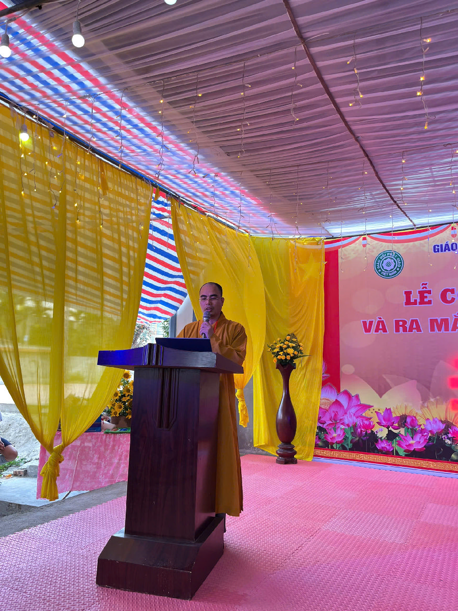 Phát biểu khai mạc, Đại đức Thích Chánh Dũng – Trụ trì, cố vấn giáo hạnh GĐPT Phù Sa, Trưởng ban tổ chức buổi lễ đã chào mừng chư tôn đức, quý vị quan khách cùng toàn thể nhân dân, Phật tử và các Huynh trưởng, Đoàn sinh về tham dự buổi lễ.