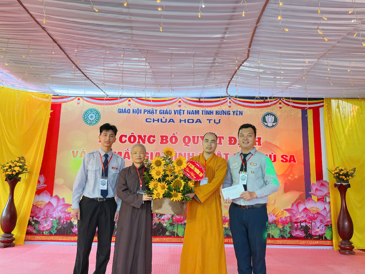 Tại buổi lễ ra mắt, GĐPT Phù Sa đã nhận được những lẵng hoa và phần quà từ chư tôn đức chứng minh, Ban Hướng dẫn Phân ban GĐPT tỉnh Hưng Yên, GĐPT Phương Trà cùng quý Huynh trưởng, Phật tử tham dự.