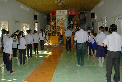 Trong lúc các em đoàn sinh chuẩn bị cho đêm diễn văn nghệ ban HTr chúng tôi tiếp tục ghé thăm chùa Trung Khánh – đường Trần Hưng Đạo – Tp. Kon Tum và đây cũng là địa điểm cuối cùng ngày hành hương của GĐPT Kỳ Quang.