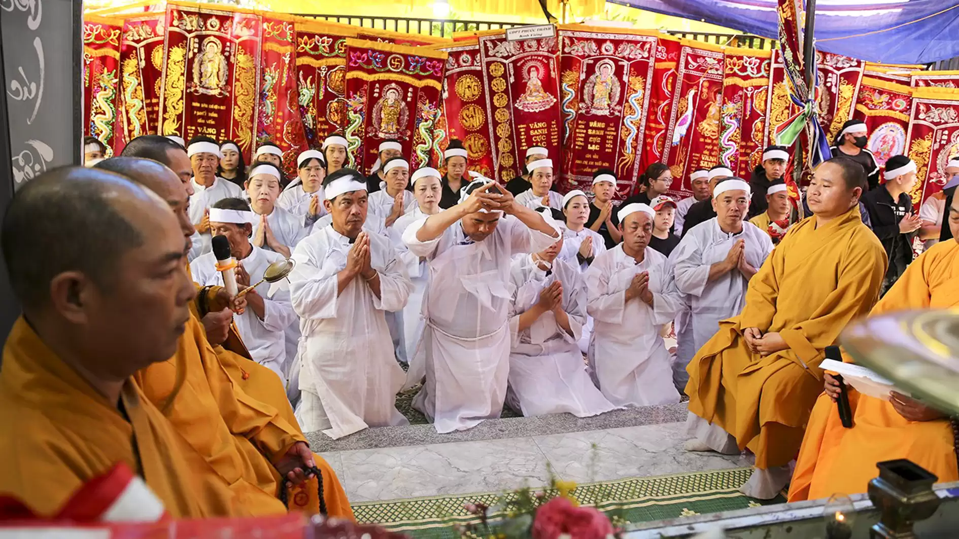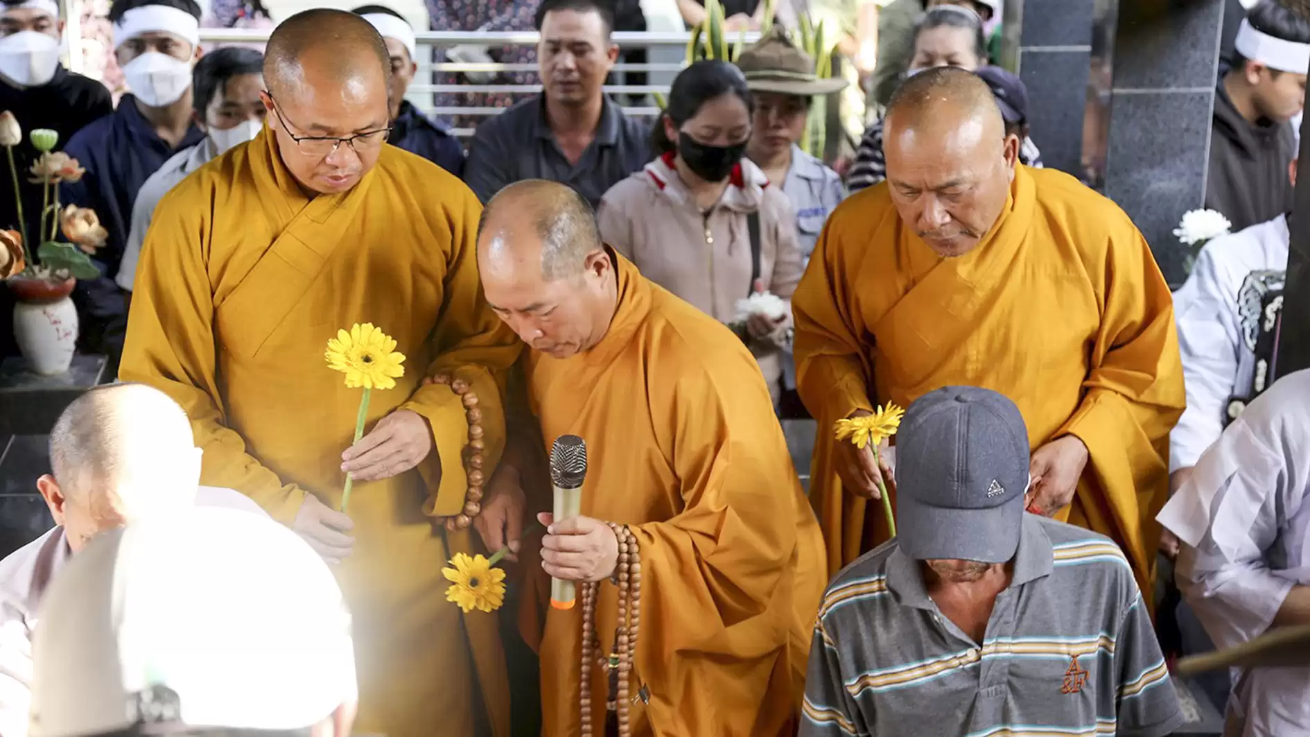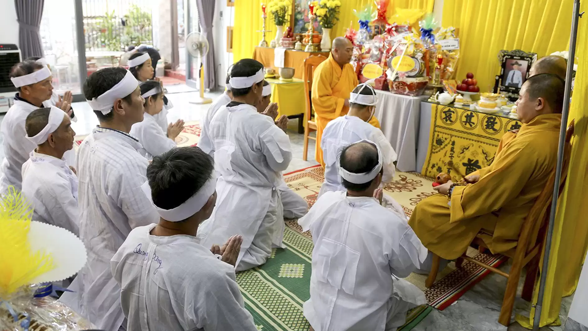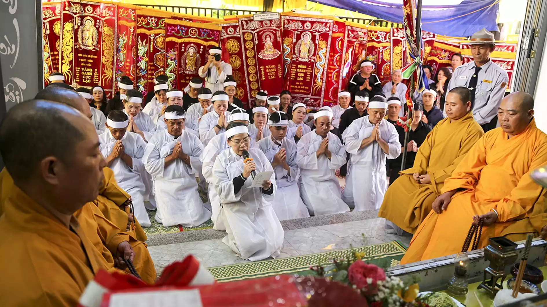Đúng 15h30, trong giờ phút thiêng liêng chư Tôn đức Giáo phẩm cung tiến giác Linh để niêm hương tưởng niệm. Đại đức Thích Nhuận Thông cùng Ban Nghi lễ thực hiện các pháp sự di quan cố huynh trưởng Thị Sự – Đặng Văn Viên, tang gia hiếu quyến cung thỉnh bát hương, linh vị, di ảnh của cố huynh trưởng cấp Dũng từ từ rời linh đường, cùng cung thỉnh linh cữu rời ngôi nhà nơi cố huynh trưởng gắn bó những năm tháng cùng gia đình. Lễ khiển điện, di quan diễn ra trong không khí trang nghiêm đầm ấm.