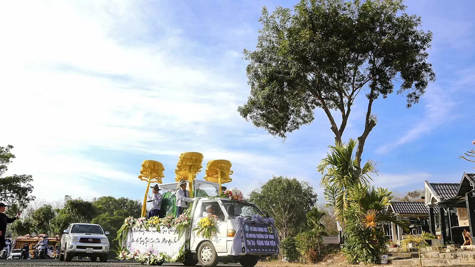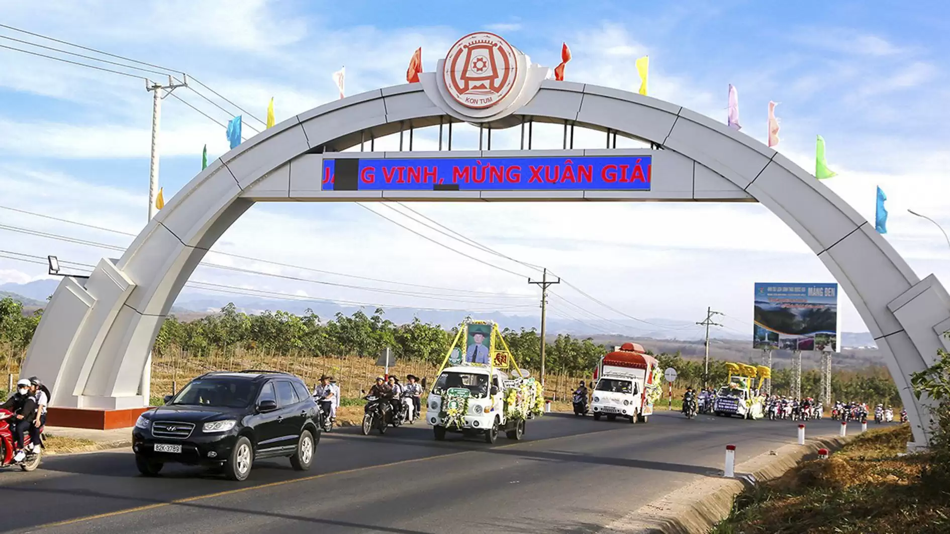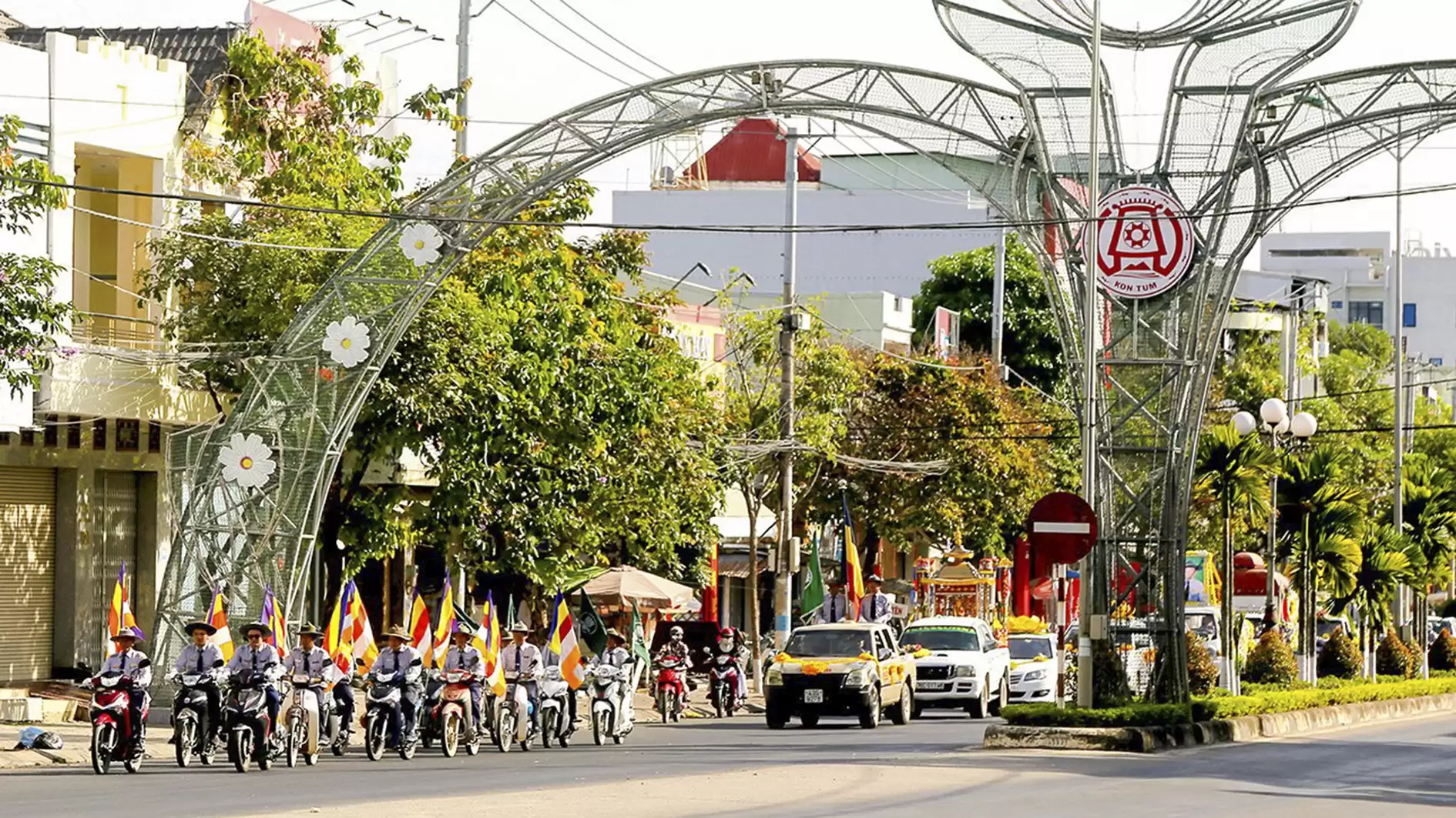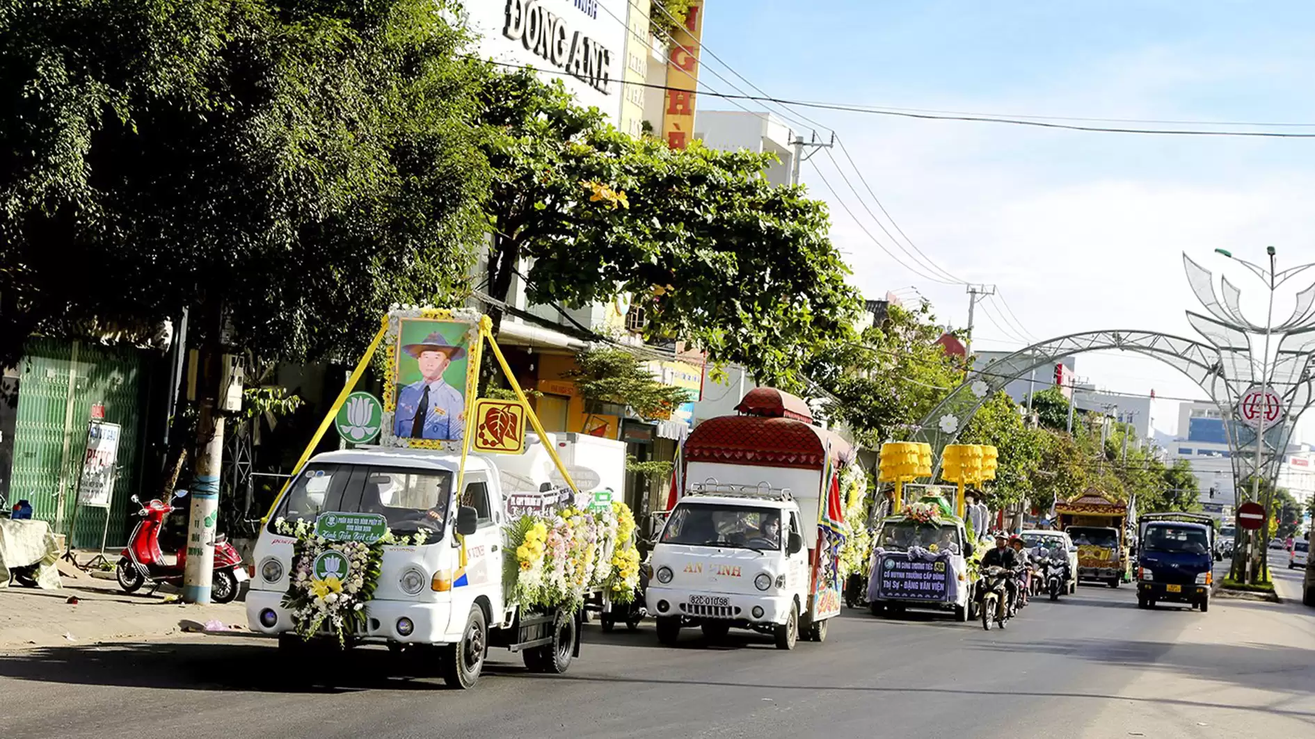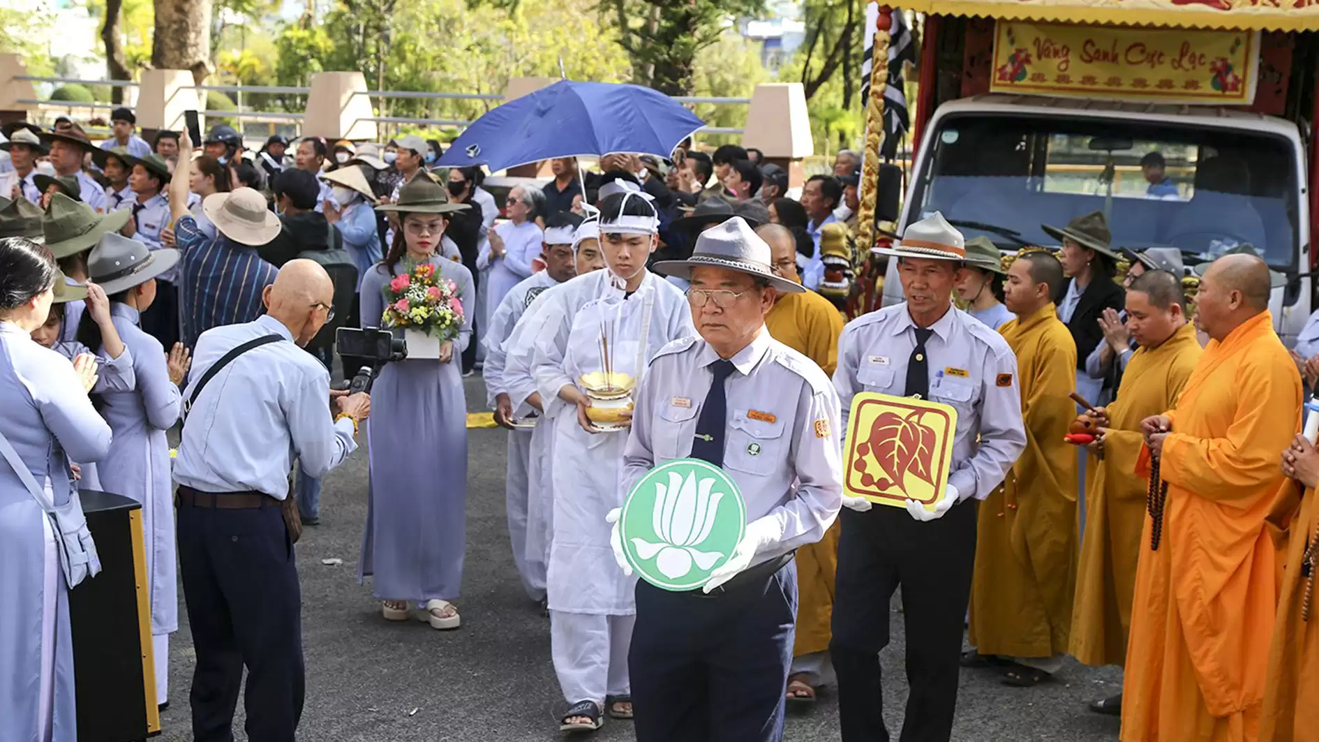 Rời khỏi Tổ đình Bác Ái đoàn xe máy dương cao cờ Phật giáo, cờ GĐPT và xe tiêu dẫn đoàn, tiếp đó là xe hương án, xe Phật đình và đoàn xe chư Tôn thiền đức hộ niệm, theo đó là xe chở Di ảnh cố huynh trưởng cấp Dũng trong sắc phục GĐPTVN. Sau khi đi qua các con đường thân quen của Thành phố Kon Tum, đoàn xe hướng về Nghĩa Trang Thành phố để đưa anh đến nơi an nghỉ cuối cùng.