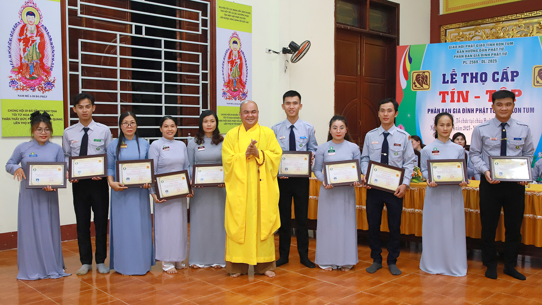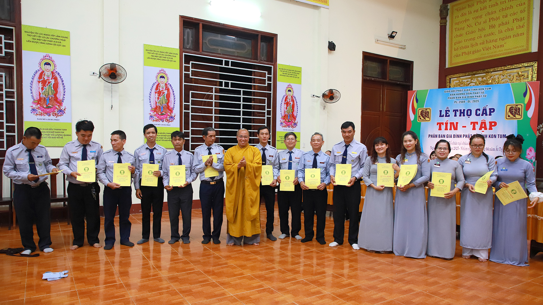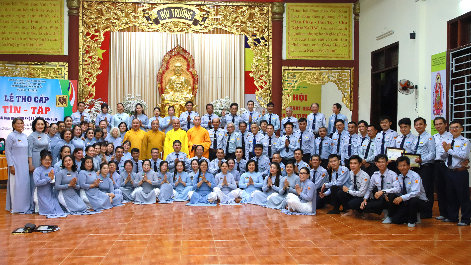 Trong không khí trang nghiêm và thấm đượm tinh thần Lam Đạo vào tối ngày 29/4/2025 (nhằm ngày 02/4/ Ất Tỵ) tại hội trường chùa Huệ Chiếu – VP. Ban Trị sự GHPGVN tỉnh, Phân ban GĐPT tỉnh Kon Tum long trọng tổ chức Lễ Thọ Cấp Tín cho 32 Huynh trưởng và thọ Cấp Tập cho 35 Huynh trưởng đủ tiêu chuẩn và đạo hạnh, theo quy định của Nội quy Gia đình Phật tử Việt Nam.