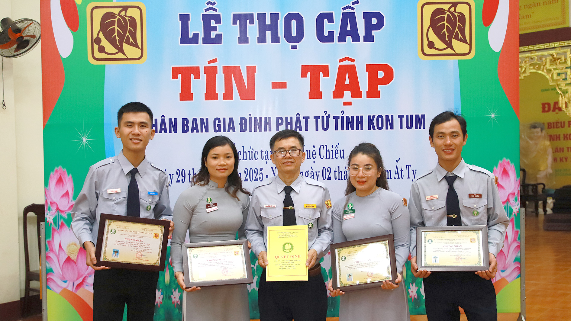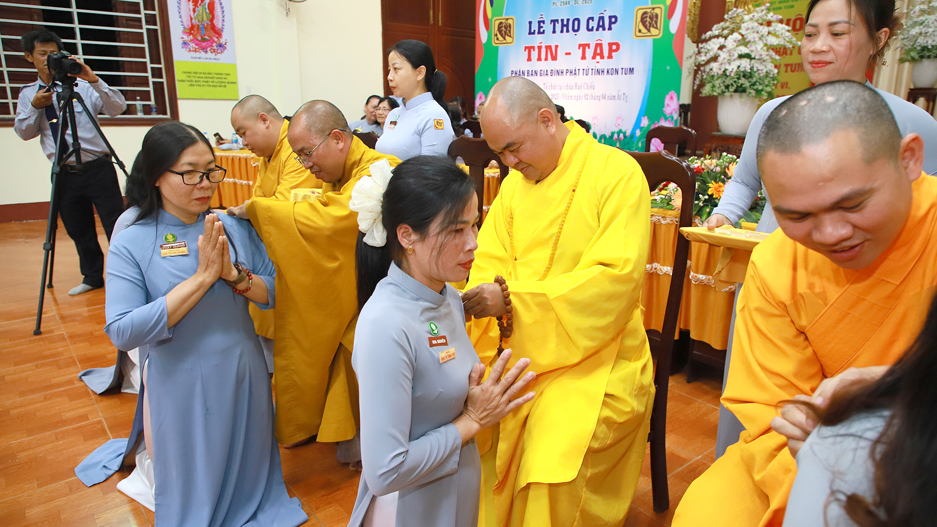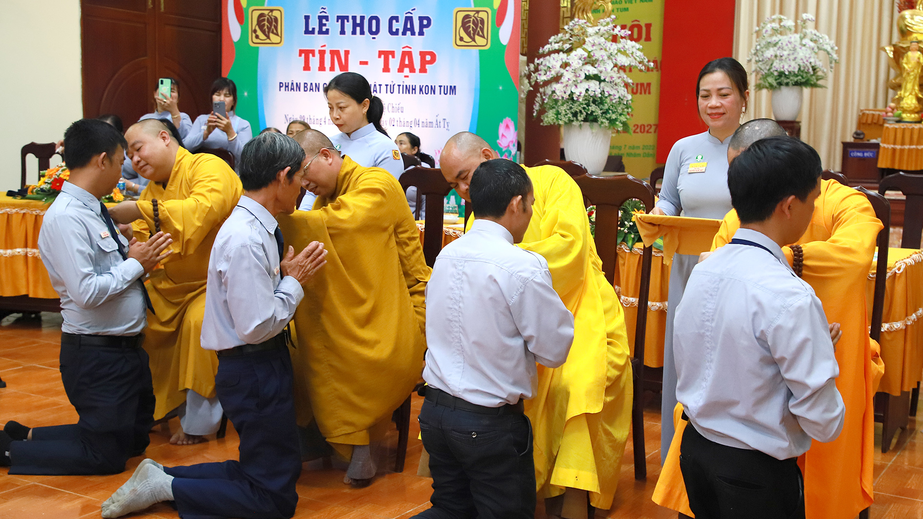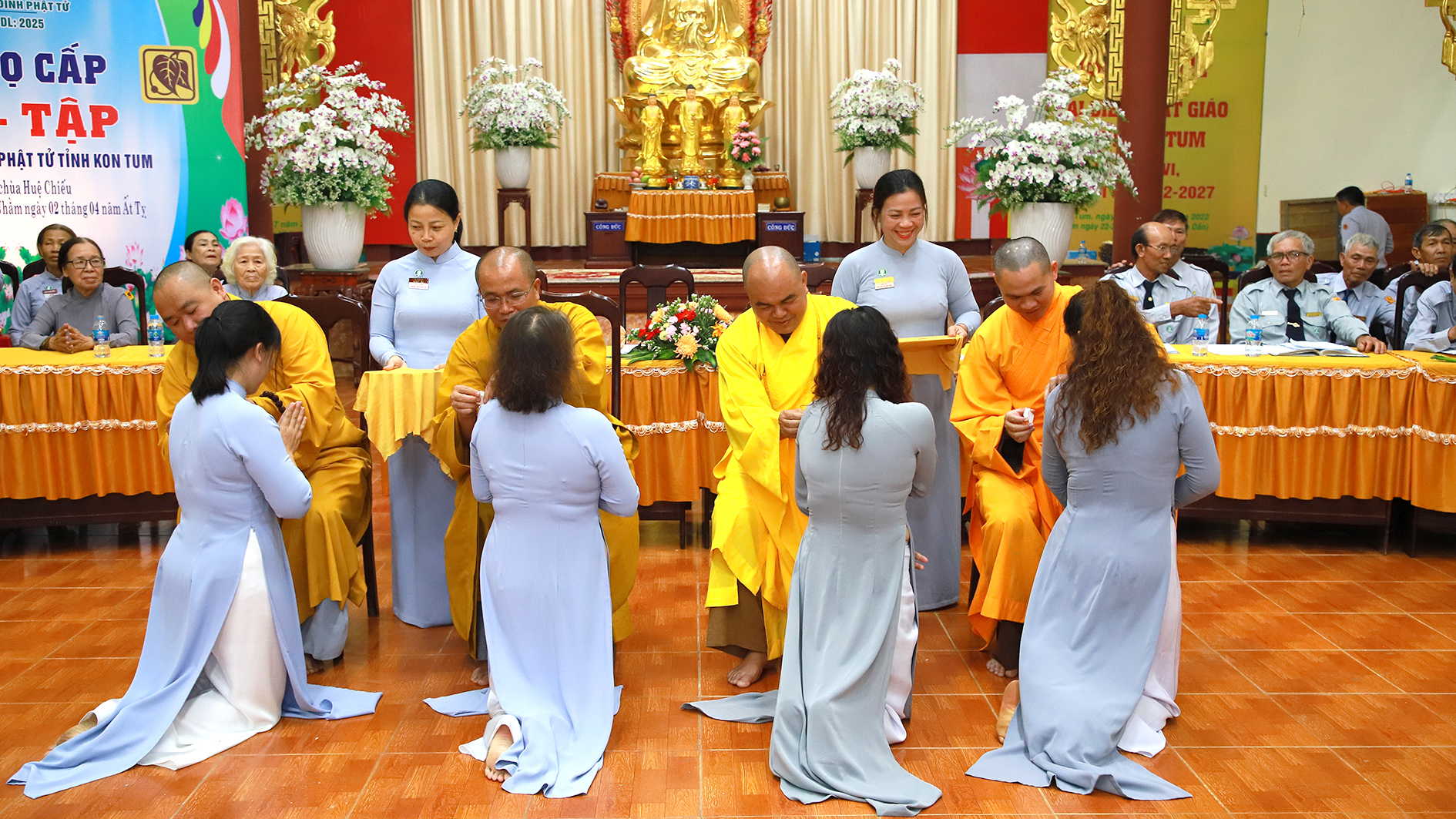 Trong không khí trang nghiêm và thấm đượm tinh thần Lam Đạo vào tối ngày 29/4/2025 (nhằm ngày 02/4/ Ất Tỵ) tại hội trường chùa Huệ Chiếu – VP. Ban Trị sự GHPGVN tỉnh, Phân ban GĐPT tỉnh Kon Tum long trọng tổ chức Lễ Thọ Cấp Tín cho 32 Huynh trưởng và thọ Cấp Tập cho 35 Huynh trưởng đủ tiêu chuẩn và đạo hạnh, theo quy định của Nội quy Gia đình Phật tử Việt Nam.