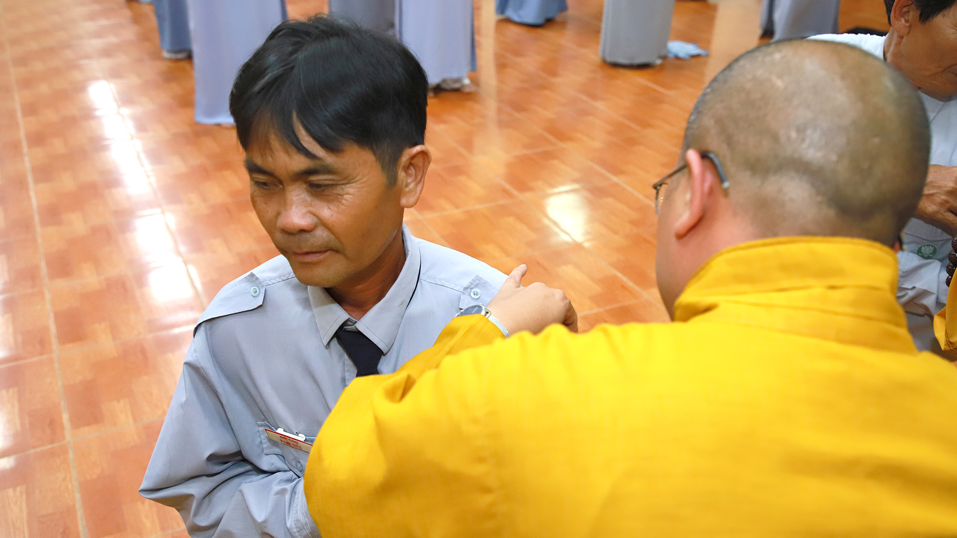 Sau đó, đối trước Tam Bảo HTr cấp Tấn Quảng Nhật – Trần Ngọc Tín, Chánh Thư ký Phân Ban GĐPT tỉnh hướng dẫn tân huynh trưởng thọ cấp dâng lời phát nguyện thọ cấp và HTr cấp Tấn Thị Sự – Đỗ Đăng Chức, thay mặt Phân Ban GĐPT tỉnh tuyên đọc “Bổn phận, trách nhiệm và quyền hạn của Huynh trưởng cấp Tín, cấp Tập của GĐPT Việt Nam.