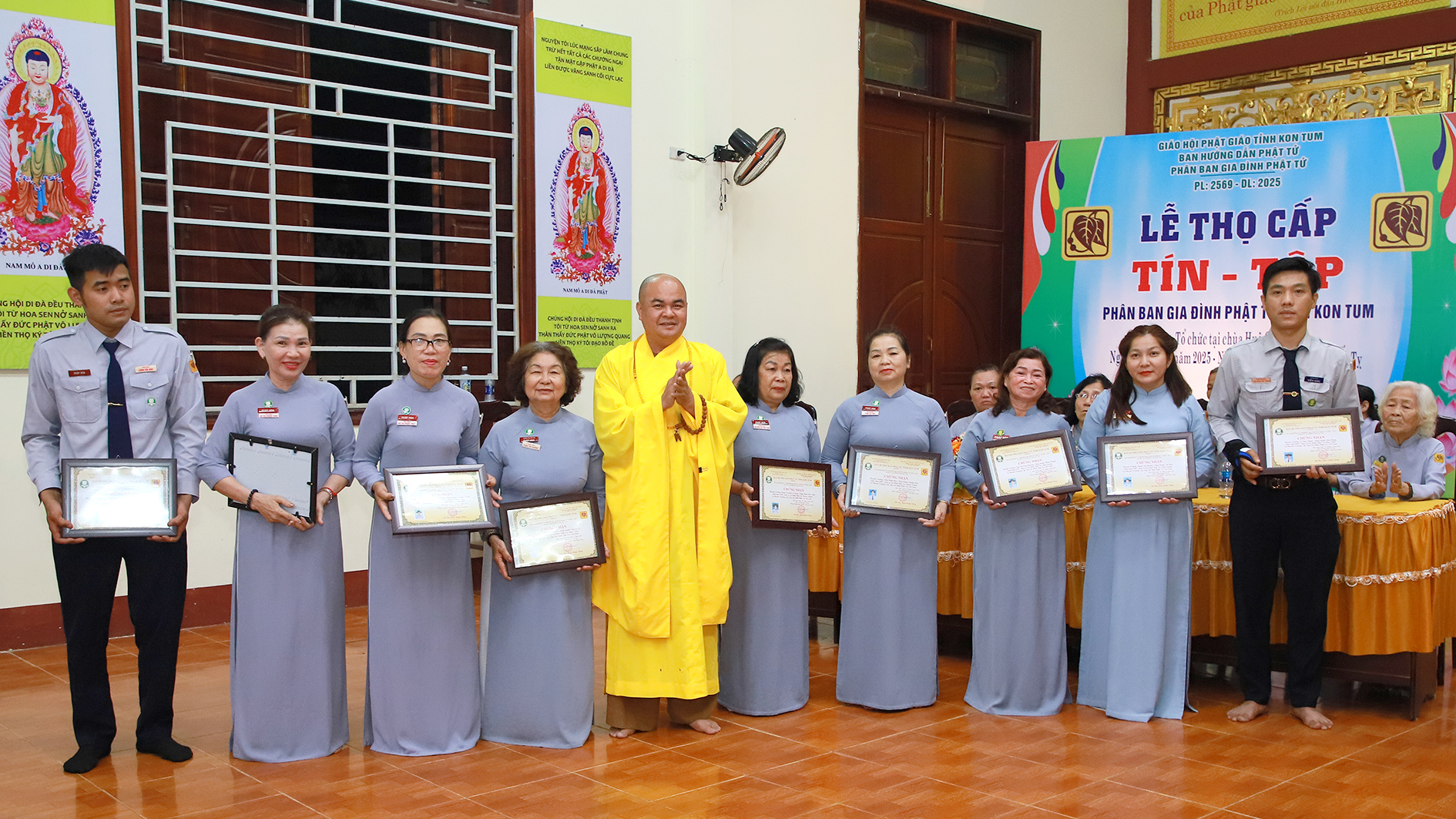 Về phía Phân Ban GĐPT tỉnh Kon Tum có: HTr cấp Dũng Quảng Quý – Nguyễn Thị Như Thanh, cố vấn Phân Ban GĐPT; HTr cấp Tấn Quảng Hương – Nguyễn Thị Túy Nga, cố vấn GĐPT; HTr cấp Tấn Thị Hoàng – Nguyễn Văn Tiên, Ủy viên Phân Ban GĐPT TƯ, Phó Ban HDPT tỉnh, Trưởng Phân Ban GĐPT; HTr cấp Tấn Đồng Vinh – Đàm Văn Ca, Phó Thường Trực Phân Ban GĐPT cùng sự hiện diện tham dự của quý Huynh trưởng đại diện Phân ban GĐPT tỉnh, các đơn vị cơ sở cùng 67 Huynh trưởng thọ cấp.