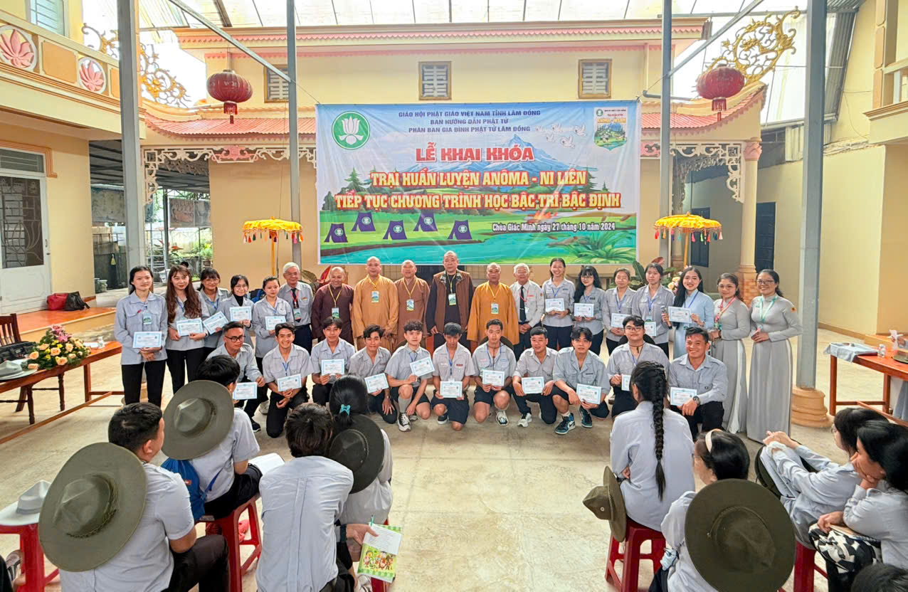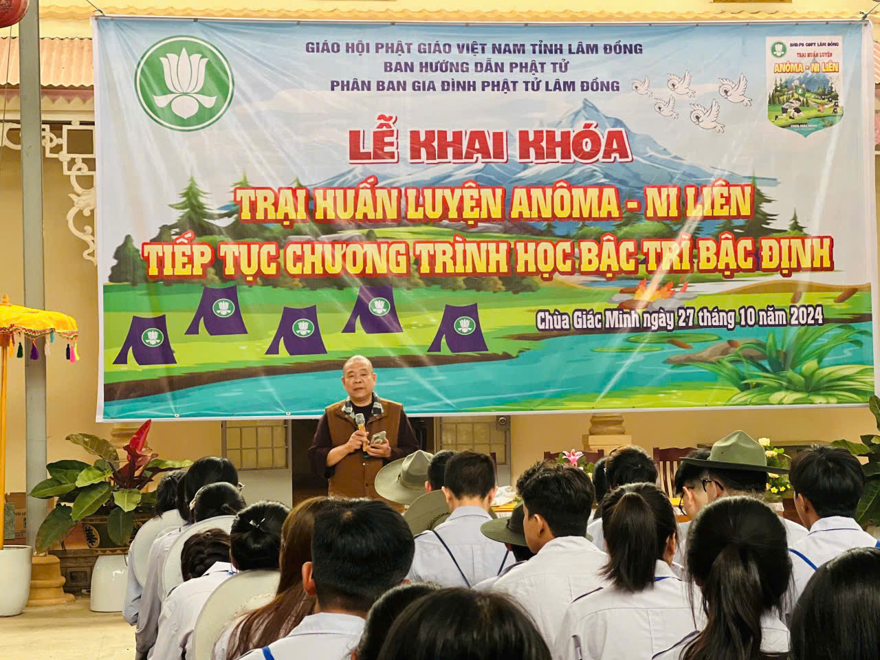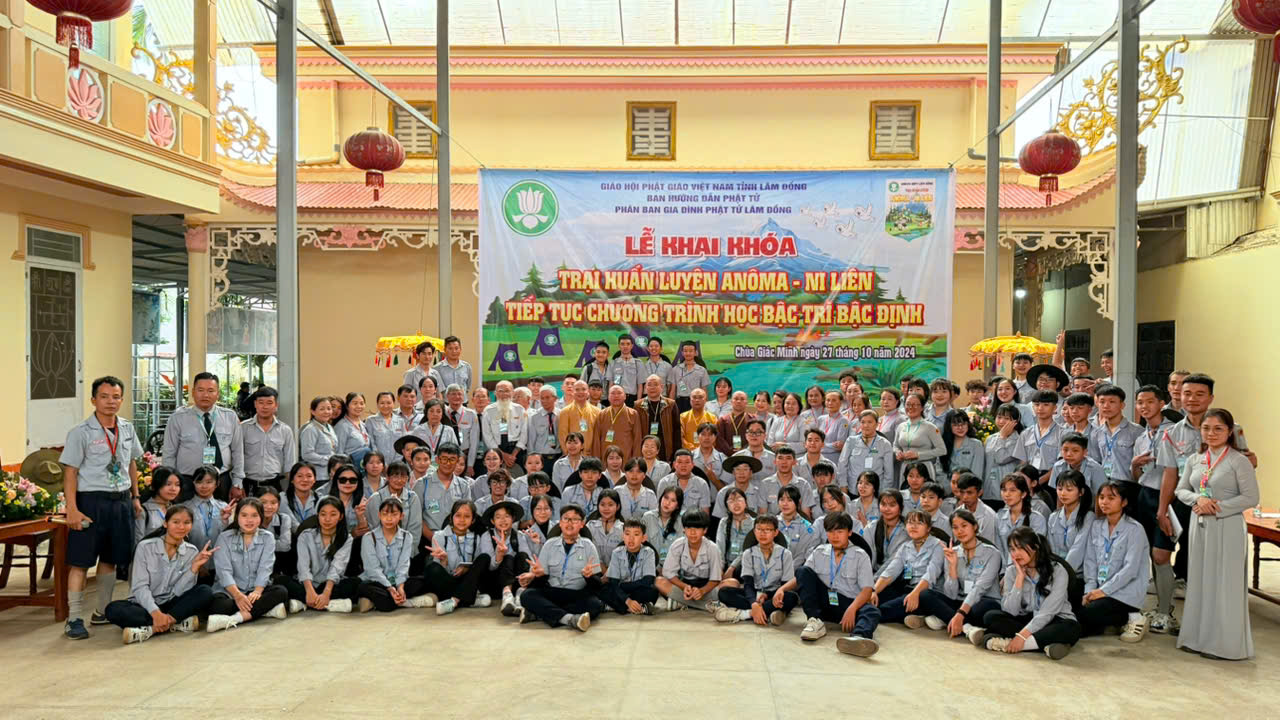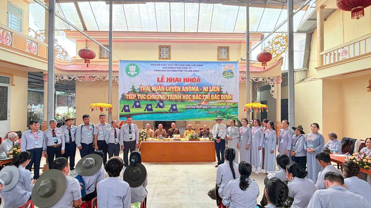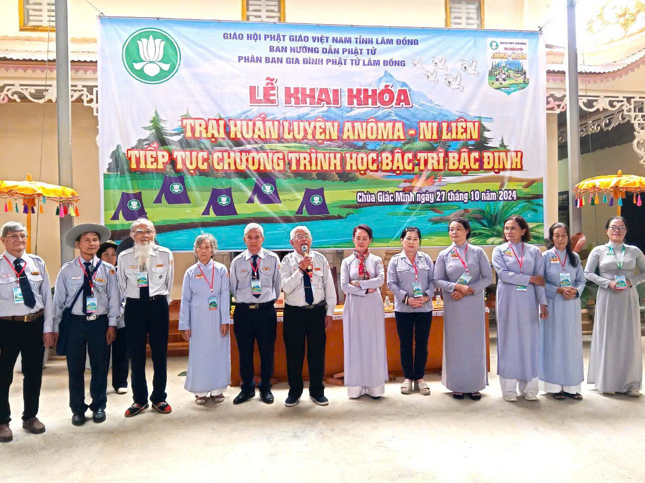 Sáng ngày 27/10/2024, tại chùa Giác Minh – huyện Đức Trọng, tỉnh Lâm Đồng, Phân ban GĐPT Lâm Đồng đã long trọng tổ chức Lễ khai khóa Trại Huấn Luyện Anôma – Ni Liên và tiếp tục triển khai chương trình học bậc Trì, bậc Định.