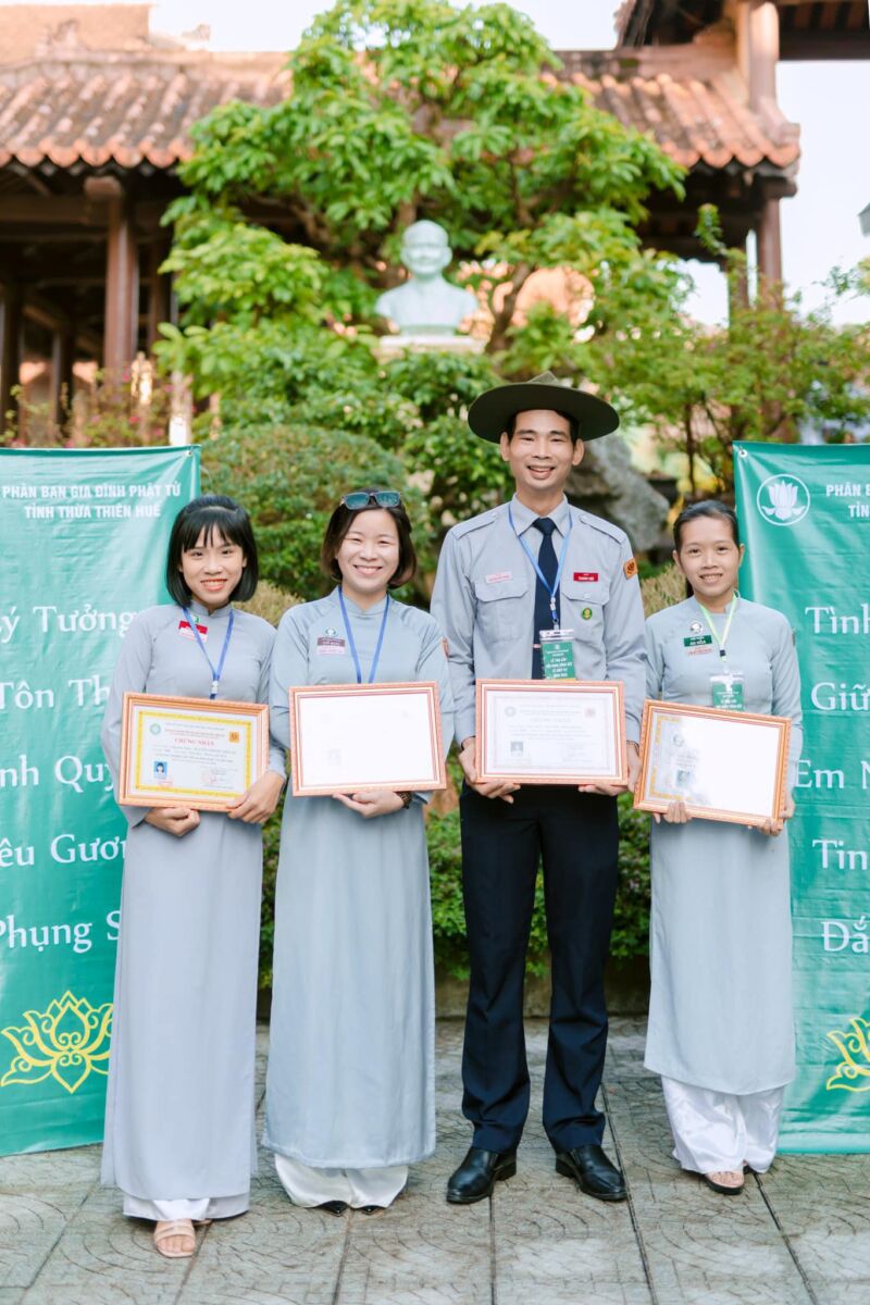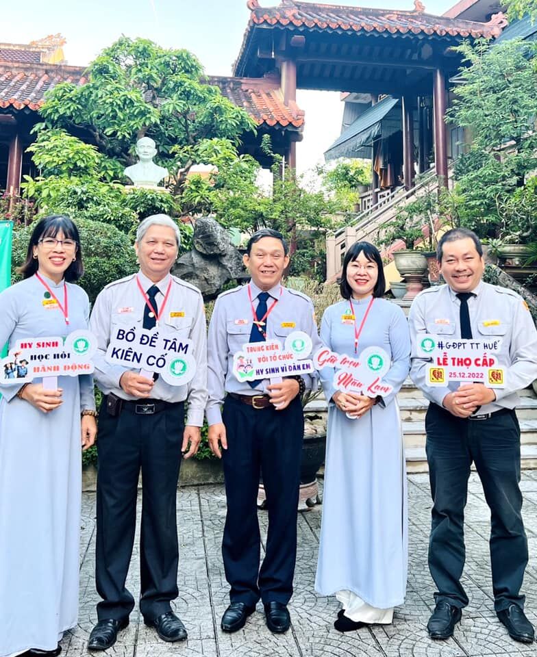 Khép lại buổi lễ, trong buổi sáng sương mai trên đất cố đô, lời huấn từ của Thượng Tọa Thích Trí Quang – Đại diện Tổng Trị Sự Tổng Hội Phật Giáo Việt Nam, trong Lễ trao cấp hiệu đầu tiên cho Huynh trưởng GĐPT của Ban Hướng Dẫn GĐPT thuộc Tổng Hội vào năm 1956 vẫn như còn vang vọng đâu đây. “…Phải ý thức việc của Hội, trong đó có việc Gia Đình Phật Tử, tự nó đã có cái định nghĩa hy sinh. Anh chị em hãy can đảm tiếp nhận mọi sự khó khăn. Hãy loại bỏ tâm lý thích dễ dãi, thích nâng đỡ. Hãy điêu luyện sự kiên nhẫn và chịu đựng để khắc phục và tiến bộ…” Hy vọng rằng 245 anh chị Huynh trưởng thọ cấp hôm nay sẽ là 245 hạt nhân nòng cốt của tổ chức Áo lam Sen trắng, có thân khỏe – tâm trong – trí sáng, có đủ lòng tin và sự kiên định để tiếp tục con đường đem Đạo vào Đời mà Giáo Hội đã luôn tin yêu và gửi gắm đến tổ chức GĐPT trong hơn 70 năm qua./.