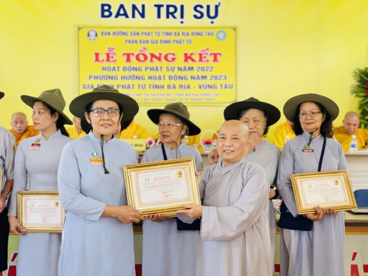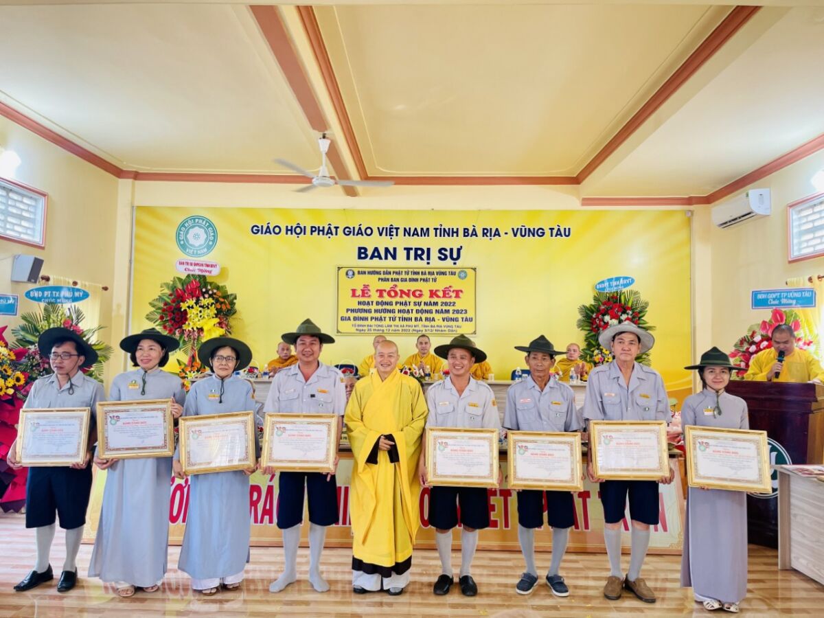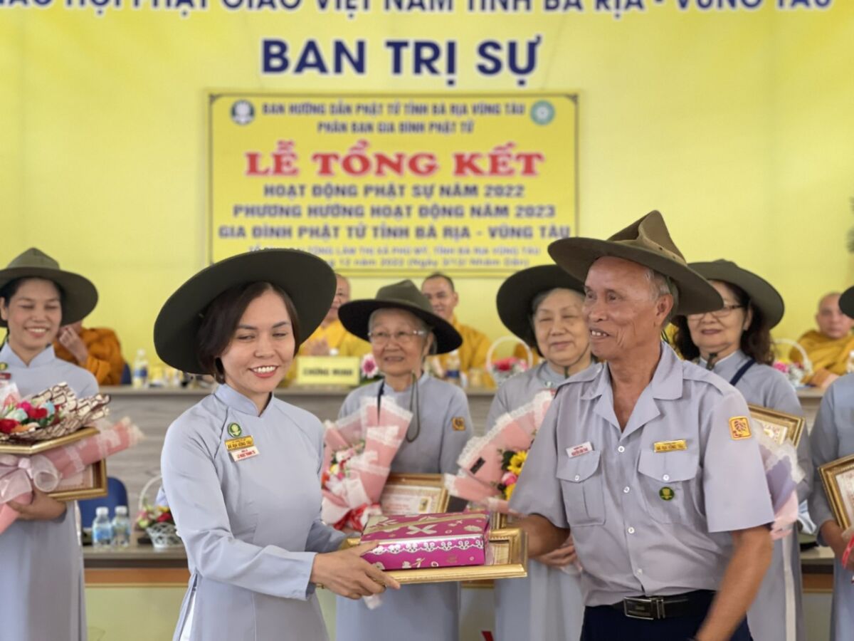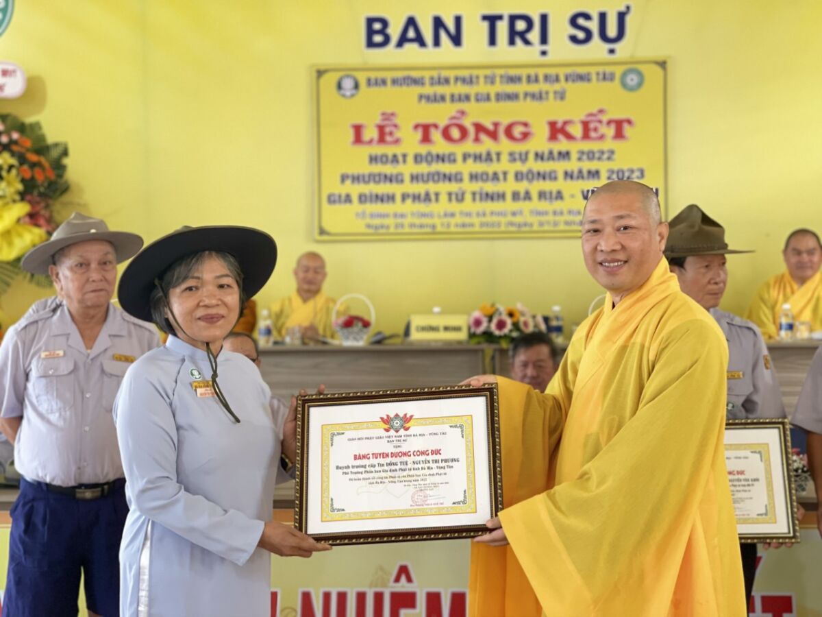 Trong lễ tổng kết công tác Phật sự năm 2022 của Gia đình Phật tử tỉnh, Ban Trị sự GHPG Tỉnh, Ban Hướng dẫn Phật tử Tỉnh đã trao tặng Bằng Tuyên Dương công đức cho tập thể và cá nhân các huynh trưởng trong Tỉnh đã hoàn thành xuất sắc nhiệm vụ được giao. Cũng trong dịp này Phân Ban GĐPT Tỉnh đã trao giấy chứng nhận và tặng hoa cho các huynh trưởng tham dự trại Vạn Hạnh V-2021 do Trung ương tổ chức vừa qua.