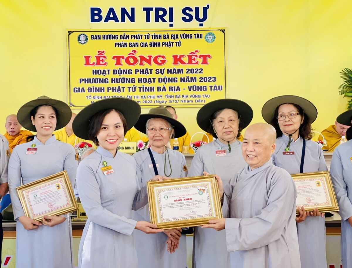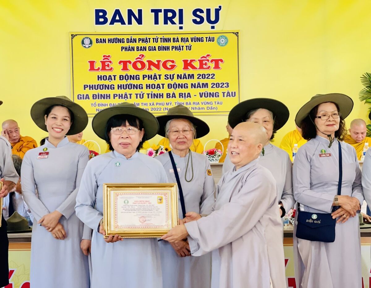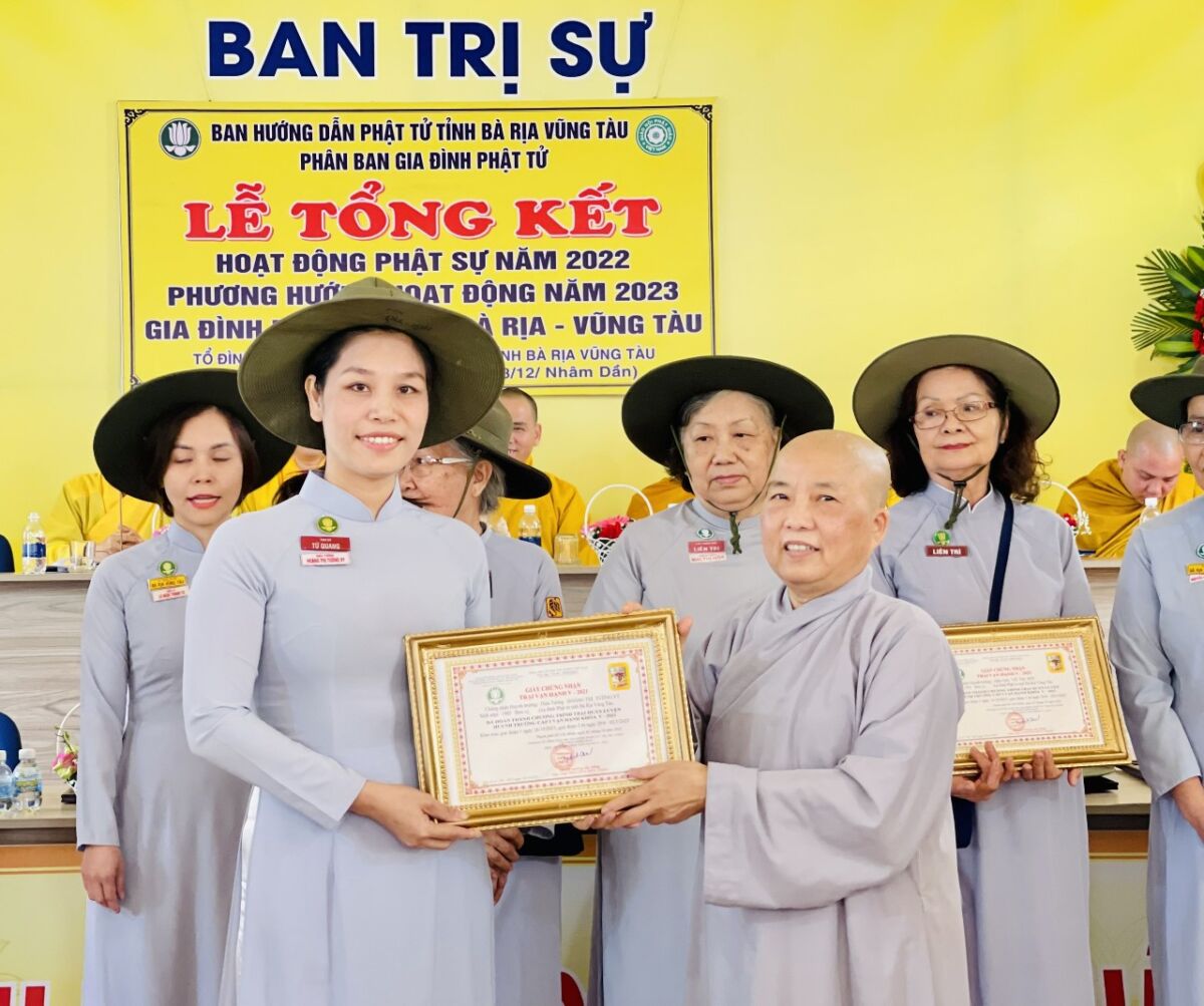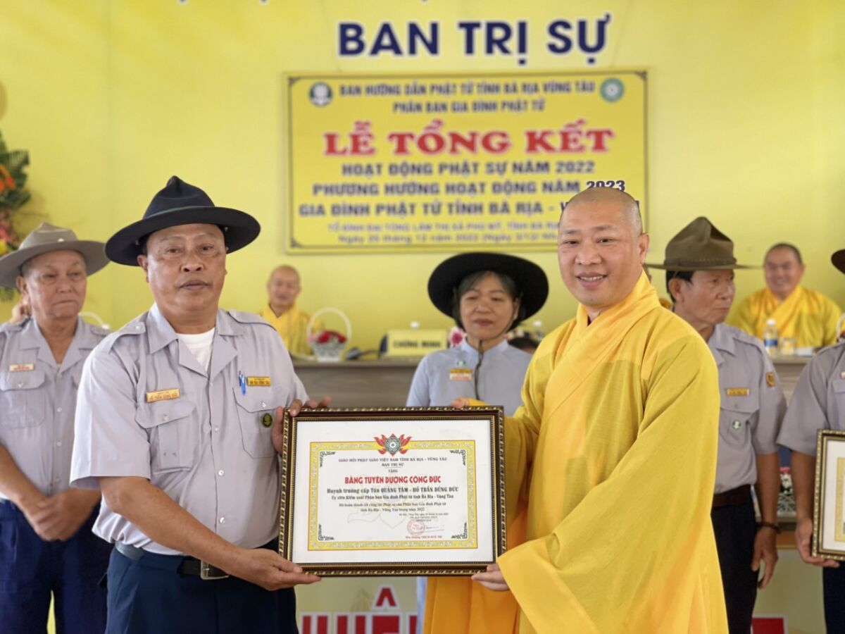 Trong lễ tổng kết công tác Phật sự năm 2022 của Gia đình Phật tử tỉnh, Ban Trị sự GHPG Tỉnh, Ban Hướng dẫn Phật tử Tỉnh đã trao tặng Bằng Tuyên Dương công đức cho tập thể và cá nhân các huynh trưởng trong Tỉnh đã hoàn thành xuất sắc nhiệm vụ được giao. Cũng trong dịp này Phân Ban GĐPT Tỉnh đã trao giấy chứng nhận và tặng hoa cho các huynh trưởng tham dự trại Vạn Hạnh V-2021 do Trung ương tổ chức vừa qua.