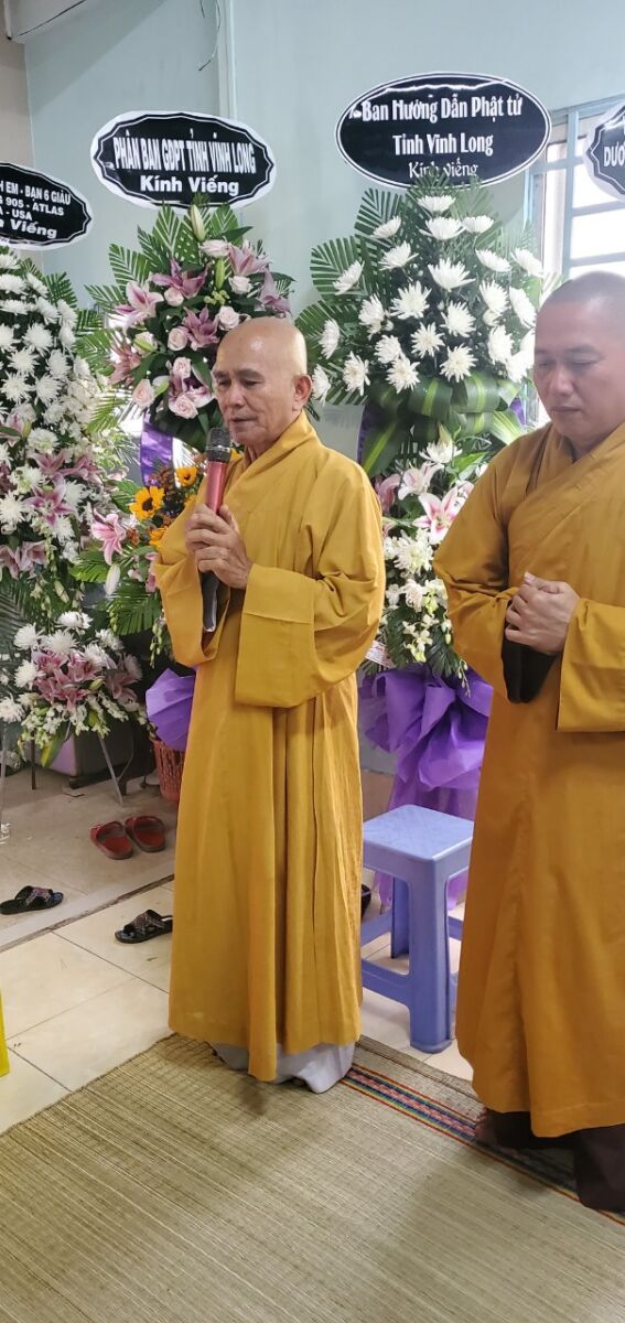 Quang lâm chứng minh buổi lễ có chư tôn Thượng tọa Thích Trí Hải, Trưởng Ban Hướng dẫn Phật tử; Thượng tọa Thích Tịnh Hòa Phó Trưởng ban Hướng dẫn Phật tử kiêm Trưởng ban Hướng dẫn Phân ban GĐPT tỉnh Vĩnh Long cùng Chư Tôn đức Tăng Ni trong Tỉnh.