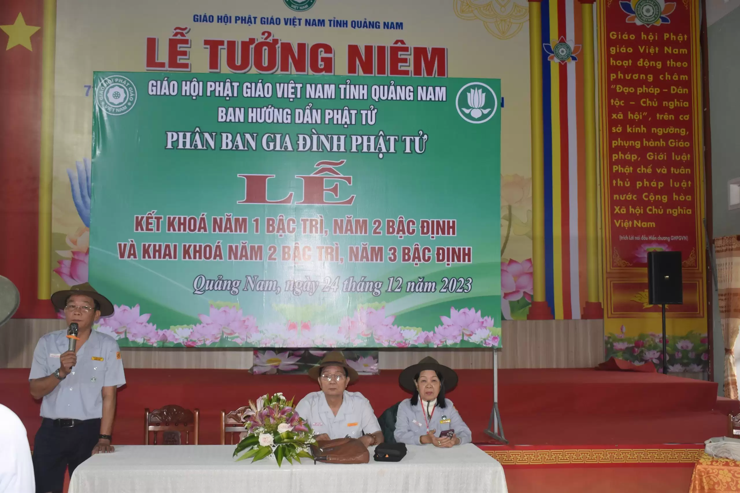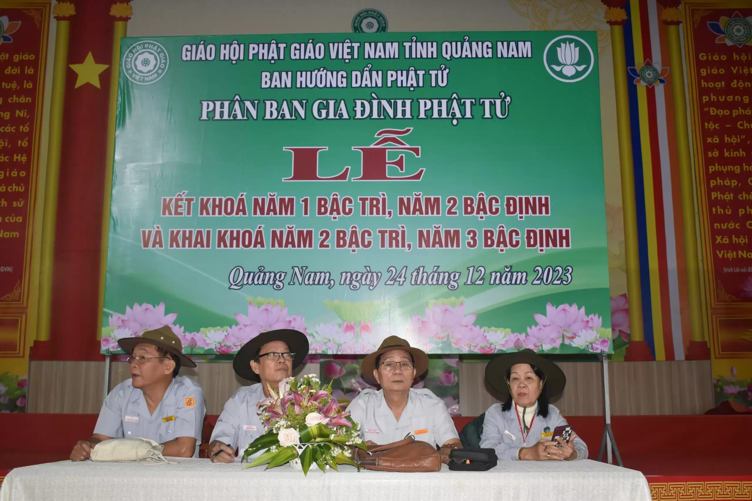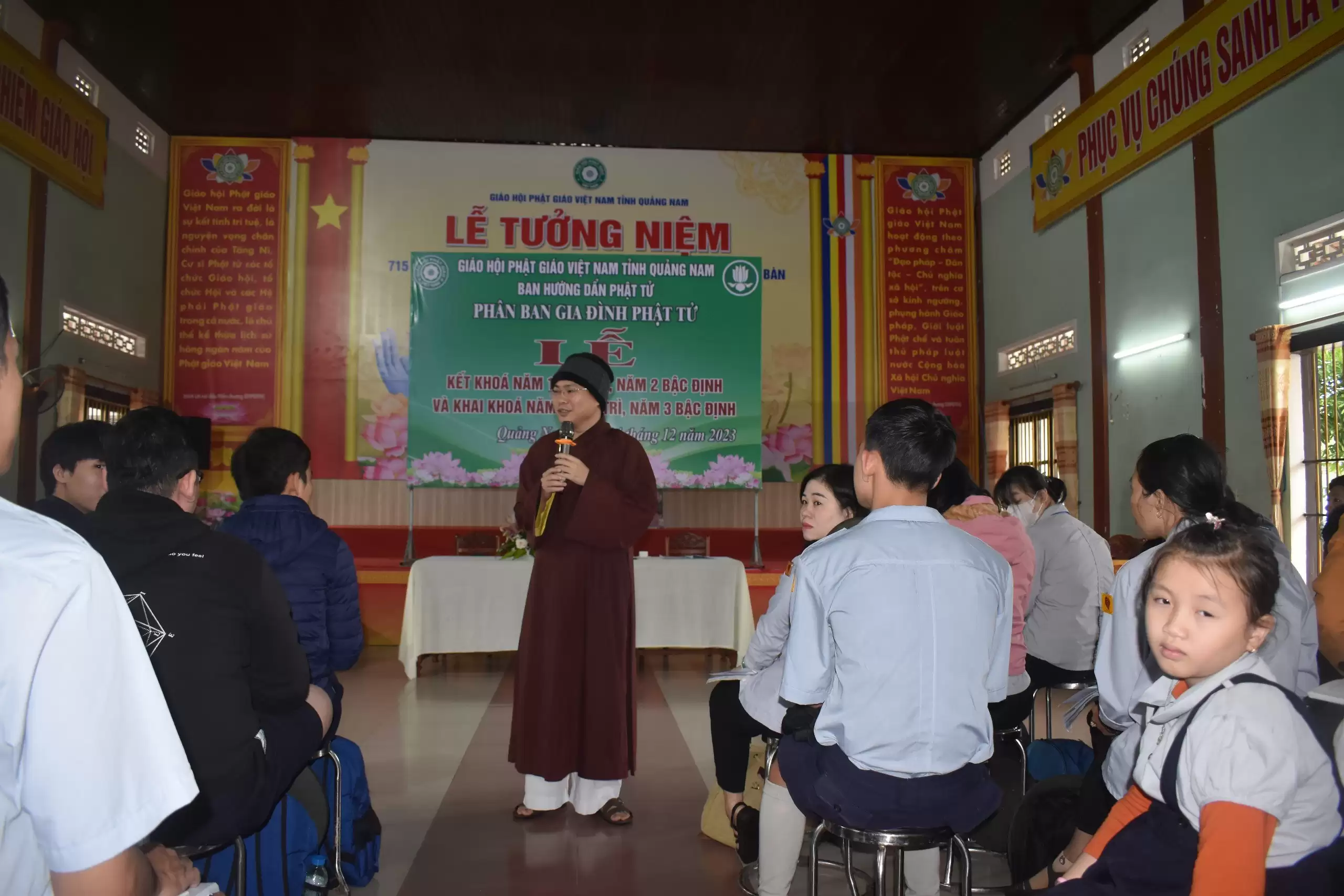 Sáng ngày 24/12/2023 (nhằm ngày 12/11 năm Quý Mão), tại chùa Đạo Nguyên, thành phố Tam Kỳ, Phân ban GĐPT Quảng Nam tổ chức thi kết khóa và triển khai các bậc học huynh trưởng cho học viên các bậc Trì, Định và Lực