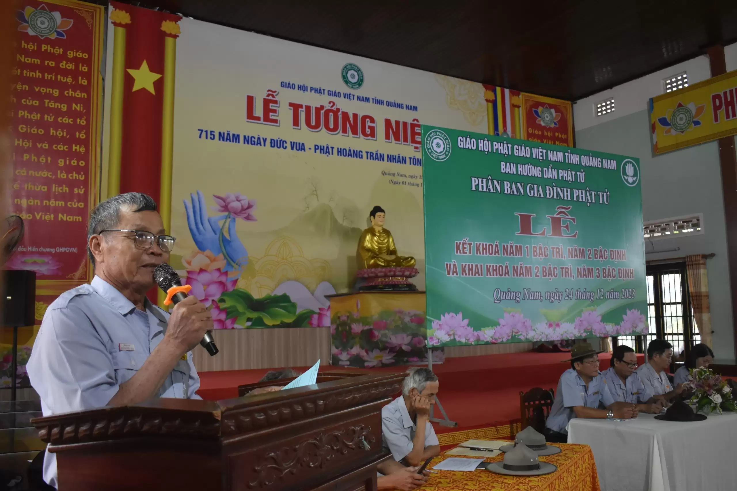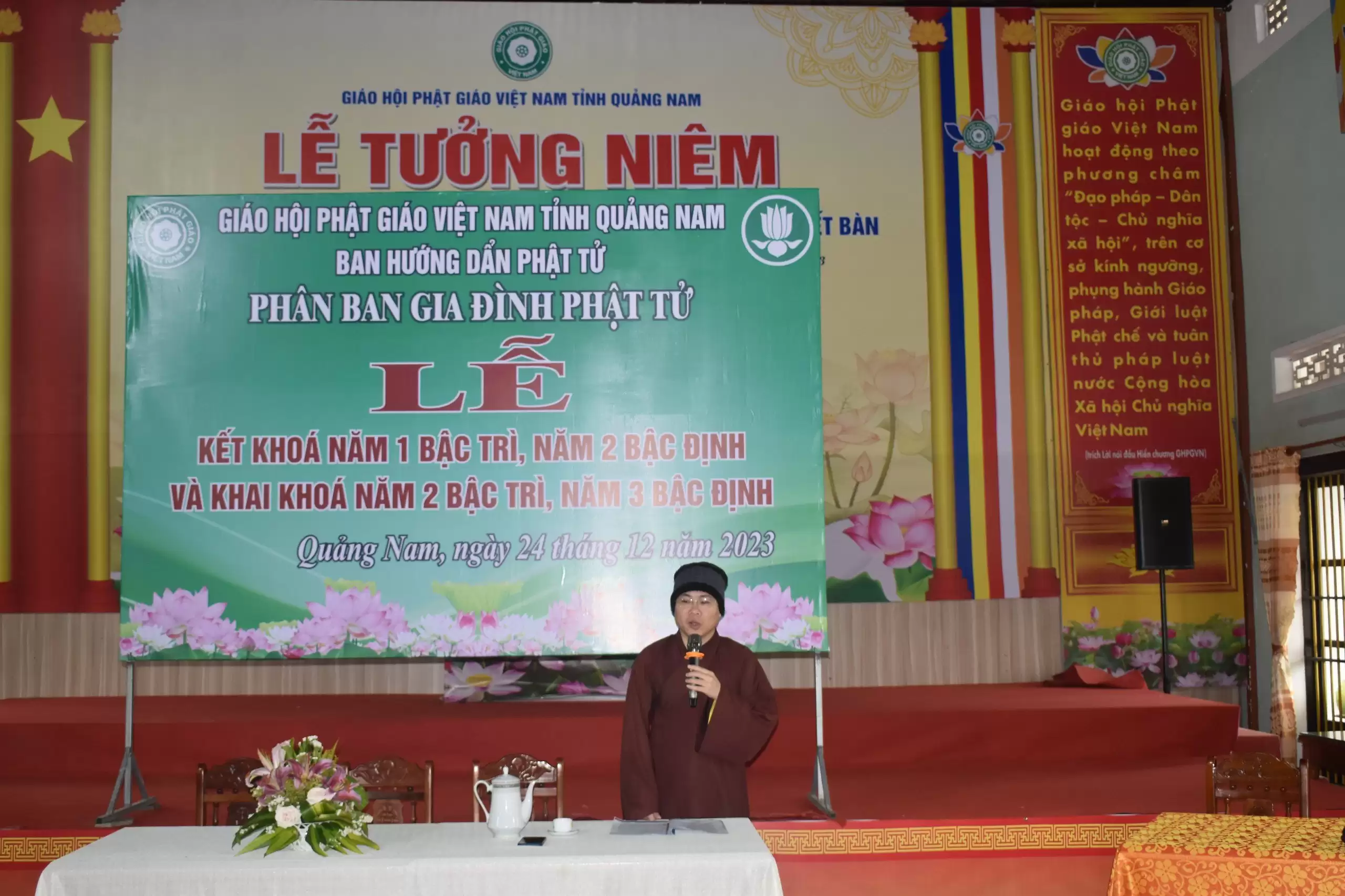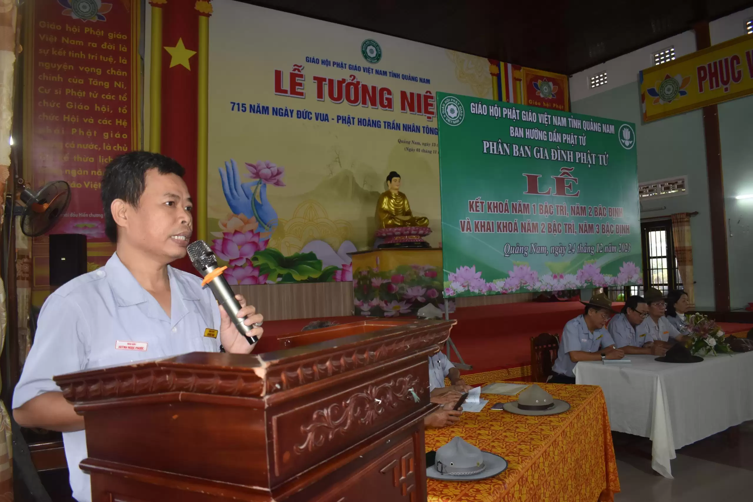 Sáng ngày 24/12/2023 (nhằm ngày 12/11 năm Quý Mão), tại chùa Đạo Nguyên, thành phố Tam Kỳ, Phân ban GĐPT Quảng Nam tổ chức thi kết khóa và triển khai các bậc học huynh trưởng cho học viên các bậc Trì, Định và Lực