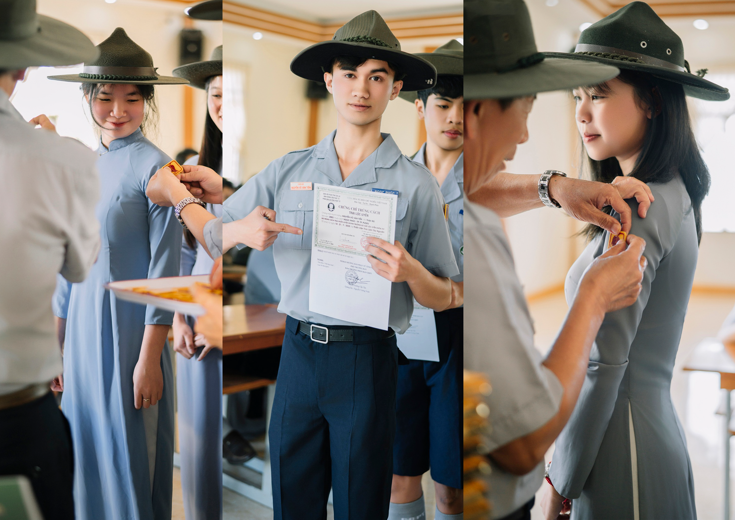 Cuối buổi lễ, HTr Cấp Tấn Quảng Dự – Nguyễn Tường Vinh ban huấn từ: Nhắc lại lý tưởng Bi – Trí – Dũng, khuyến tấn tinh thần phụng sự không mệt mỏi và nhắn gửi niềm kỳ vọng vào đội ngũ kế thừa. Lộc Uyển – bước đầu làm người hướng dẫn, Huyền Trang – bước tiến trưởng thành gánh vác đơn vị. Những cấp hiệu được cài hôm nay không chỉ là sự ghi nhận, mà còn là lời nhắc nhở và là trách nhiệm tổ chức gửi trao.