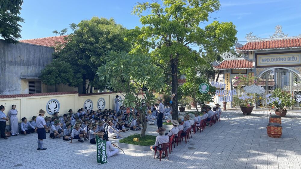 Thực hiện chương trình sinh hoạt, thăm viếng trong năm 2023 của Phân ban Gia đình Phật tử Trung ương; vừa qua kết hợp lễ thọ cấp Tấn cho huynh trưởng GĐPT, Phân ban GĐPT Trung ương sau chuyến thăm và làm việc với Phân ban GĐPT Thừa Thiên-Huế, Đoàn Ban Hướng dẫn Phân ban GĐPT Trung ương do quý huynh trưởng cấp Dũng Tâm Giới Phan Ngọc Thảo – Phó Trưởng ban Hướng dẫn Phật tử Trung ương, Trưởng Phân Ban GĐPT Trung ương; Huynh trưởng cấp Dũng Tâm Duệ Nguyễn Đức Châu – Cố vấn chuyên môn Phân Ban GĐPT Trung ương; Huynh trưởng cấp Tấn Tâm Chánh Lê Quang Cự – Trưởng Phân ban GĐPT Thừa Thiên Huế; Huynh trưởng cấp Tấn Tâm Quỳ Trần Thúc Phúc – Trưởng Phân ban GĐPT thành phố Huế; cùng quý Huynh trưởng trong Thường trực BHD Phân Ban GĐPT Trung ương, quý Huynh trưởng BHD Phân ban GĐPT Thừa Thiên Huế và Phân Ban GĐPT thành phố Huế đã đến thăm 2 đơn vị tiêu biểu của Thừa Thiên Huế là Dương Biều và Thiên Hương.