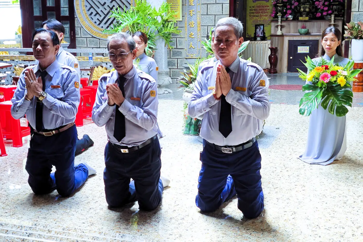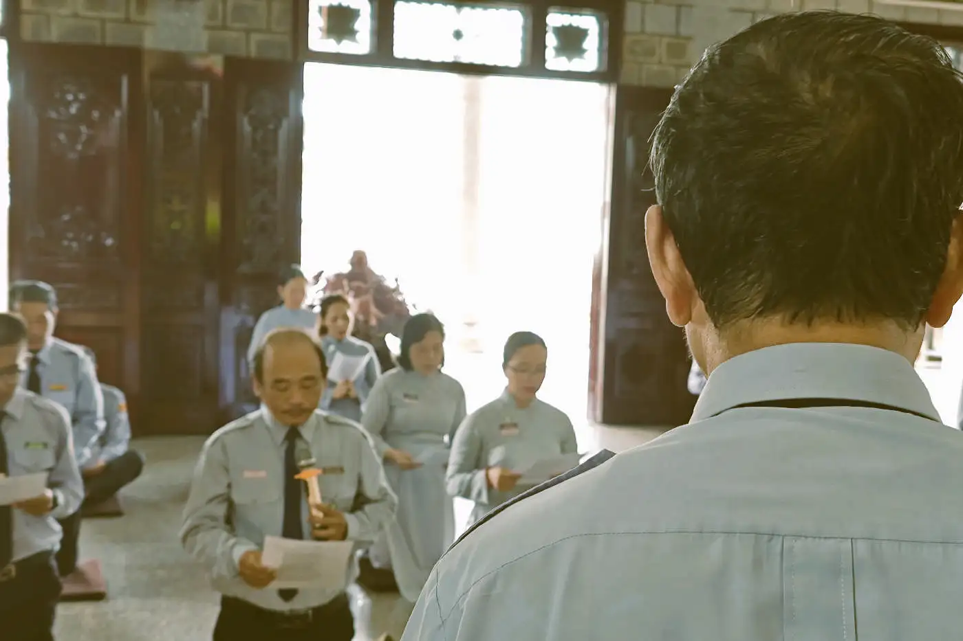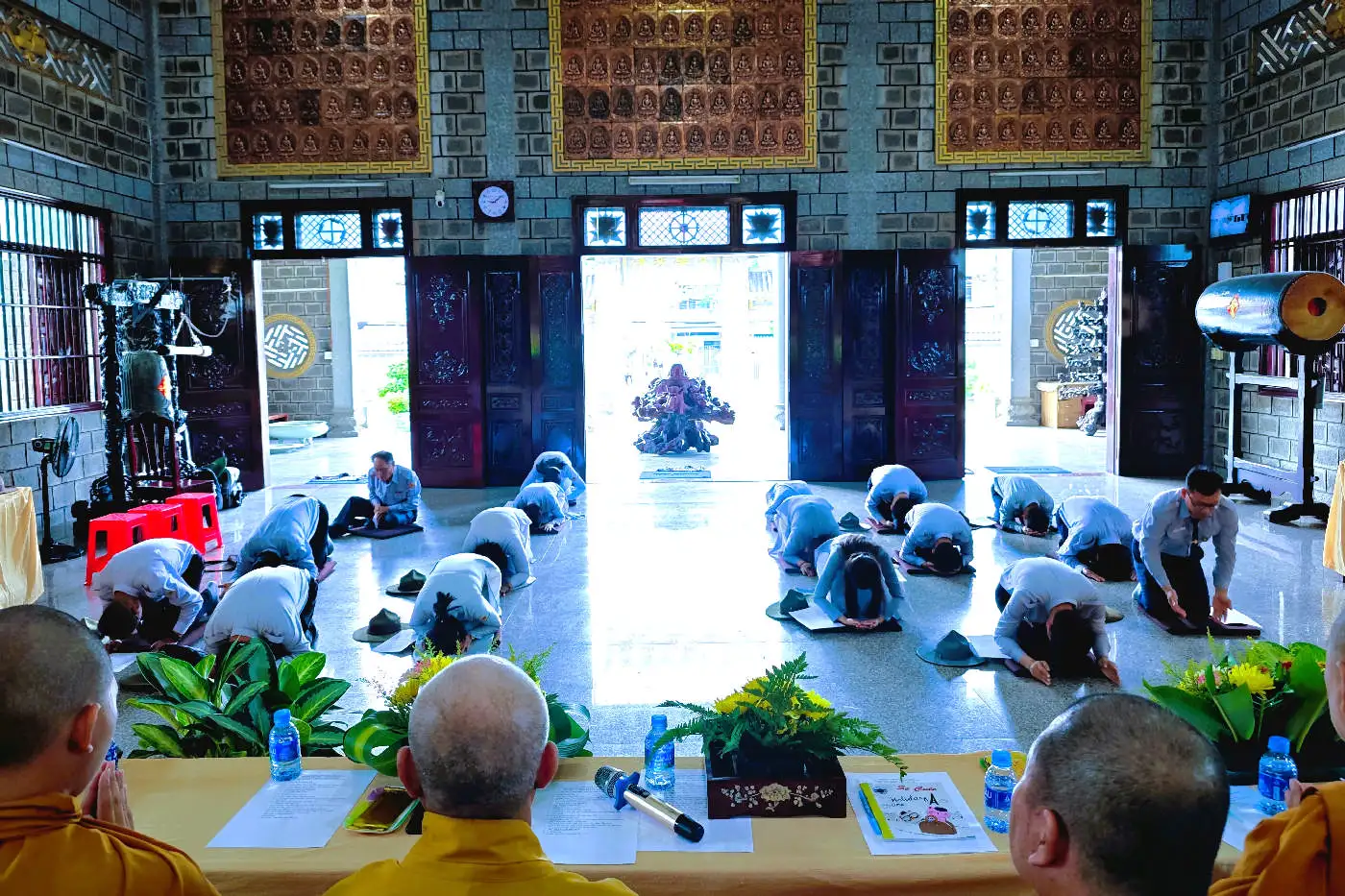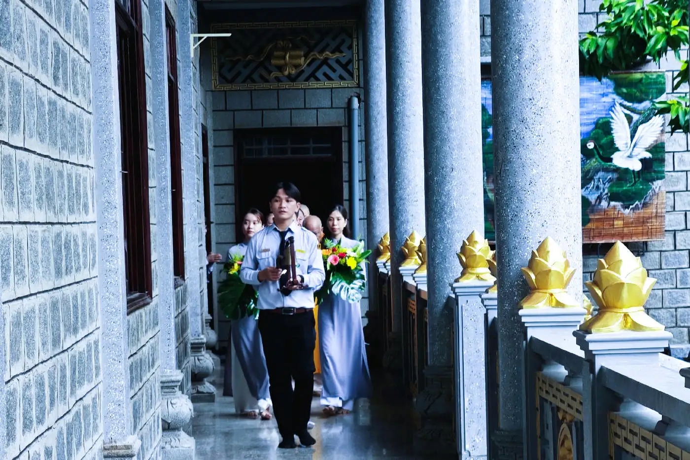 Buổi lễ bắt đầu với phần chú nguyện và tụng Thủ Lăng Nghiêm do Chư Tôn Đức chủ lễ. Trong khói trầm lan tỏa, bài Tựa chú Lăng Nghiêm vang lên như lời thệ nguyện “Ngũ-trược ác-thế thệ tiên nhập” của các anh chị tân thăng.