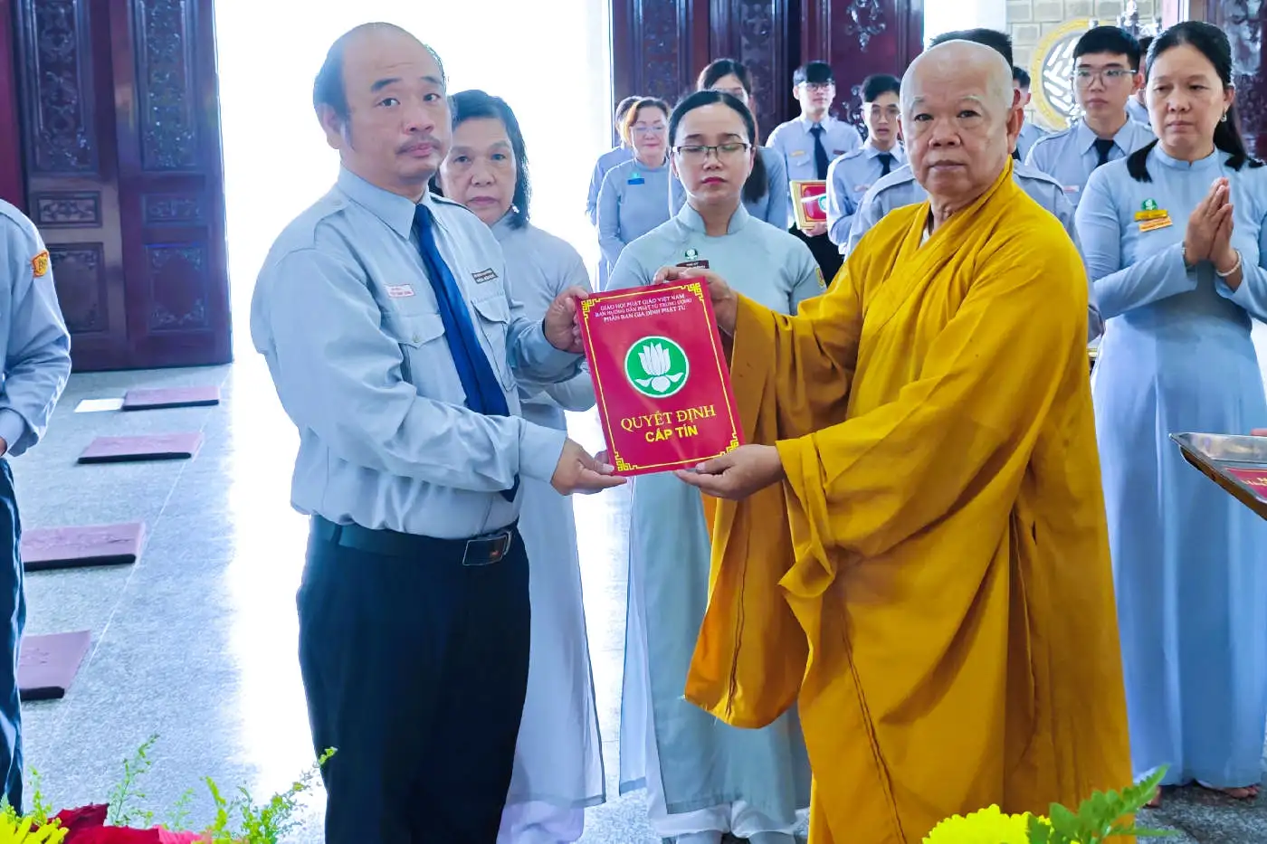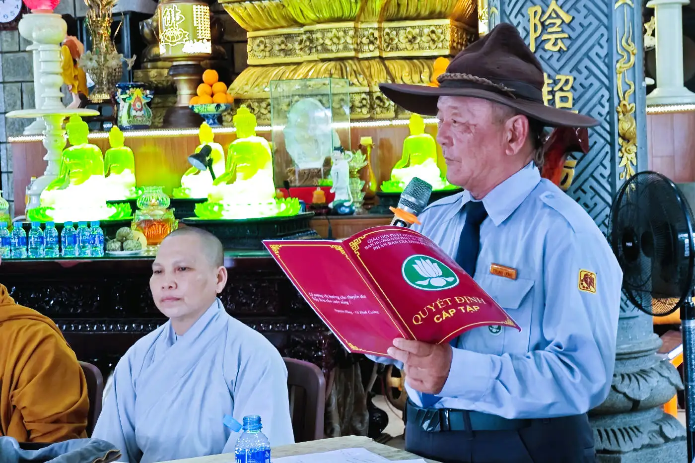 Thay mặt Phân Ban Gia Đình Phật Tử Trung Ương, anh Thiện Bình tuyên đọc quyết định thọ cấp cho các Huynh trưởng đủ điều kiện trong đợt này. Theo đó, Phân Ban Gia Đình Phật Tử Trung Ương đã xét cấp Tập cho 9 Huynh trưởng và xét cấp Tín cho 8 Huynh trưởng từ 8 Phân Ban Gia Đình Phật Tử tại khu vực miền Tây Nam Bộ.