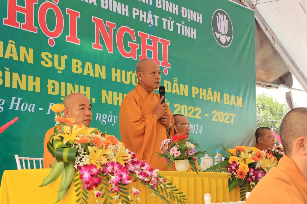 Thượng tọa Thích Thanh Hiển, Trưởng Ban Hướng dẫn Phật tử đã ban lời chỉ dạy đến toàn thể huynh trưởng, đoàn sinh GĐPT Bình Định, ngài mong muốn Phân ban đã được kiện toàn, thì GĐPT Bình Định phải thật sự đoàn kết, yêu thương, phải lấy quyền lợi của tổ chức làm trọng, phải vì đoàn sinh mà phấn đấu để xứng đáng với lời phát nguyện huynh trưởng Gia đình Phật tử Việt Nam.