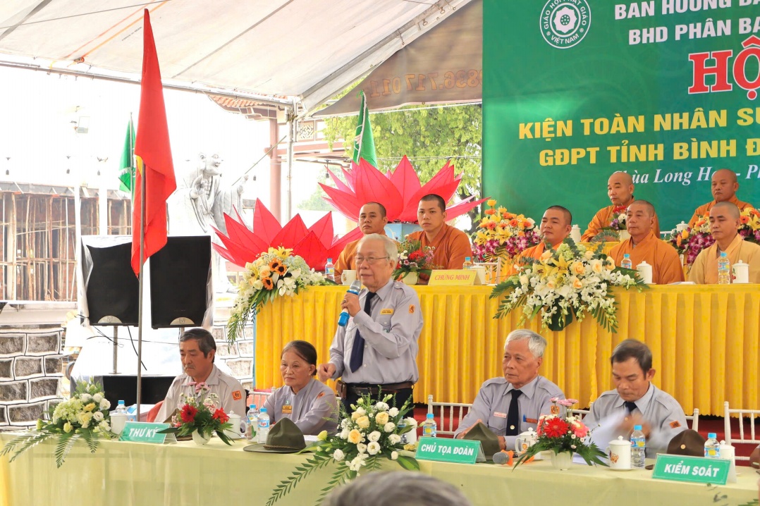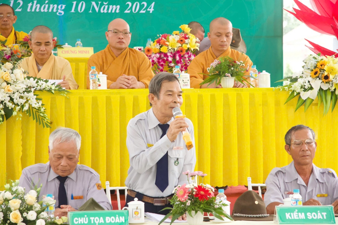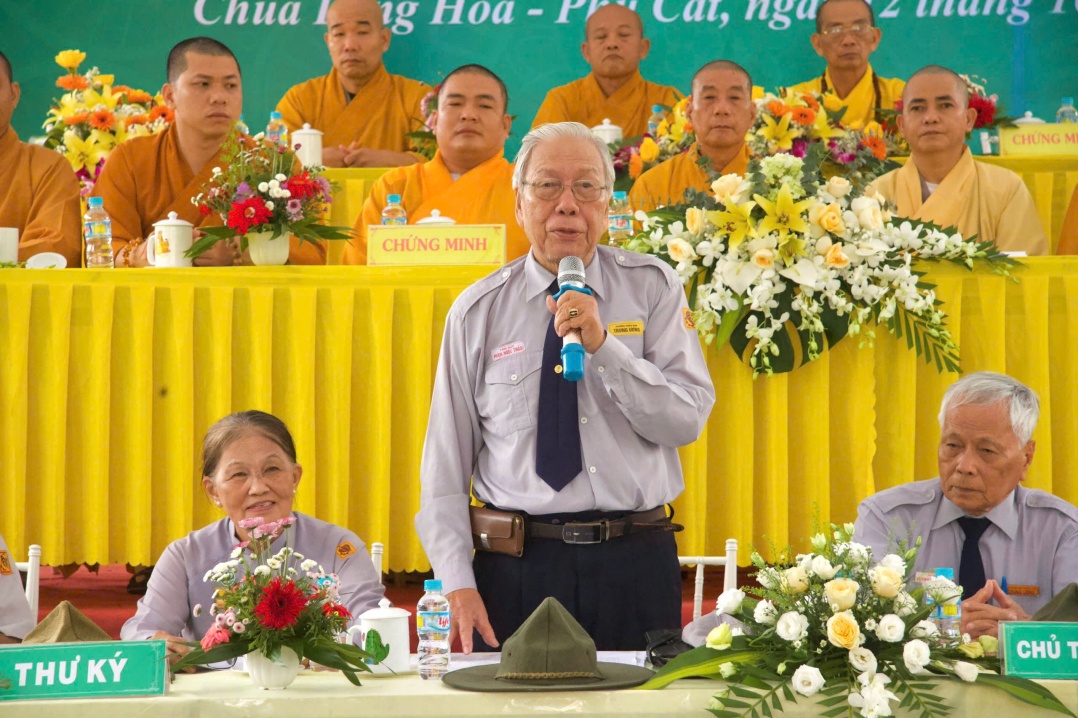 Huynh trưởng cấp Dũng Tâm Giới Phan Ngọc Thảo, Trưởng Phân ban GĐPT Trung ương đã phát biểu chia sẻ sự hân hoan khi GĐPT Bình Định được kiện toàn, anh cũng mong GĐPT Bình Định cần nỗ lực thực hiện các phương pháp tu học của GĐPT để Lam tình được bền vững xứng đáng sự kỳ vọng của chư tôn đức.