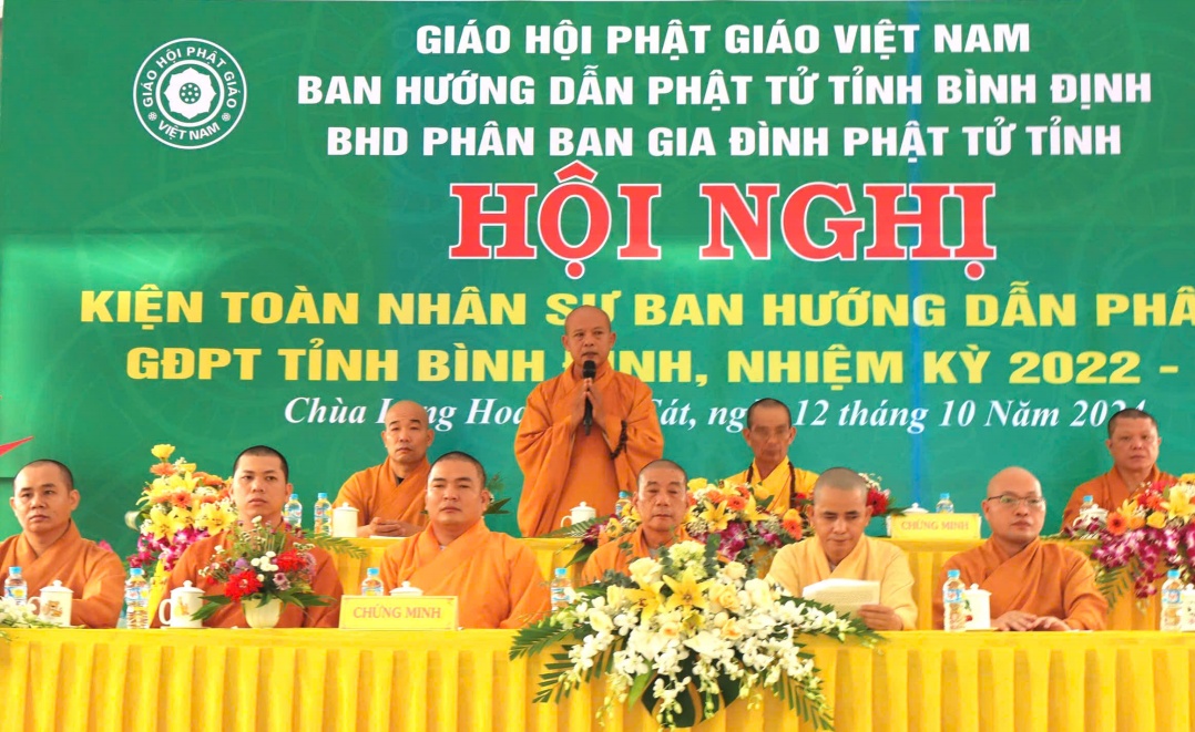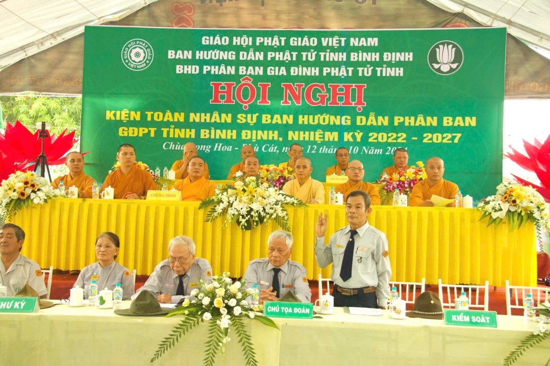 Nhằm kiện toàn nhân sự Phân Ban GĐPT tỉnh Bình Định sau thời gian dài ngưng trệ để củng cố và phát triển đơn vị; được sự thương tưởng của chư tôn đức Ban Hướng dẫn Phật tử, sáng ngày 12 tháng 10 năm 2024, tại chùa Long Hoa, 504 đường Quang Trung, thị trấn Ngô Mây, huyện Phù Cát, Phân ban Gia đình Phật tử Bình Định đã tổ chức Hội nghị giới thiệu nhân sự giữa nhiệm kỳ.
