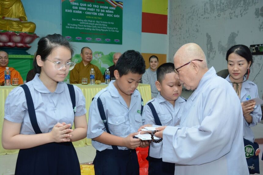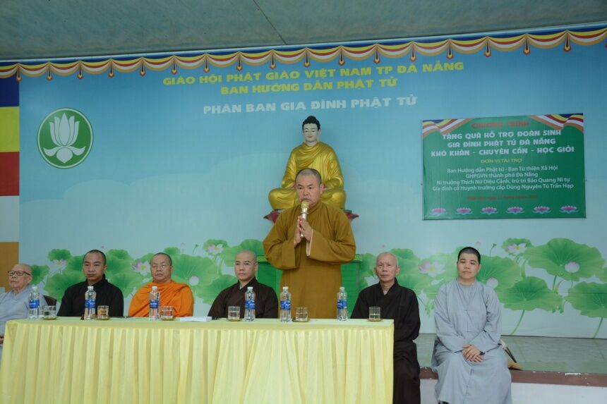 Nhằm chia sẻ niềm vui mùa Phật đản PL.2567 – DL.2023 với các đoàn sinh Gia đình Phật tử có hoàn cảnh khó khăn nhưng chuyên cần trong sinh hoạt và học giỏi ở trường học; Sáng ngày 21/5/2023 (nhằm ngày 03/4 Quý Mão), Phân ban Gia đình Phật tử Đà Nẵng đã tổ chức trao tặng quà Phật đản do Ban Hướng dẫn Phật tử, Ban Từ thiện Xã hội GHPGVN Tp Đà Nẵng; Ni trưởng Thích Nữ Diệu Cảnh và gia đình Cố huynh trưởng cấp Dũng Nguyên Tú Trần Hạp tài trợ.