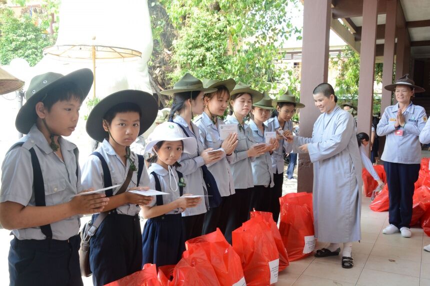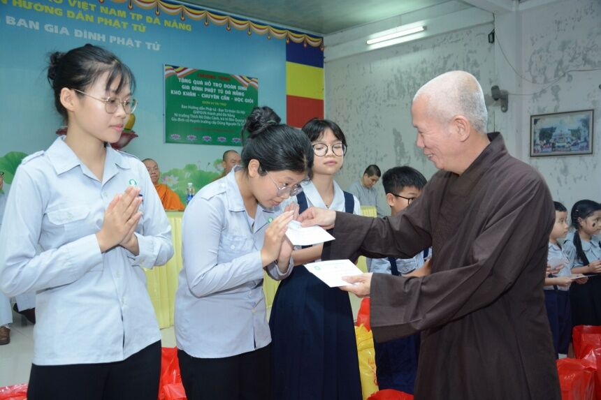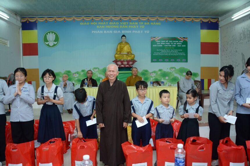 Phân ban Gia đình Phật tử Đà Nẵng tổ chức trao tặng quà mừng Phật đản đến đoàn sinh khó khăn