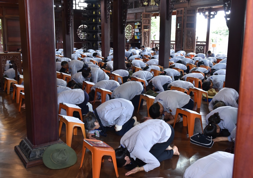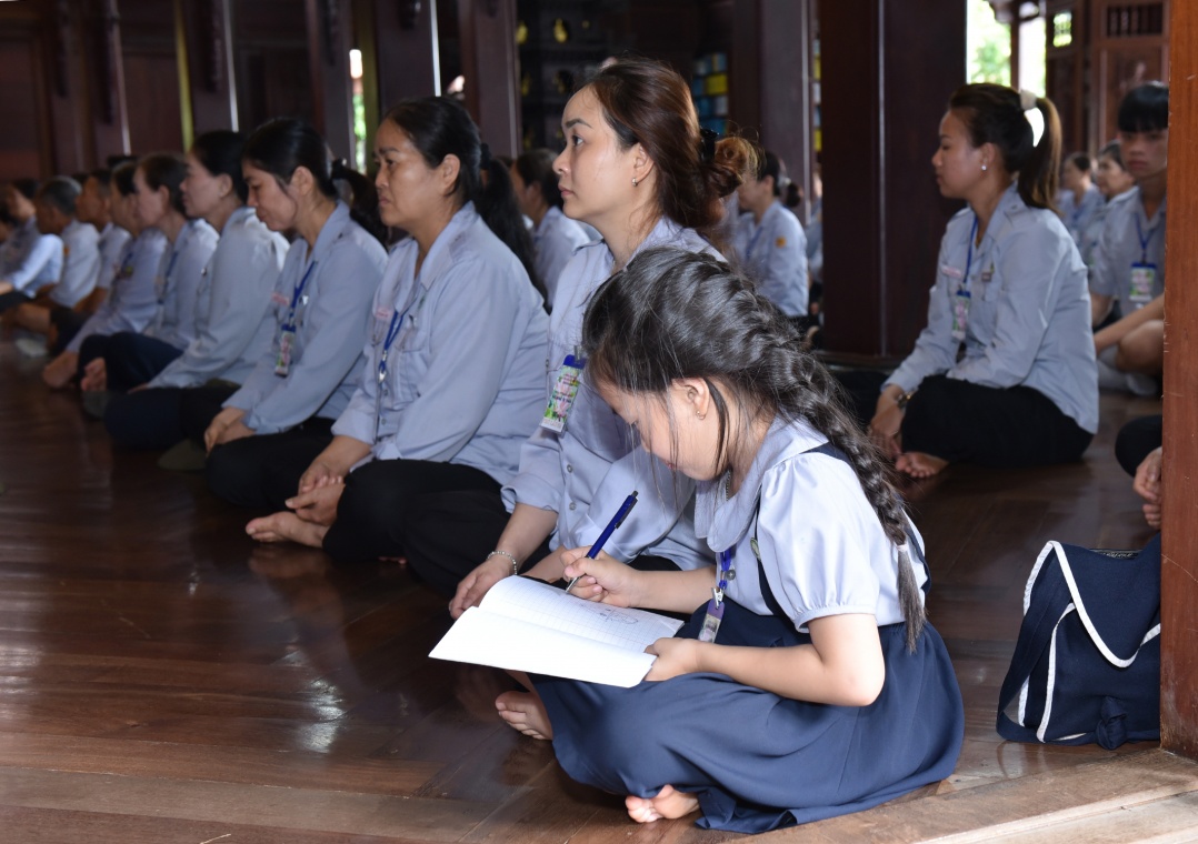 Chiều cùng ngày đại chúng đã được đón nhận một thời pháp thoại do ĐĐ Thích Tâm Định chia sẻ về pháp Giới – Định – Tuệ và khuyên đại chúng cố gắng hành trì, trao dồi đức hạnh để chăm lo đời sống tâm linh của chính mình, tinh tấn tu học và ứng dụng lời Phật dạy trong đời sống hàng ngày cho thân tâm an lạc, xã hội hạnh phúc. Lần lượt thời khóa tu tập của các giới tử là khóa lễ Tịnh độ, thiền hành và sinh hoạt của giới tử. Lễ xả giới trang nghiêm thanh tịnh và hoan hỷ của chư Tôn đức tại trú xứ.