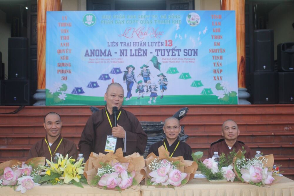 Thực hiện chương trình sinh hoạt tu học thường niên, nhằm mục đích đào tạo các đội chúng và đàn trưởng cho các đơn vị GĐPT tại quận, vào các ngày 30 tháng 6 và 01, 02 tháng 7 năm 2023 (14/5/ Quý Mão), các Phân ban GĐPT quận Hải Châu và quận Thanh Khê đã tổ chức liên trại Anoma-Niliên và Tuyết Sơn để đào tạo Đội Chúng trưởng, Phó và Đầu Thứ đàn cho các đơn vị sinh hoạt trên địa bàn.