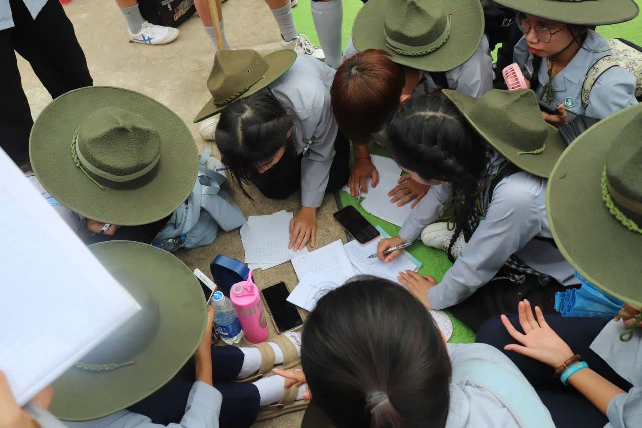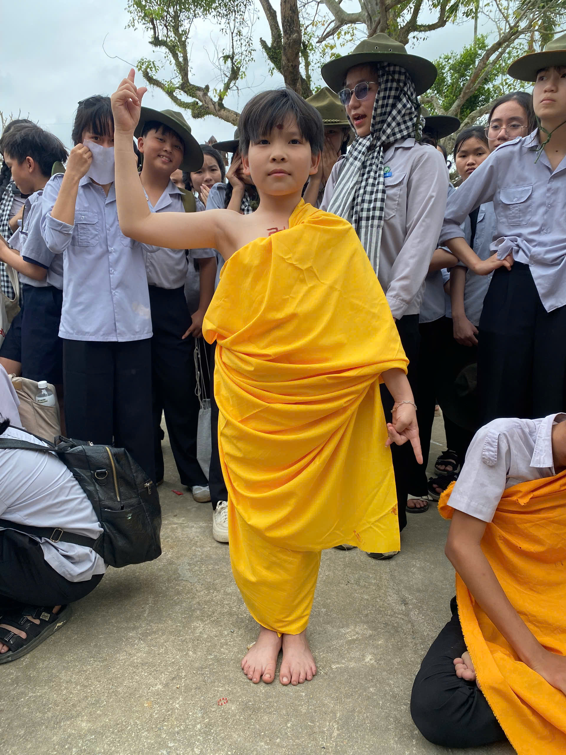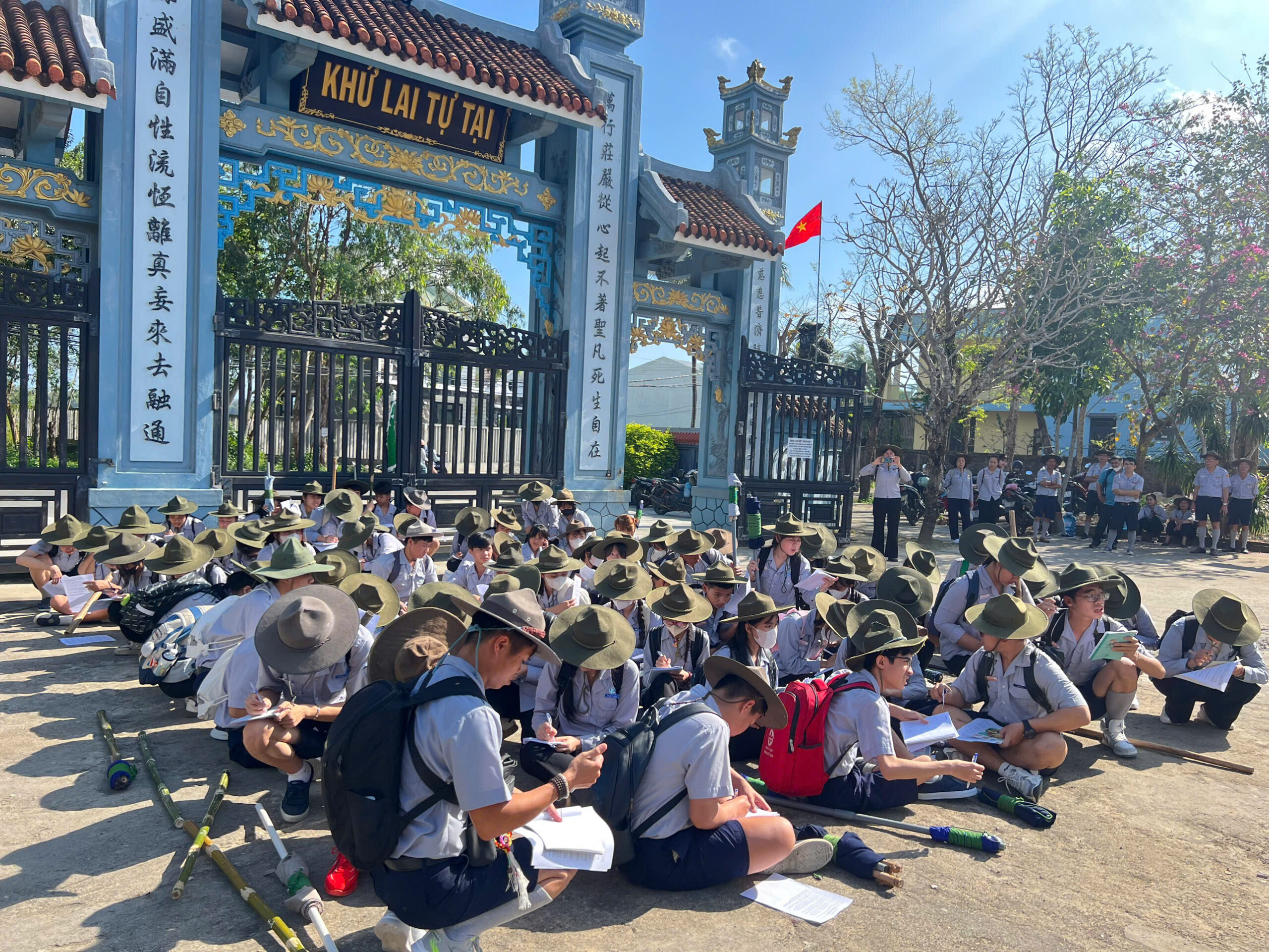 Hành trình tiếp tục với những bước chân kiên cường dưới nắng nóng đến Tổ đình Phước Lâm. Tại đây, chúng em không chỉ được giao lưu Phật pháp, luyện hát và tìm hiểu lịch sử tổ đình mà còn tham gia thử thách giải mật thư đầy sôi động