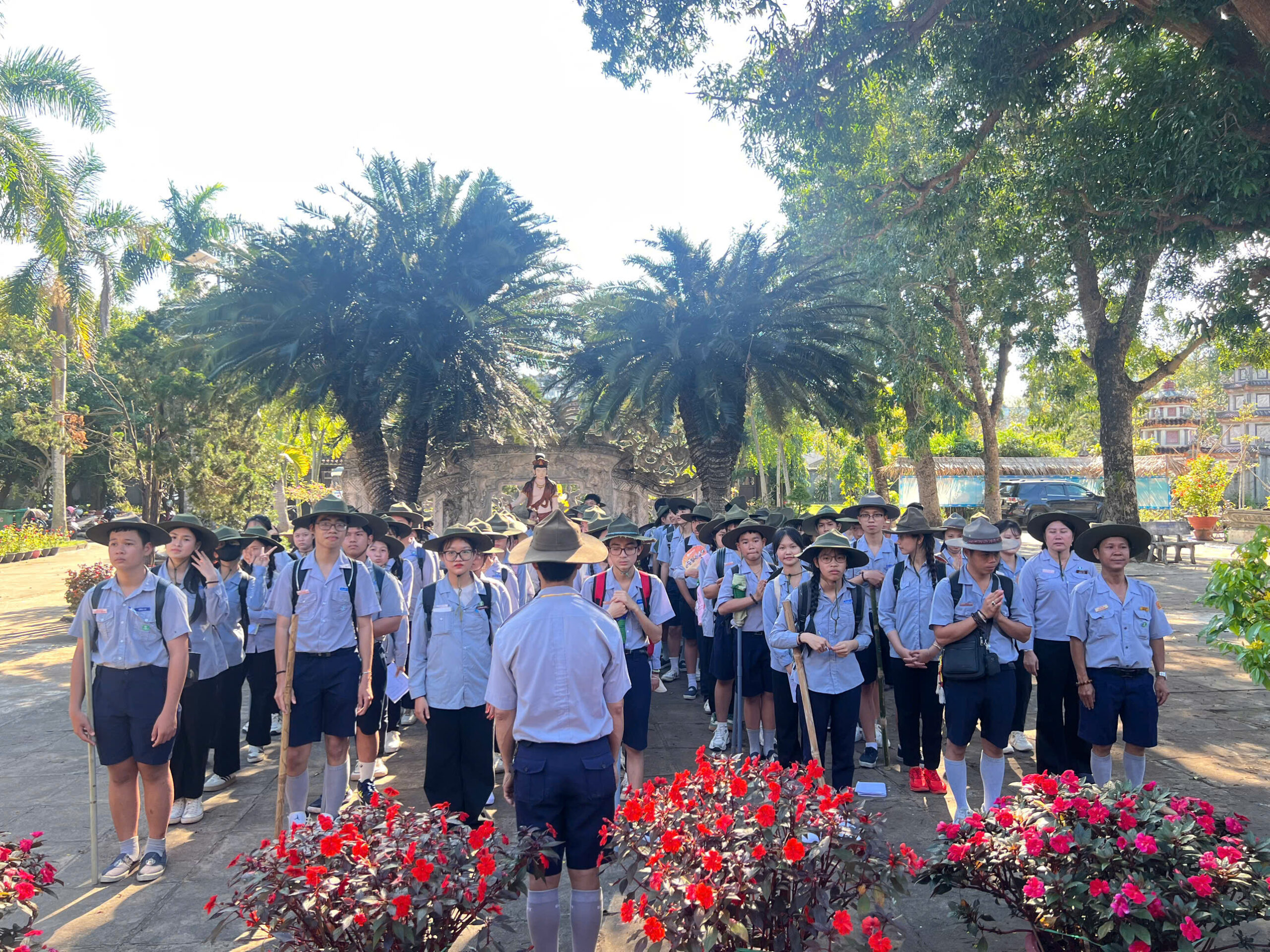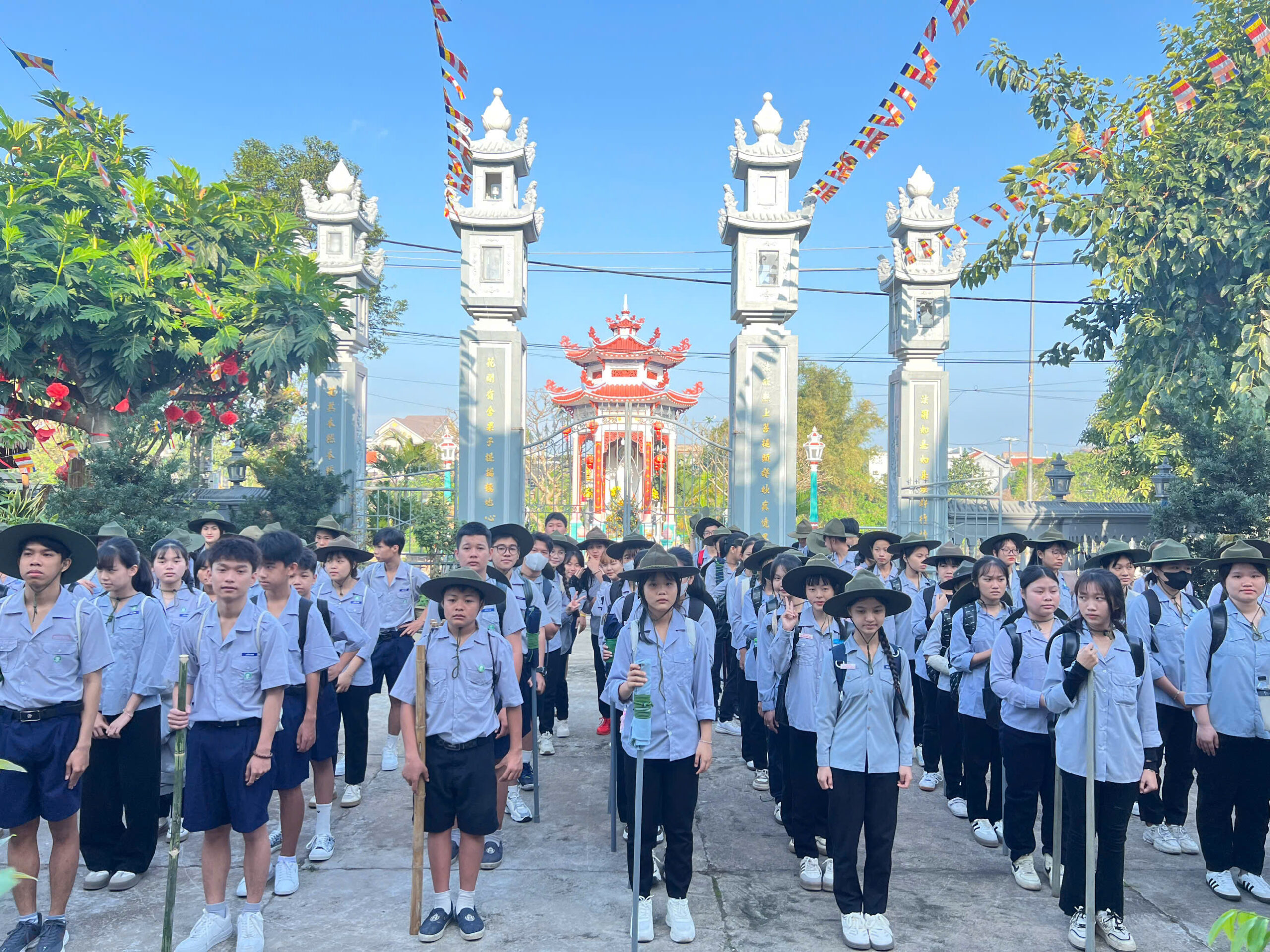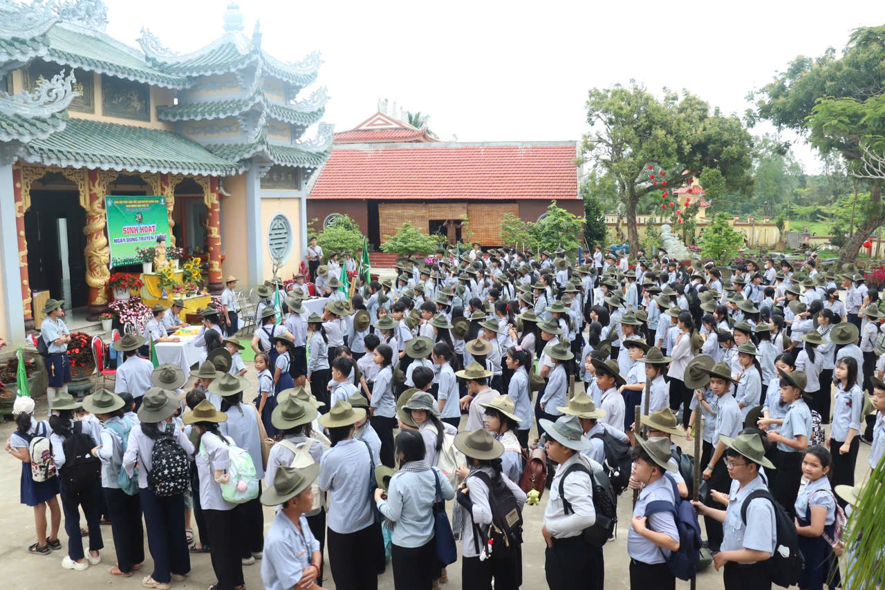 Từ sáng sớm ngày 02/3/2025, với hành trang sẵn sàng và tinh thần hứng khởi, hơn 100 trại sinh đã xuất phát từ chùa Pháp Hoa, bắt đầu chuyến hành quân về với những ngôi tổ đình danh tiếng – nơi lưu giữ dấu ấn lịch sử Phật giáo miền Trung. Tổ đình Vạn Đức là điểm dừng chân đầu tiên, nơi các em được đảnh lễ Tam Bảo, thăm các tháp Tổ và lắng nghe những câu chuyện về sự hình thành, phát triển Phật giáo qua từng giai đoạn.