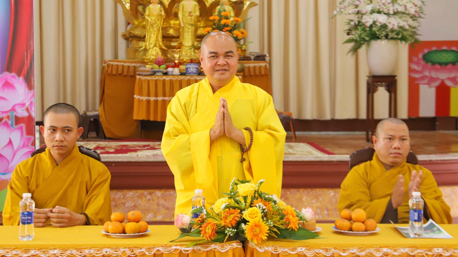 Quang lâm chứng minh, tham dự có: Thượng tọa Thích Nhuận Pháp, Phó trưởng Ban kiêm Chánh Thư ký Ban Trị sự GHPGVN tỉnh – Cố vấn Giáo hạnh Phân Ban Gia đình Phật tử tỉnh cùng chư Tôn đức tăng đồng về dự.