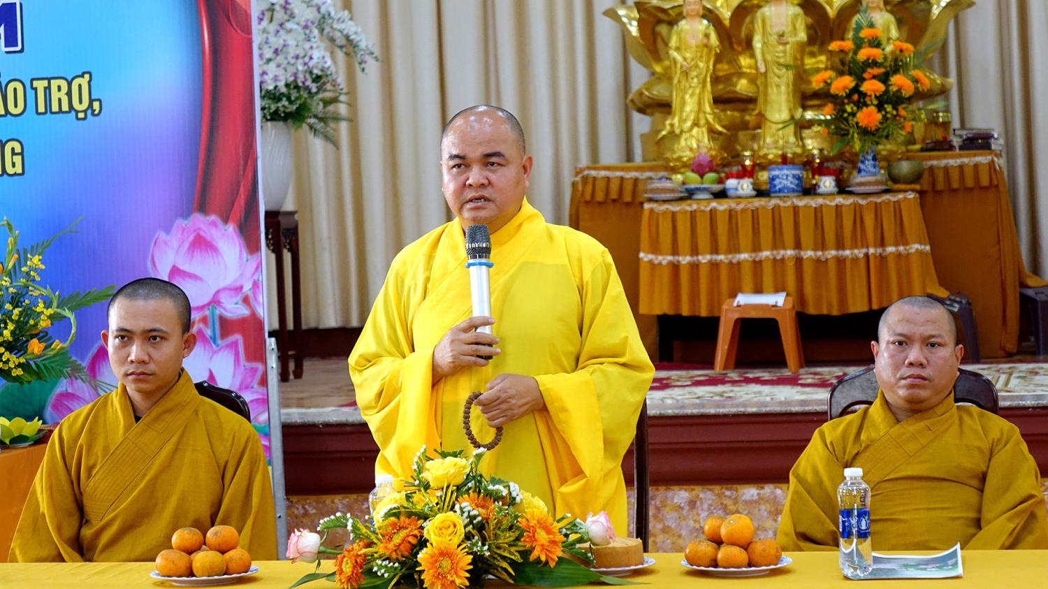 Đạo từ tại buổi lễ, Thượng tọa Thích Nhuận Pháp, Phó trưởng Ban kiêm Chánh Thư ký Ban Trị sự GHPGVN tỉnh – Cố vấn Giáo hạnh Phân Ban Gia đình Phật tử tỉnh, ghi nhận và tán thán tinh thần tổ chức trang nghiêm tại đơn vị khu vực.