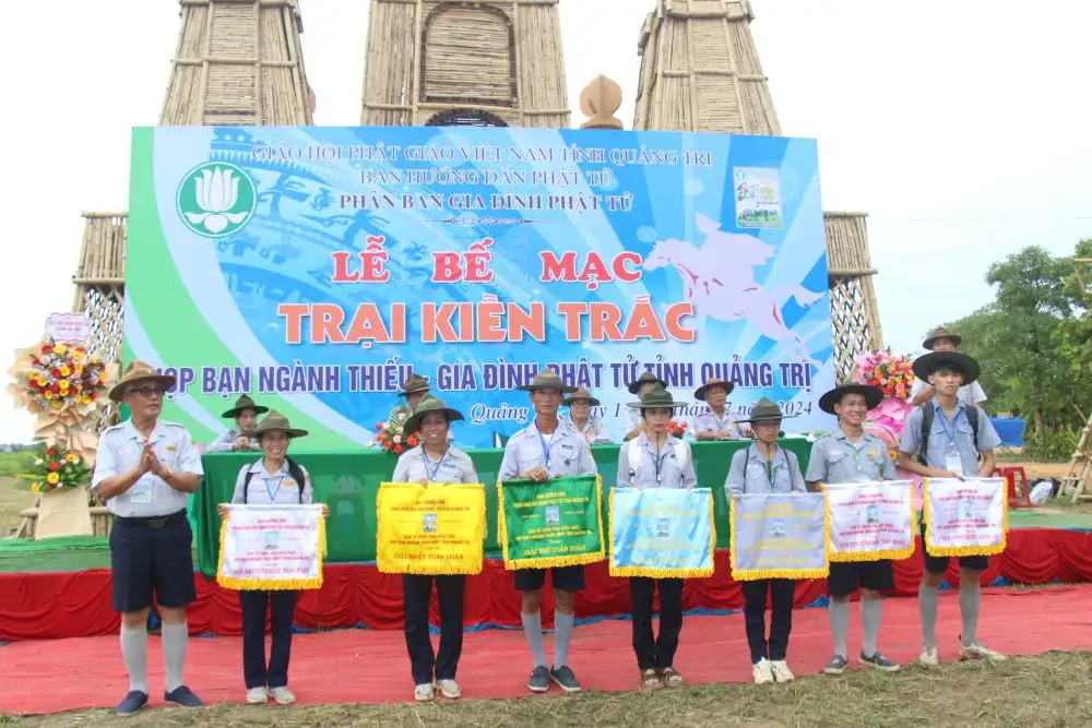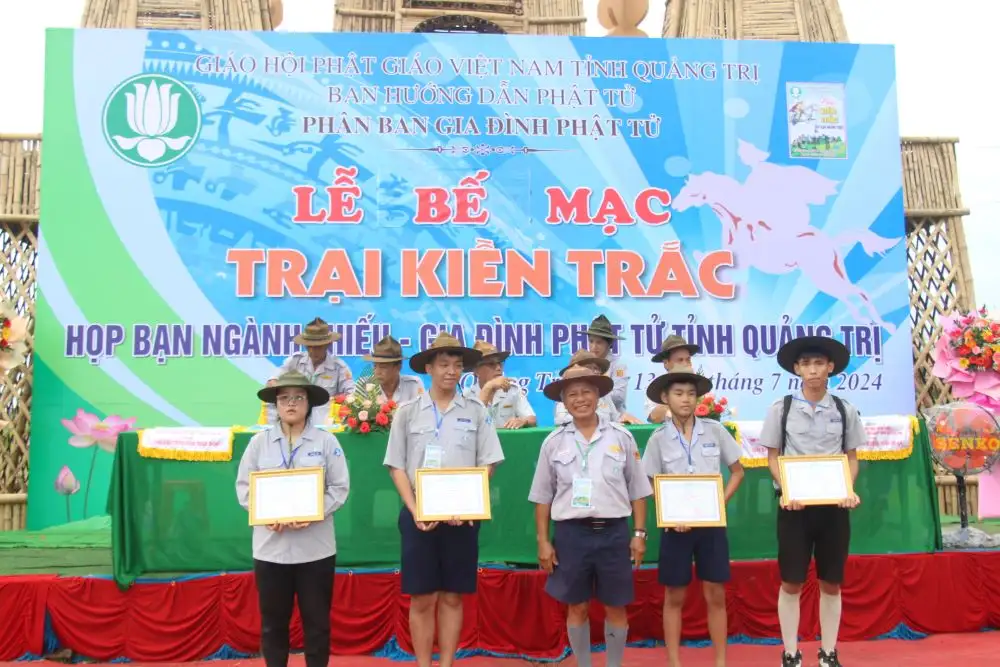 Sau hai ngày diễn ra hội trại vào lúc 16 giờ ngày 14/7/2024 (09/6/Giáp Thìn), Ban Quản Trại đã tổ chứu Lễ Bế Mạc hội Trại Kiền Trắc họp bạn Ngành Thiếu GĐPT Quảng Trị năm 2024.