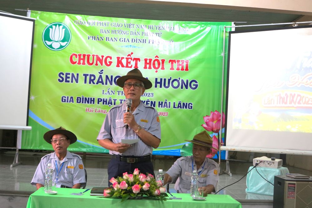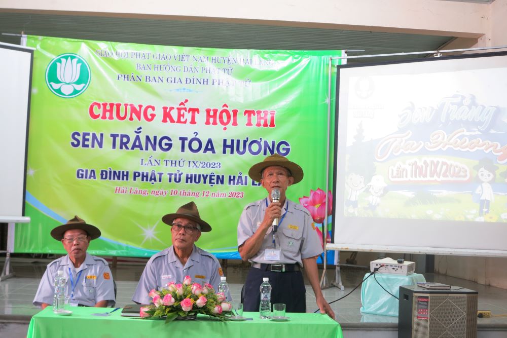 Phát biểu chỉ đạo HTr cấp Tấn Tâm Ấn Hoàng Thúc Quyền rất vui mừng vì GĐPT huyện đã duy trì và phát  triển hội thi đến nay đã chín năm, tán dương tinh thần của Huynh trưởng và đoàn sinh đã cố gắng khắc phục mọi khó khăn tham gia hội thi, đây là cơ hội để anh chị em ôn tập cũng cố lại kiến thức về Phật pháp, chuyên môn sau một năm tu học. Qua đây anh cũng mong rằng Phân ban GĐPT huyện nên cải tiến chương trình thi tổ chức trong một ngày để kết hợp với các hoạt động khác nhau để các em được sinh hoạt giao lưu cùng nhau.