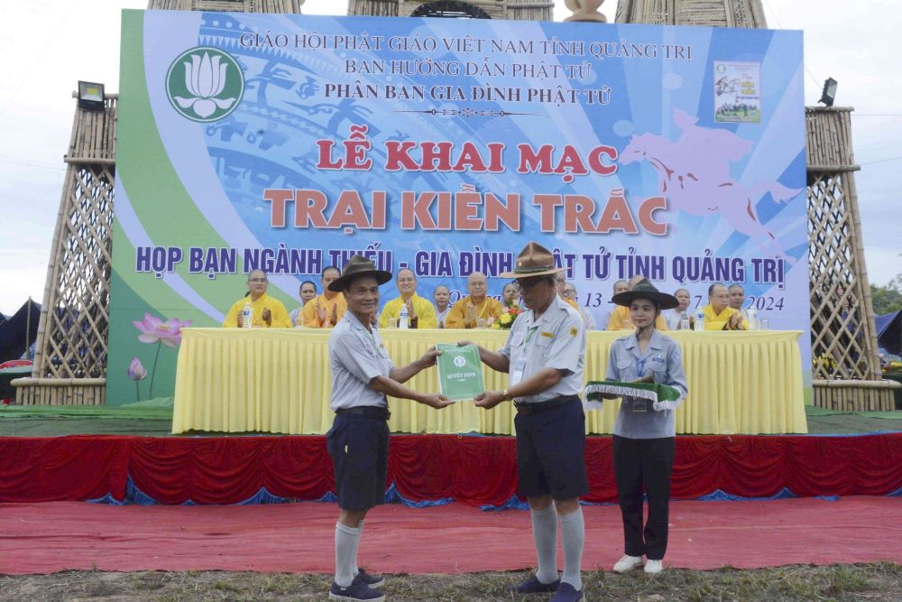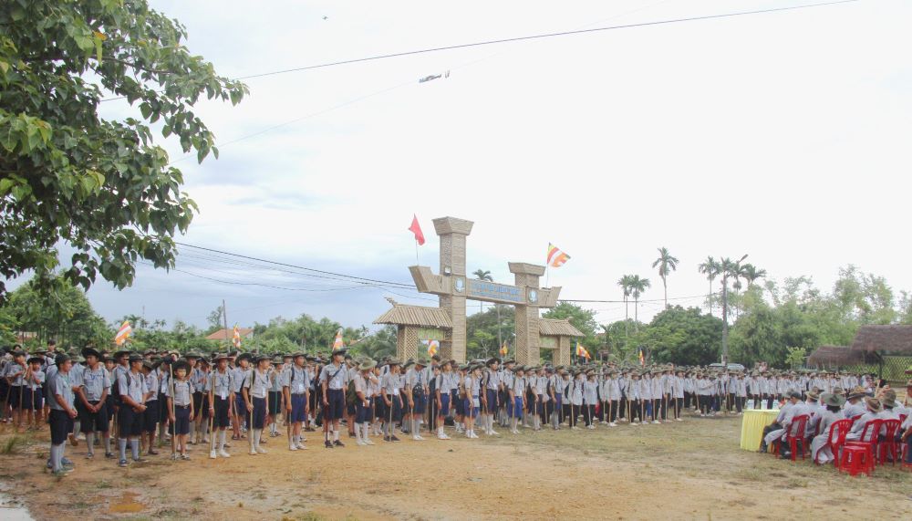 Thực hiện Nghị Quyết Hội Nghị Đại biểu Huynh Trưởng GĐPT Quảng Trị lần thứ 24 Nhiệm kỳ 2022-2027 và Nghị Quyết Hội nghi thường niên năm 2024. Được sự hoan hỷ đồng thuận của Thường trực Ban Trị sự, Ban HDPT GHPGVN tỉnh Quảng Trị, Huyện Triệu Phong và lãnh đạo chính quyền Mặt Trận các cấp. Sáng nay, ngày 14/7/2024 (9/6/Giáp Thìn), tại chùa Khánh An (NPĐ An Trú), Thôn An Trú, xã Triệu Tài, huyện Triệu Phong, Phân ban GĐPT Tỉnh tổ chức khai mạc Hội Trại Kiền Trắc họp bạn Ngành Thiếu GĐPT Tỉnh Quảng Trị.