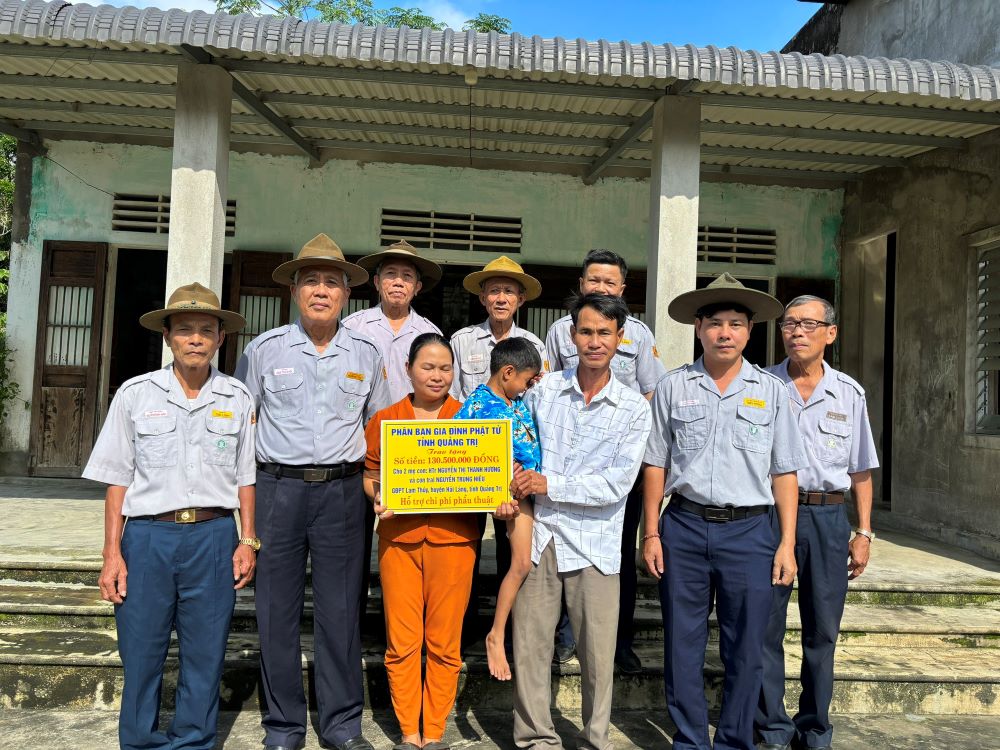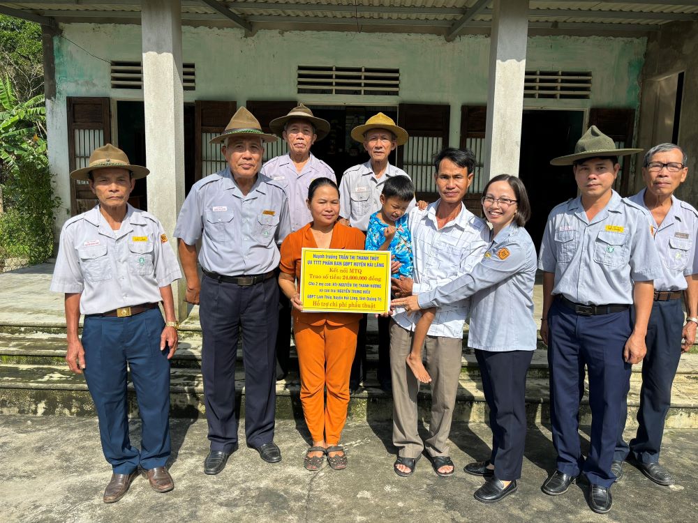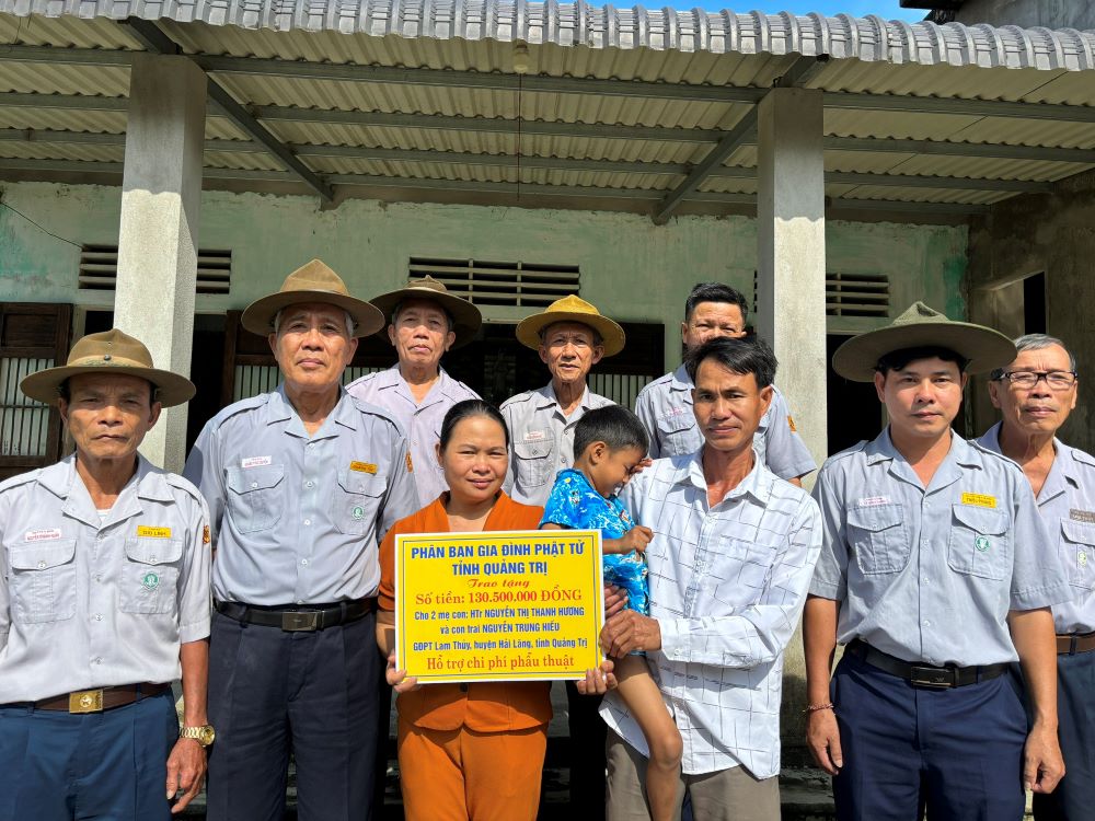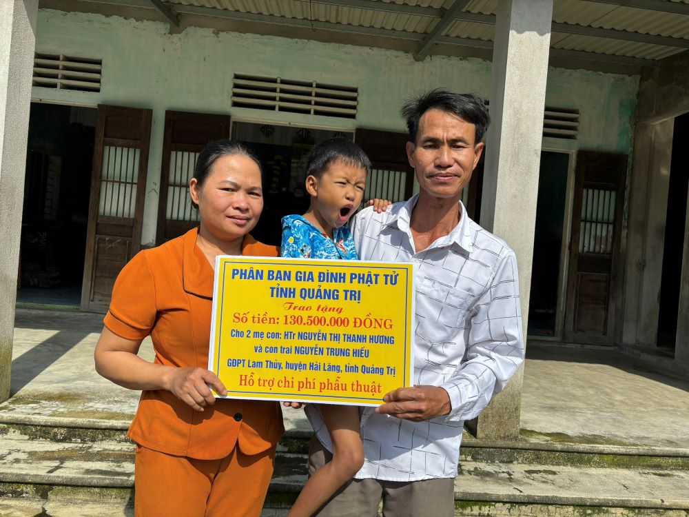 Tại đây thay mặt Phân ban GĐPT Tỉnh HTr cấp Tấn Tâm Ấn Hoàng Thúc Quyền đã có đôi lời sẽ chia động viên và cầu nguyện cho ca phẫu thuật ghép gan của hai mẹ con HTr Nguyễn Thanh Hương được thành tựu như nguyện về mọi mặt. Và anh đã trao 130.500.000đ (Một trăm ba mươi triệu năm trăm nghìn đồng) đến gia đình chị Thanh Hương. Số tiền trên là sự sẽ chia của anh chị em áo lam các GĐPT cơ sở tại các huyện Gio Linh, Đông Hà, Cam Lộ, Hướng Hóa, Triệu Phong, Hải Lăng, Thị xã Quảng Trị và qua tài khoản HTr Trần Thị Thanh Thủy.
