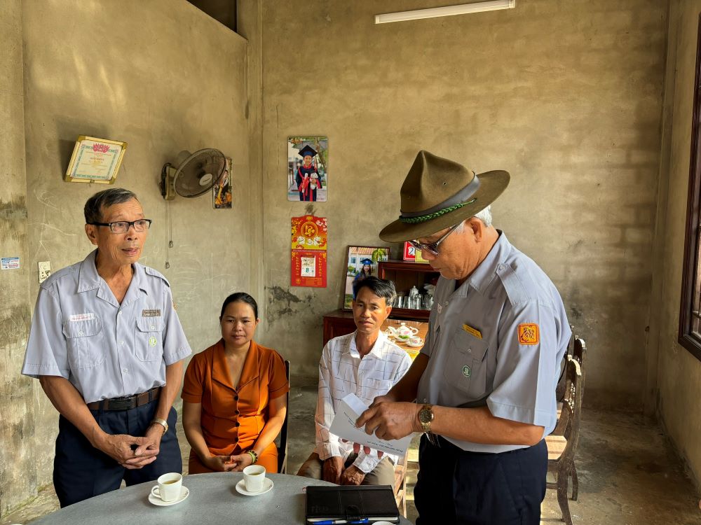 Đến trao có HTr cấp Tấn Tâm Ấn Hoàng Thúc Quyền, Trưởng phân ban GĐPT Tỉnh Quảng Trị; HTr cấp Tấn Tâm Hải Nguyễn Khê, Trưởng Phân ban GĐPT Huyện Hải Lăng; HTr cấp Tấn Tâm Quang Lê Đức Hưởng, Phó Phân Ban GĐPT Hải Lăng; HTr Cấp Tấn Tâm Lý Nguyễn Đăng Tý Gia Trưởng GĐPT Lam Thủy, cùng quý Huynh trưởng đại diện Phân ban GĐPT Huyện Triệu Phong, Gio Linh.