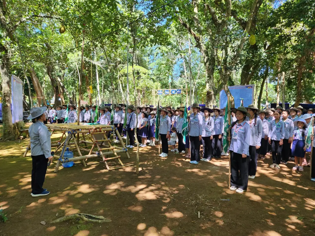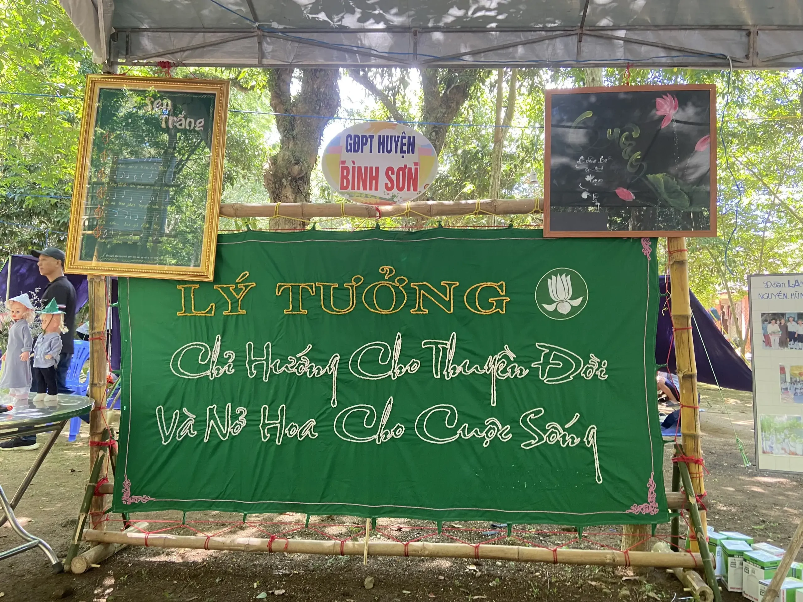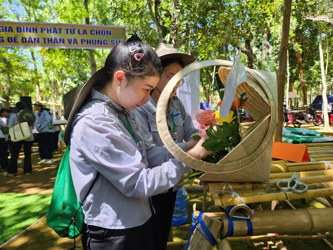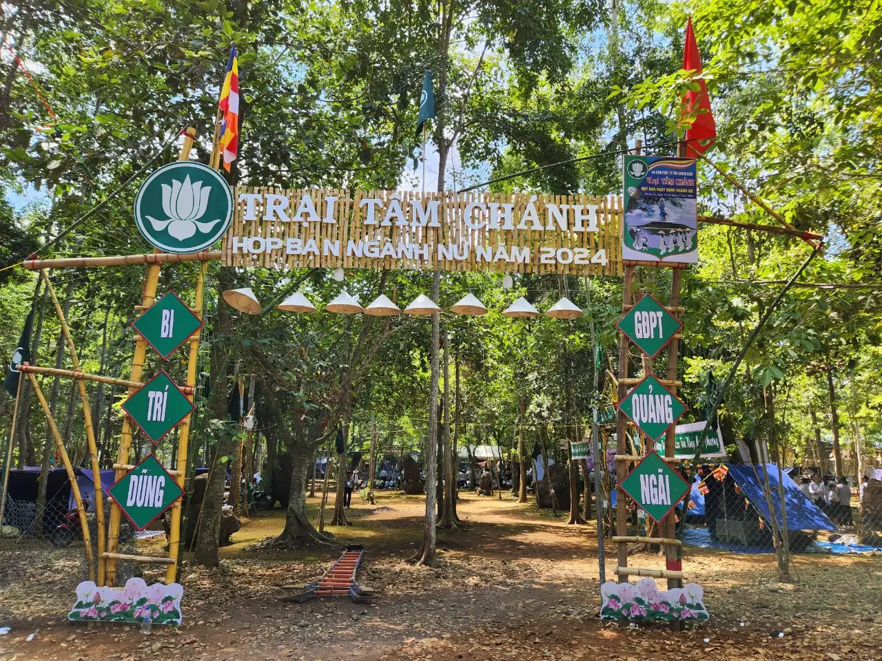 Khu vực trại đã được chuẩn bị kỹ lưỡng từ trước. Những lá cờ Phật giáo, xen lẫn cờ Sen trắng GĐPT tung bay phất phới trên nền trời xanh thẳm, tạo nên một khung cảnh vô cùng đẹp mắt. Cổng trại của các tiểu trại GĐPT cấp huyện và lều trại của các đơn vị GĐPT cơ sở được dựng lên ngay ngắn, trang trí trang nghiêm đẹp mắt. Các chị, các em nhanh chóng sắp xếp đồ đạc, ổn định chỗ ở và bắt đầu ngày mới với các bộ môn thi đua với một tinh thần đầy nhiệt huyết.