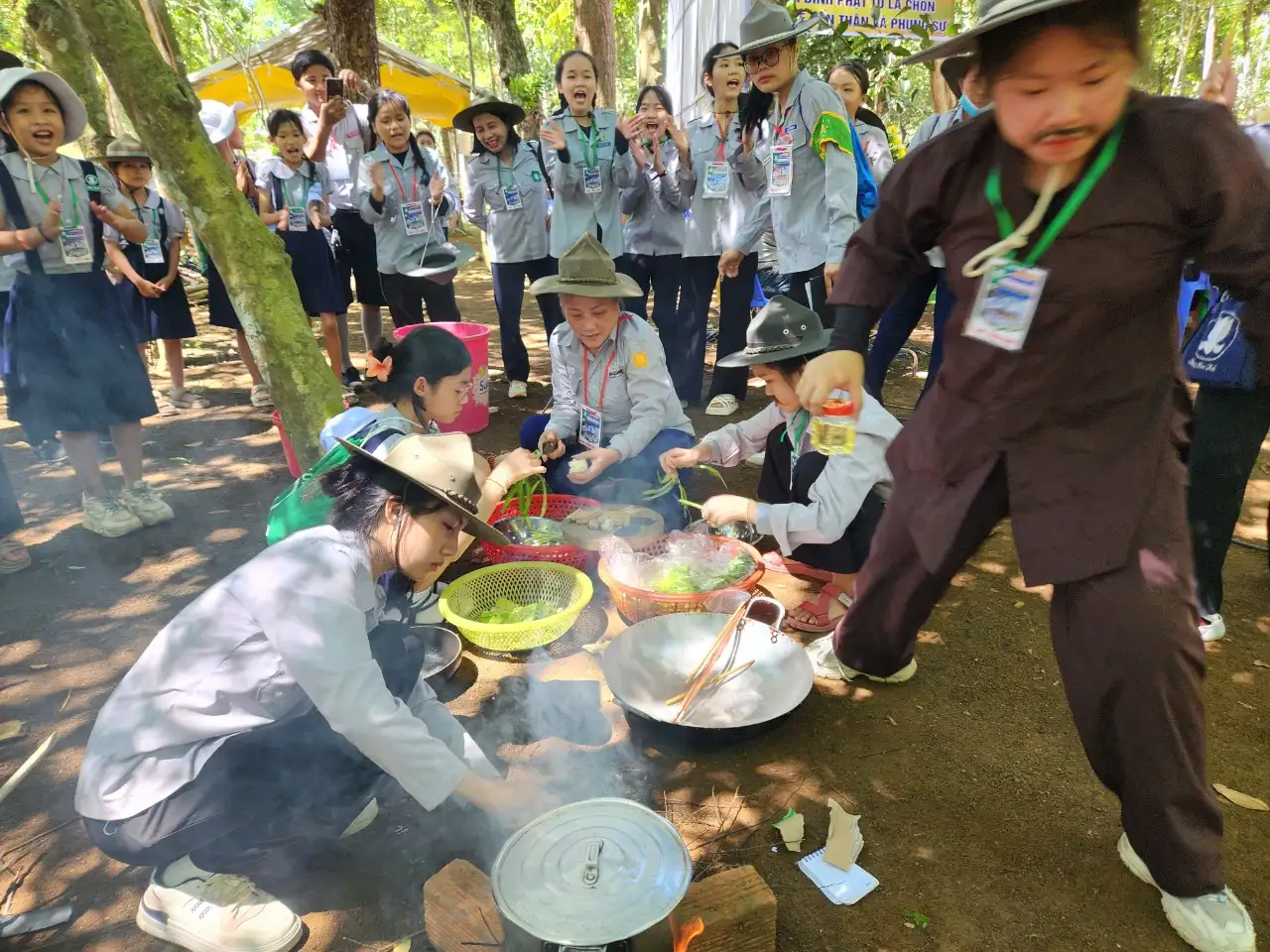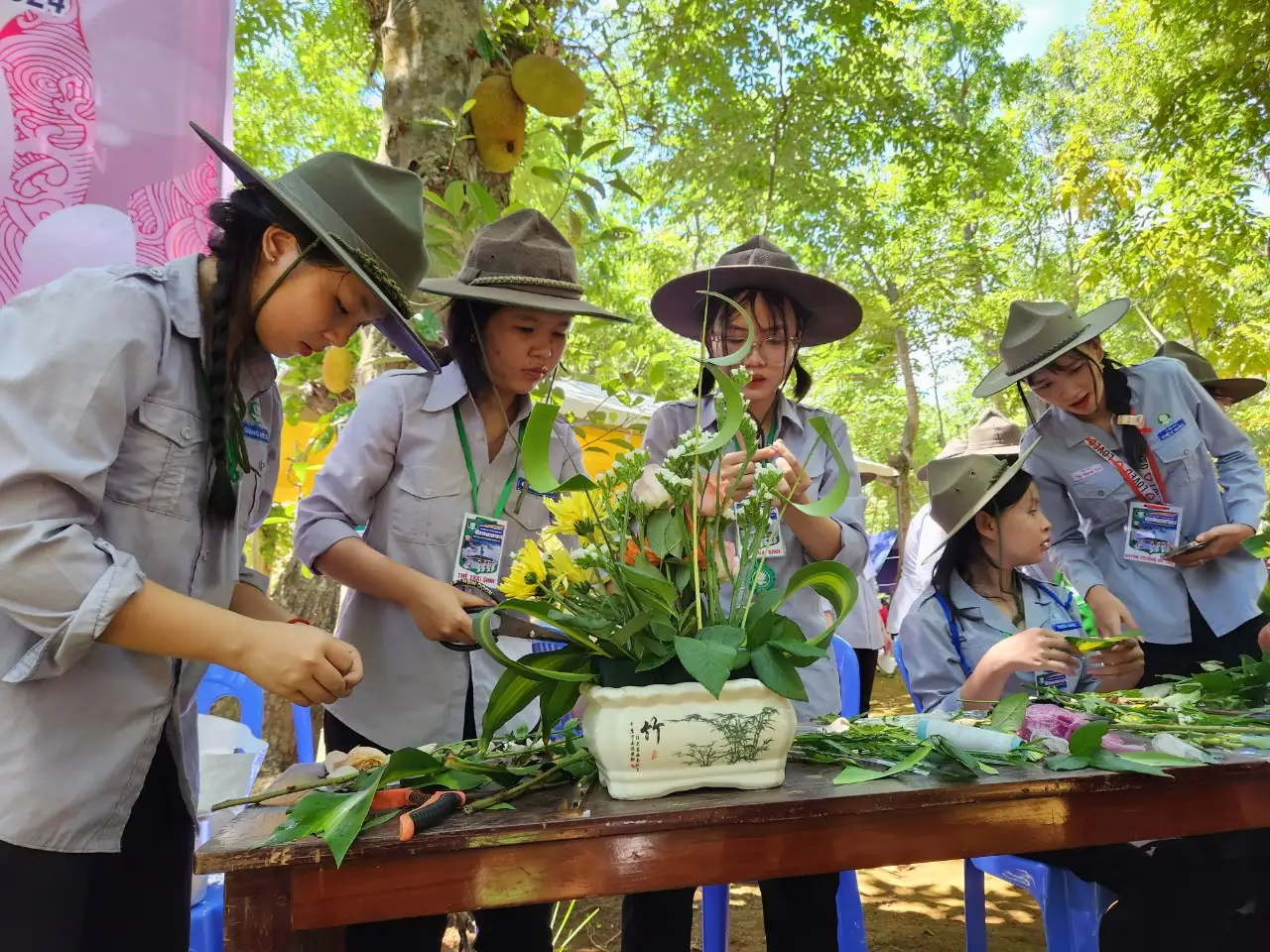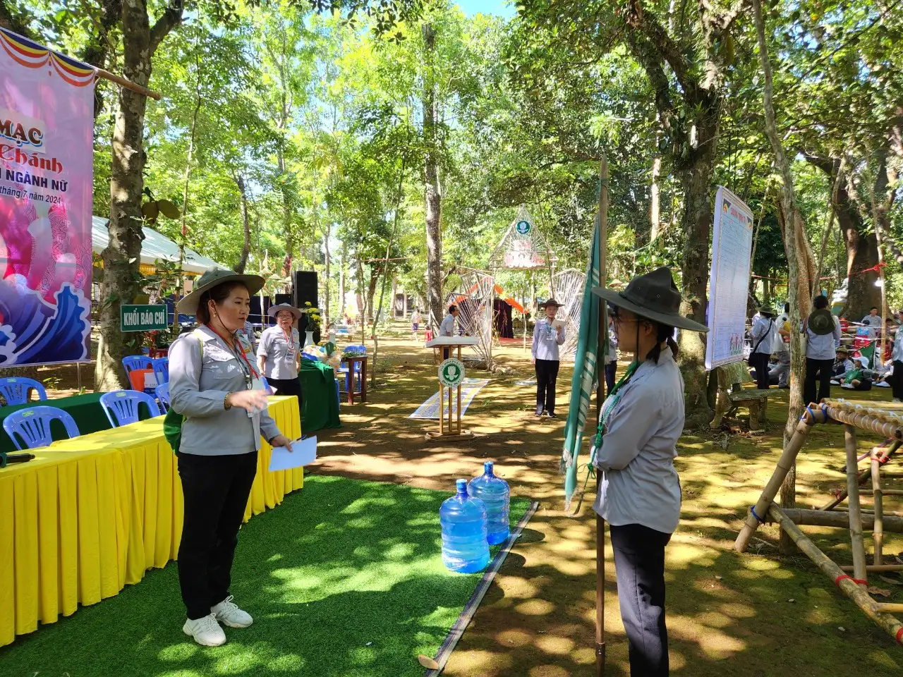 Khu vực trại đã được chuẩn bị kỹ lưỡng từ trước. Những lá cờ Phật giáo, xen lẫn cờ Sen trắng GĐPT tung bay phất phới trên nền trời xanh thẳm, tạo nên một khung cảnh vô cùng đẹp mắt. Cổng trại của các tiểu trại GĐPT cấp huyện và lều trại của các đơn vị GĐPT cơ sở được dựng lên ngay ngắn, trang trí trang nghiêm đẹp mắt. Các chị, các em nhanh chóng sắp xếp đồ đạc, ổn định chỗ ở và bắt đầu ngày mới với các bộ môn thi đua với một tinh thần đầy nhiệt huyết.