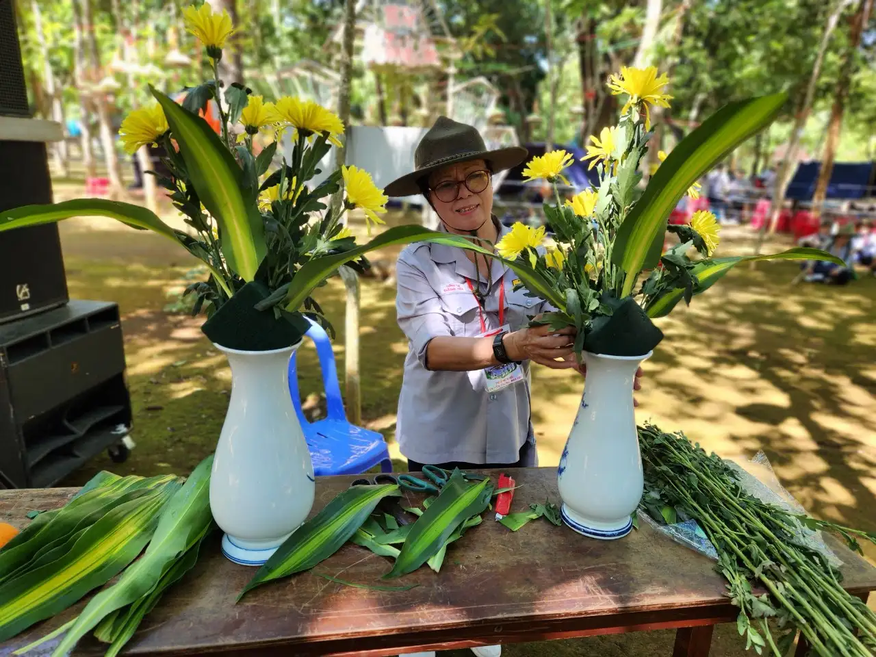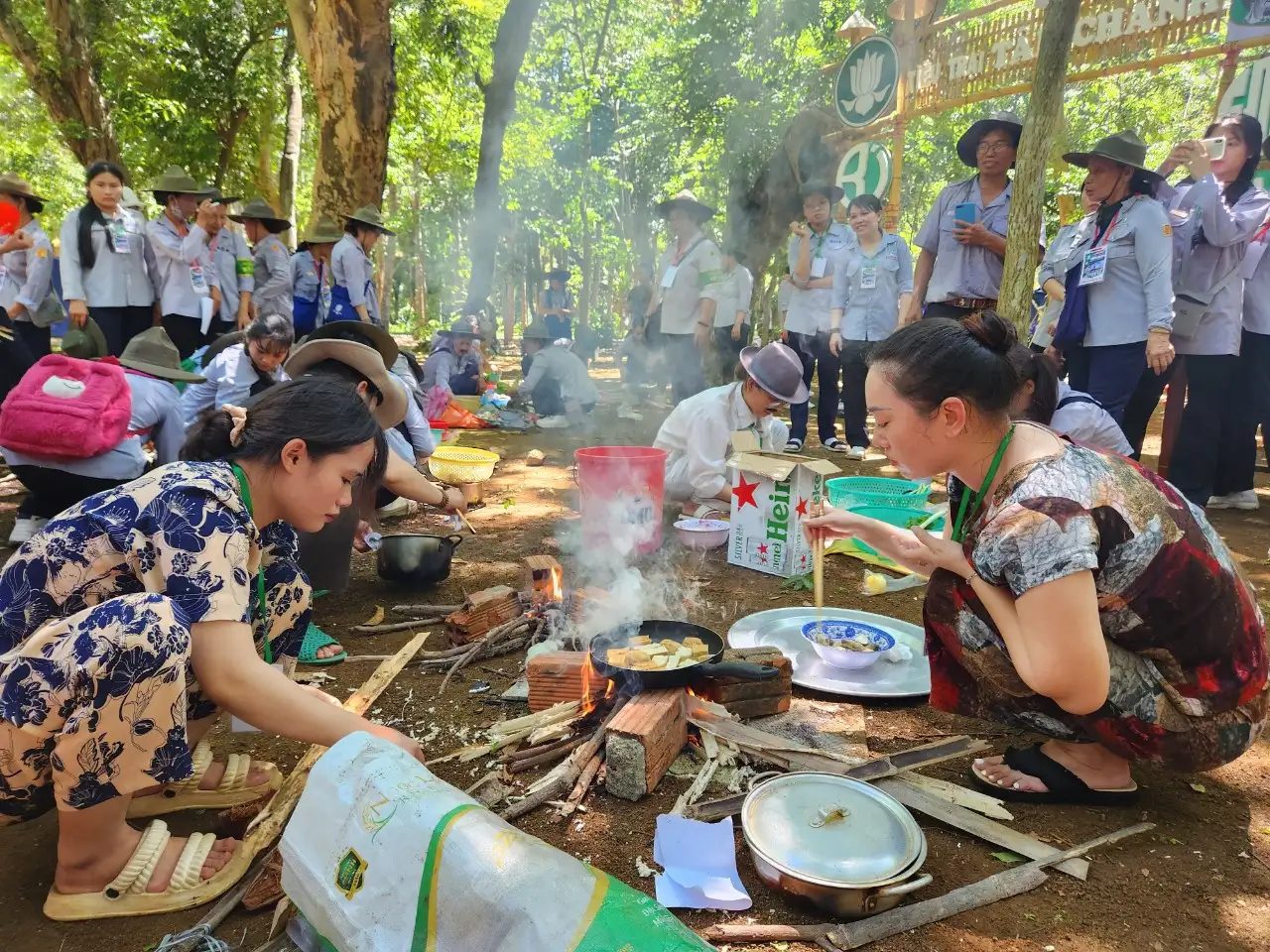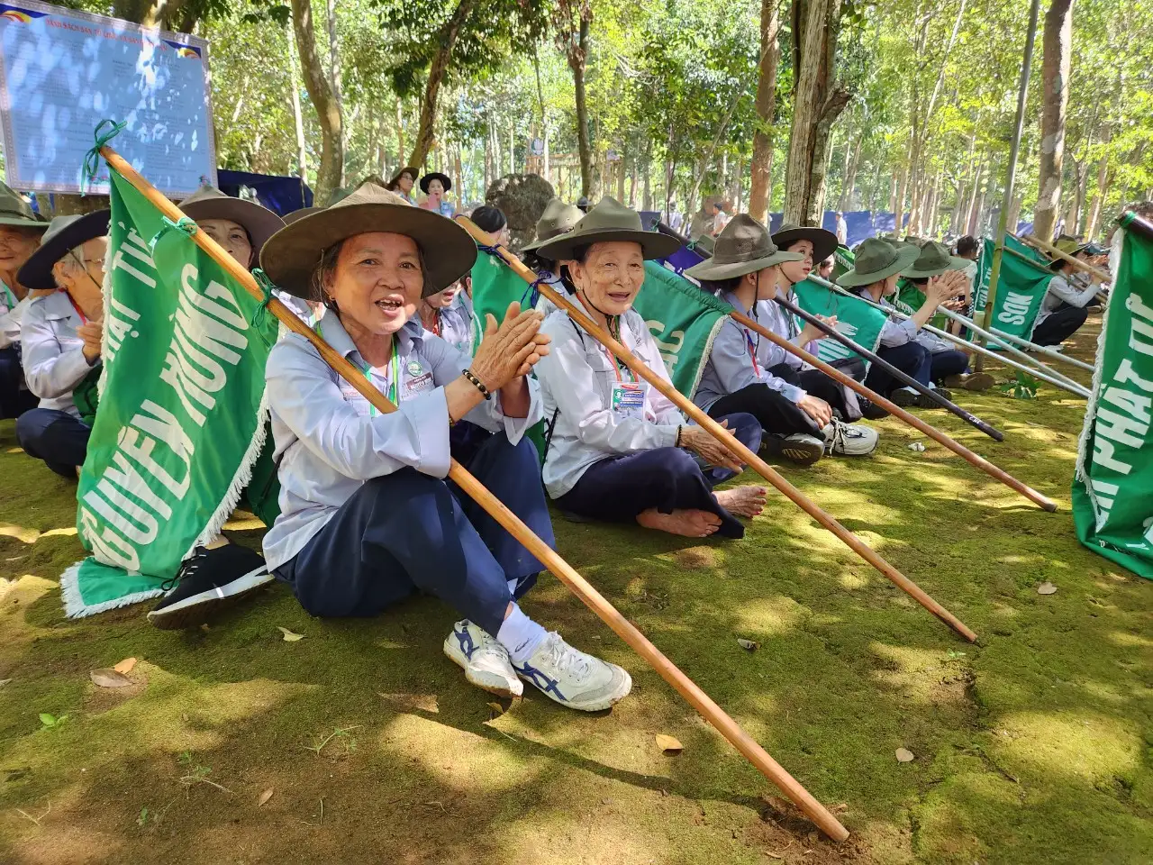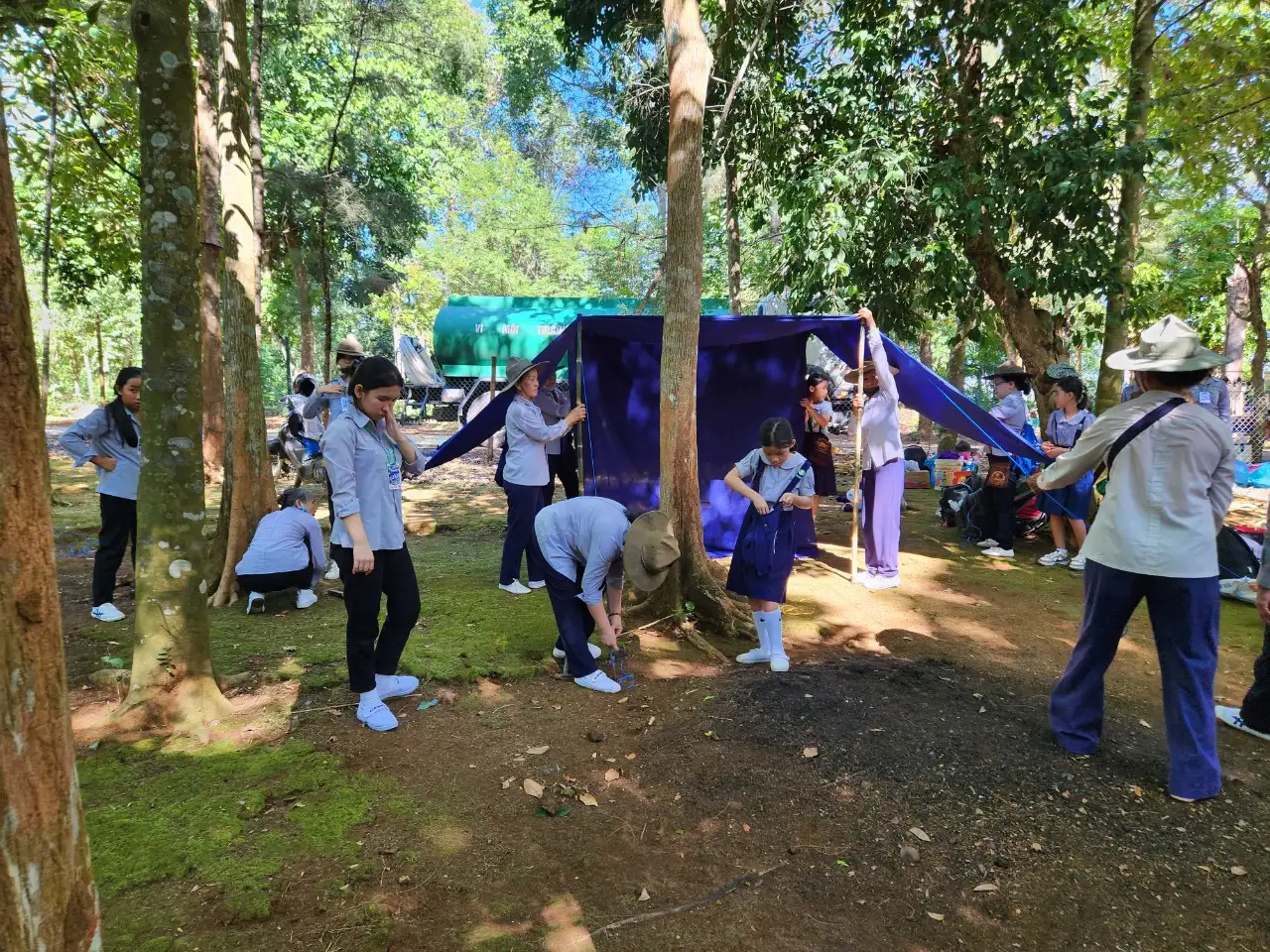 Khu vực trại đã được chuẩn bị kỹ lưỡng từ trước. Những lá cờ Phật giáo, xen lẫn cờ Sen trắng GĐPT tung bay phất phới trên nền trời xanh thẳm, tạo nên một khung cảnh vô cùng đẹp mắt. Cổng trại của các tiểu trại GĐPT cấp huyện và lều trại của các đơn vị GĐPT cơ sở được dựng lên ngay ngắn, trang trí trang nghiêm đẹp mắt. Các chị, các em nhanh chóng sắp xếp đồ đạc, ổn định chỗ ở và bắt đầu ngày mới với các bộ môn thi đua với một tinh thần đầy nhiệt huyết.
