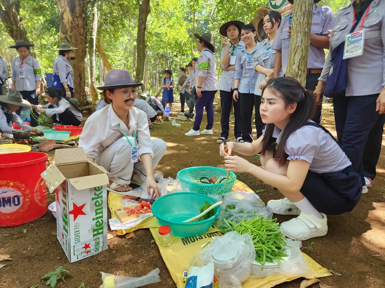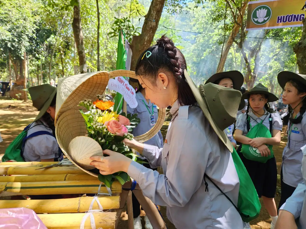 Đường về Thiên Ấn uốn lượn núi đồi hùng vỹ, trùng điệp quanh co, từng đoàn xe nối đuôi nhau tiến về đỉnh non thiêng Thiên Ấn tự, chốn địa linh được xem như là chiếc nôi của Phật giáo quê hương Núi Ấn Sông Trà mang theo Huynh trưởng Đoàn sinh đến từ GĐPT các huyện, thị xã, thành phố trong tỉnh, chị em trại sinh trong bộ trang phục màu lam hiền dịu thân thương đang hân hoan tiến vào khu vực đất trại. Mỗi bước chân, mỗi nụ cười đều rạng rỡ, tràn đầy sức sống. Những chiếc ba lô nặng trĩu trên vai không làm giảm đi sự háo hức của các chị, các em. Những lời chào hỏi, những tiếng cười giòn tan vang lên, làm khu trại trở nên náo nhiệt và ấm áp.