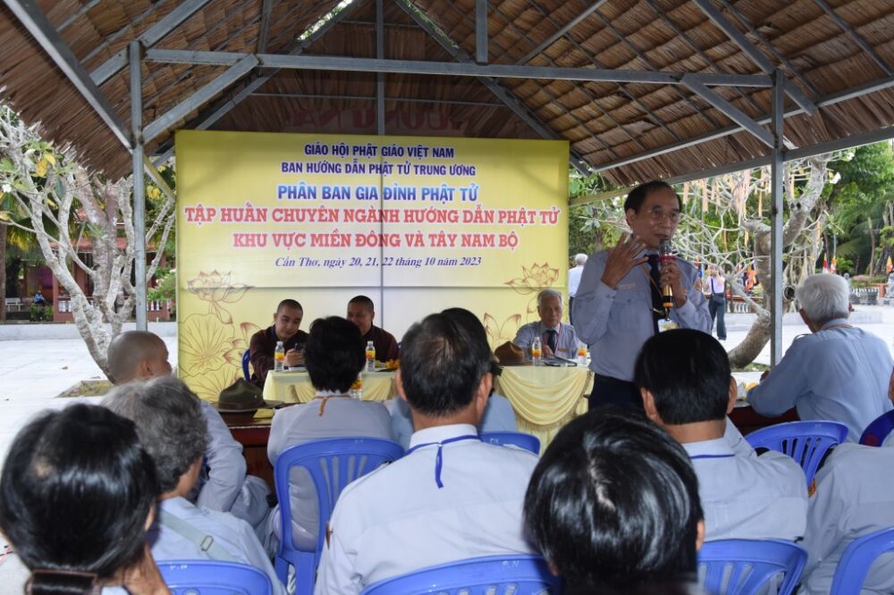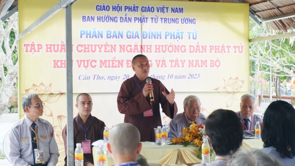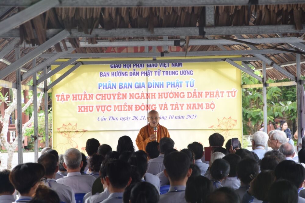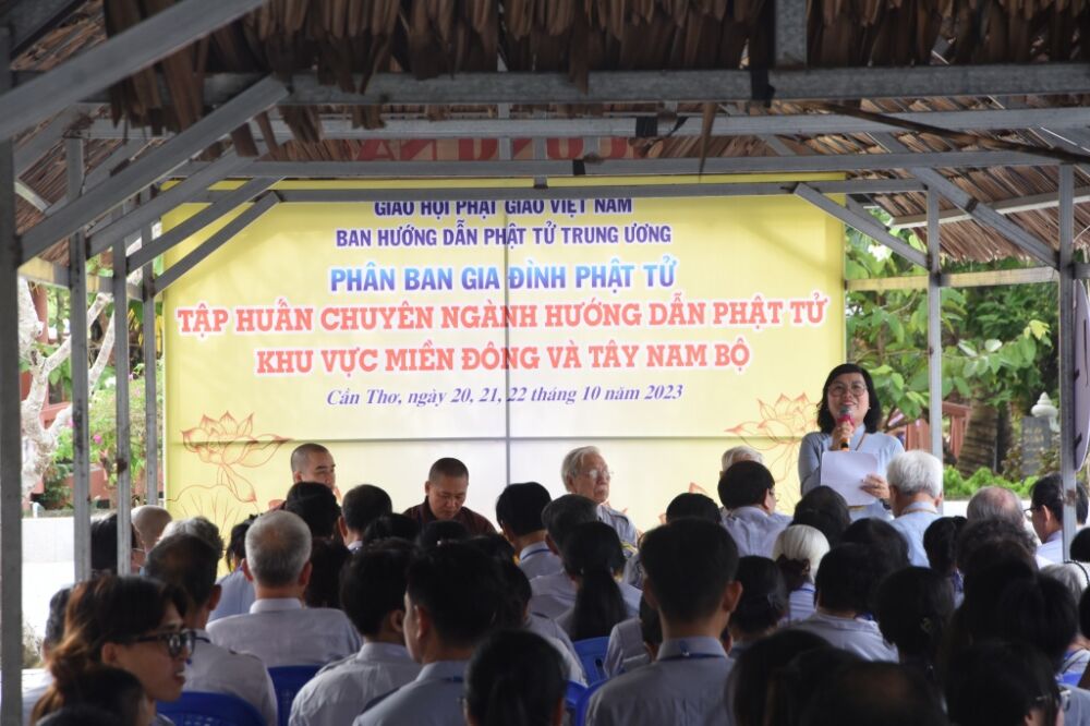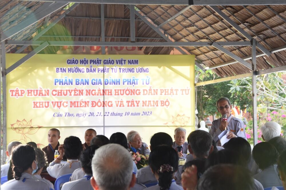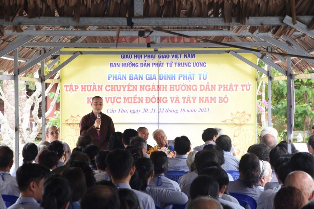 Chiều ngày 21 tháng 10 năm 2023, trong khuôn khổ khóa Tập huấn Chuyên ngành Hướng dẫn Phật tử do Ban Hướng dẫn Phật tử Trung ương tổ chức dành cho các tỉnh miền Đông và Tây Nam Bộ; Phân ban Gia đình Phật tử Trung ương đã có buổi làm việc với 114 đại biểu huynh trưởng của 07 đơn vị GĐPT miền Đông và 10 đơn vị GĐPT miền Tây Nam Bộ tại Hội trường số 9 Thiền viện Trúc Lâm Phương Nam, ấp Mỹ Nhơn, xã Mỹ Chánh, huyện Phong Điền thành phố Cần Thơ.