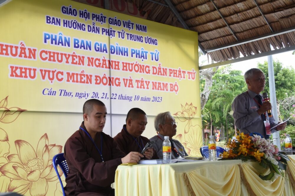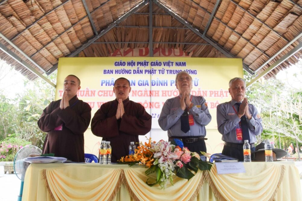Huynh trưởng cấp Dũng Tâm Giới Phan Ngọc Thảo, Phó trưởng ban Hướng dẫn Phật tử Trung ương, Trưởng Phân ban GĐPT và huynh trưởng cấp Dũng Thị Sơn Huỳnh Ngọc Lâm, Ủy viên Thường trực Ban Hướng dẫn Phật tử Trung ương, Phó Trưởng Ban Thường trực Phân ban Gia đình Phật tử làm chủ tọa với sự tham dự của chư tôn đức là Trưởng Phân ban GĐPT tỉnh Bến Tre, Đồng Tháp và Long An.