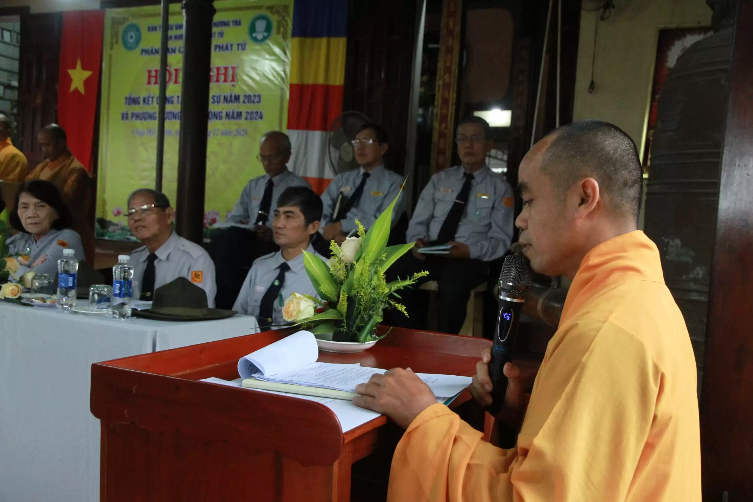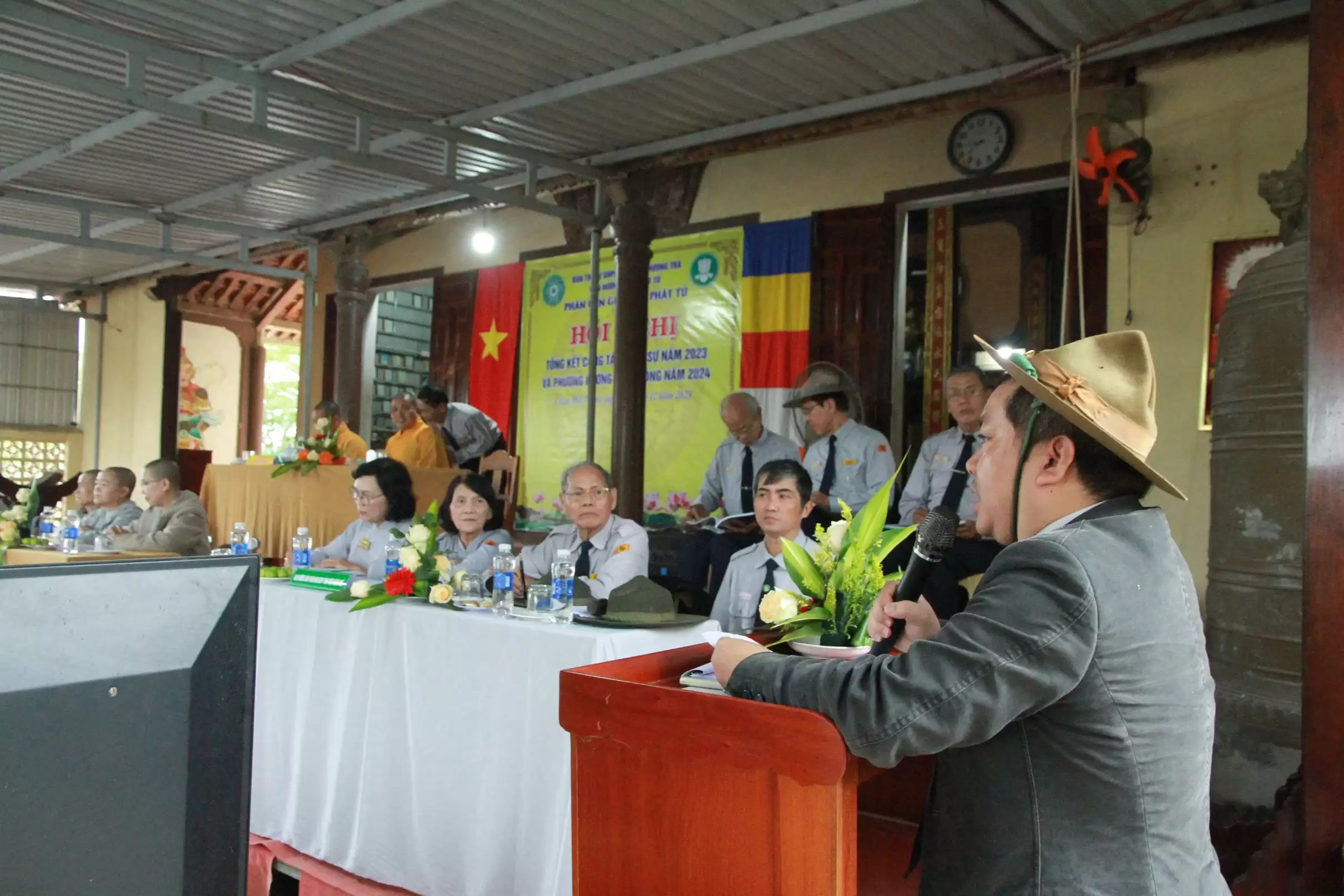 Sau đó, HTr. cấp Tín Nhật Tâm – Phạm Tịnh đã thay mặt PB GĐPT thị xã báo cáo tổng kết công tác Phật sự năm 2023 và dự thảo phương hướng hoạt động năm 2024. Hội nghị thảo luận sôi nổi với nhiều ý kiến của Ban huynh trưởng các đơn vị GĐPT, ý kiến của quý anh chị uỷ viên BHD PB GĐPT tỉnh Thừa Thiên Huế.