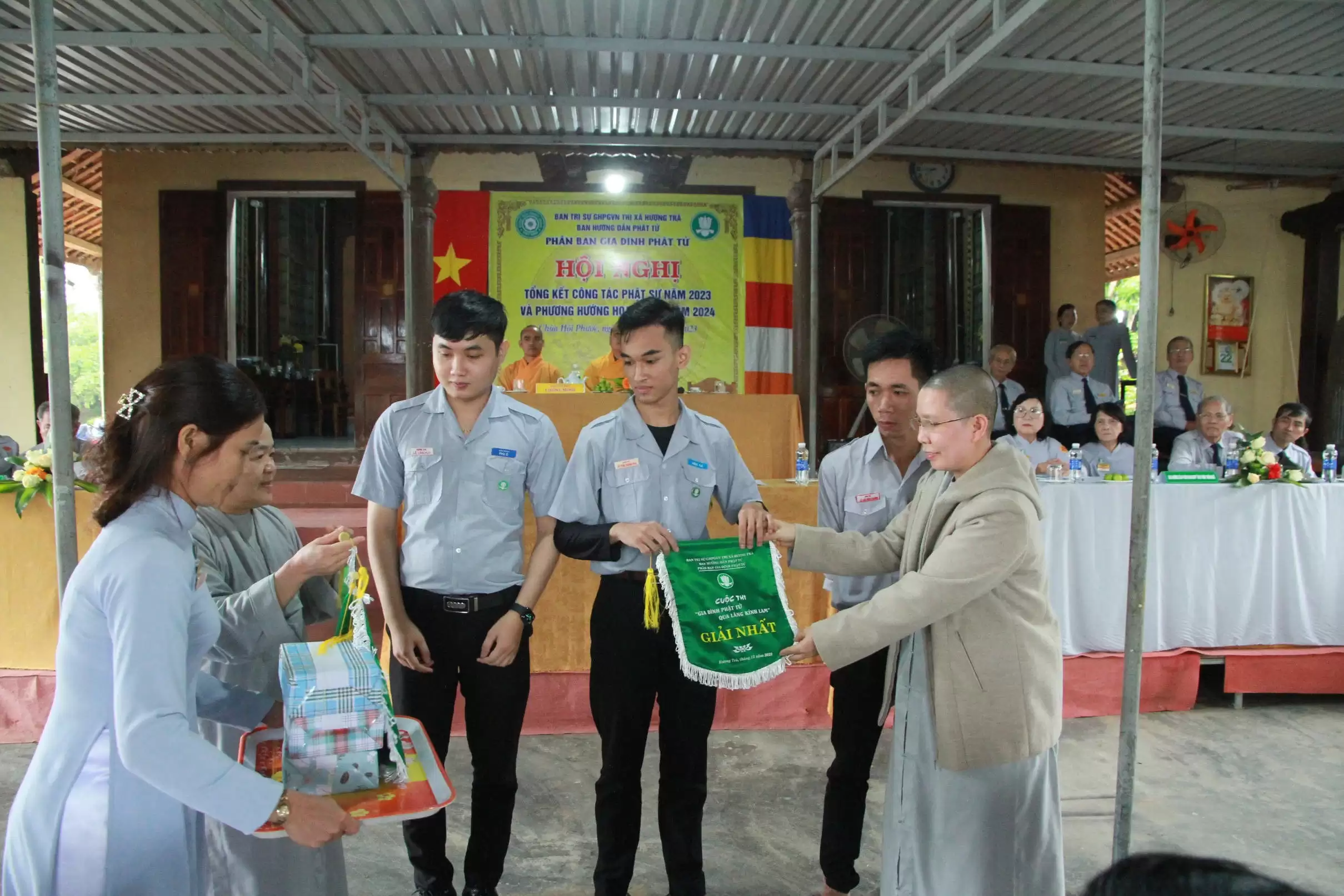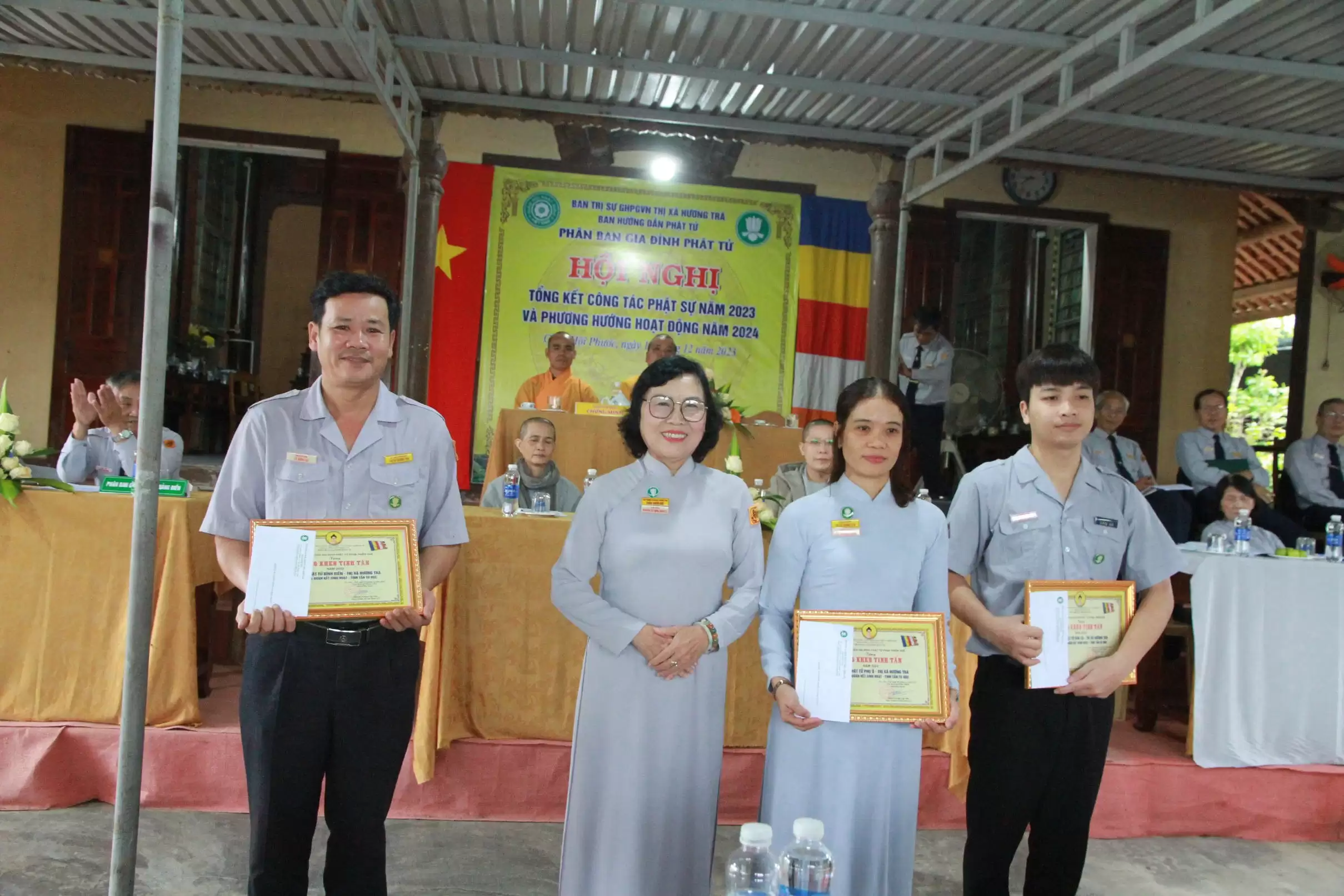 Tại hội nghị, BHD PB GĐPT tỉnh Thừa Thiên Huế đã tặng bằng khen tinh tấn tu học cho 03 đơn vị: Văn Xá, Phụ Ổ và Bình Điền. PB GĐPT thị xã đã khen thưởng 08 đoàn sinh có thành tích cao trong kỳ thi vượt bậc năm 2023 và trao giải cho cuộc thi “Gia Đình Phật Tử qua Lăng Kính Lam” với kết quả giải Nhất thuộc về GĐPT Văn Xá, giải nhì thuộc về GĐPT Phụ Ổ, giải ba thuộc về GĐPT Triều Sơn Trung.