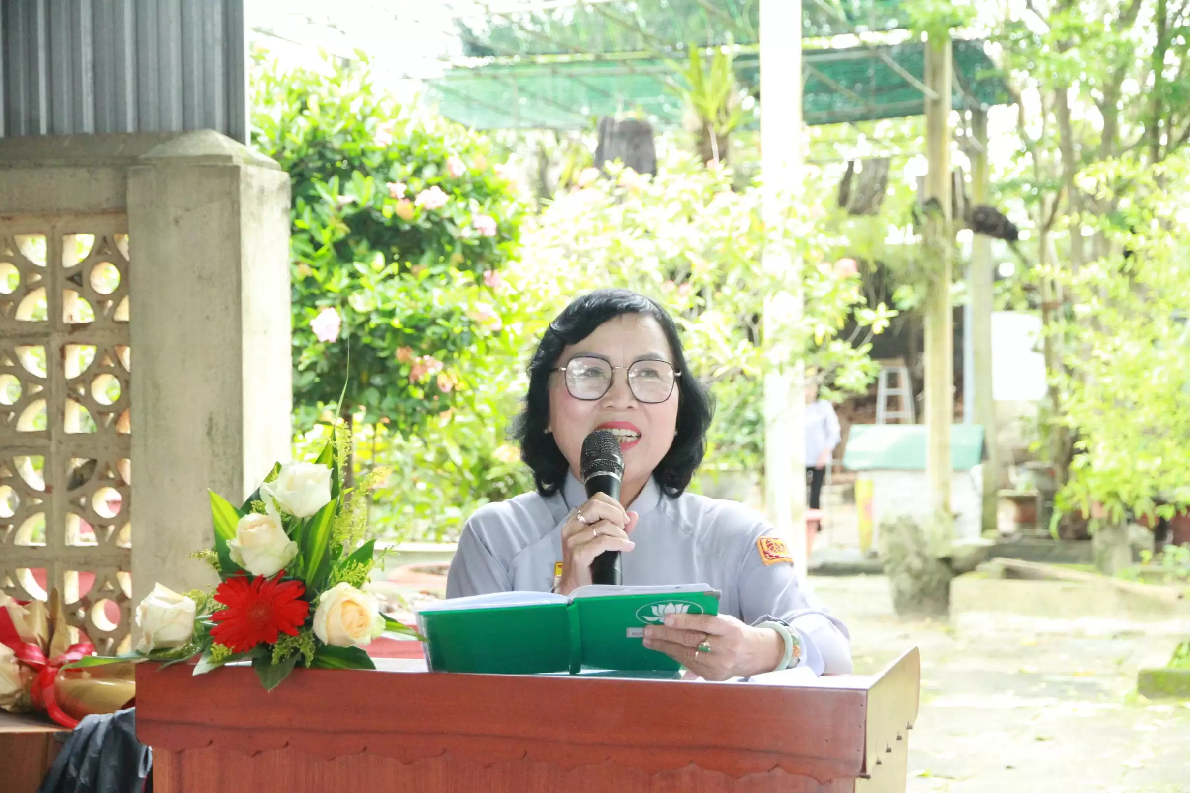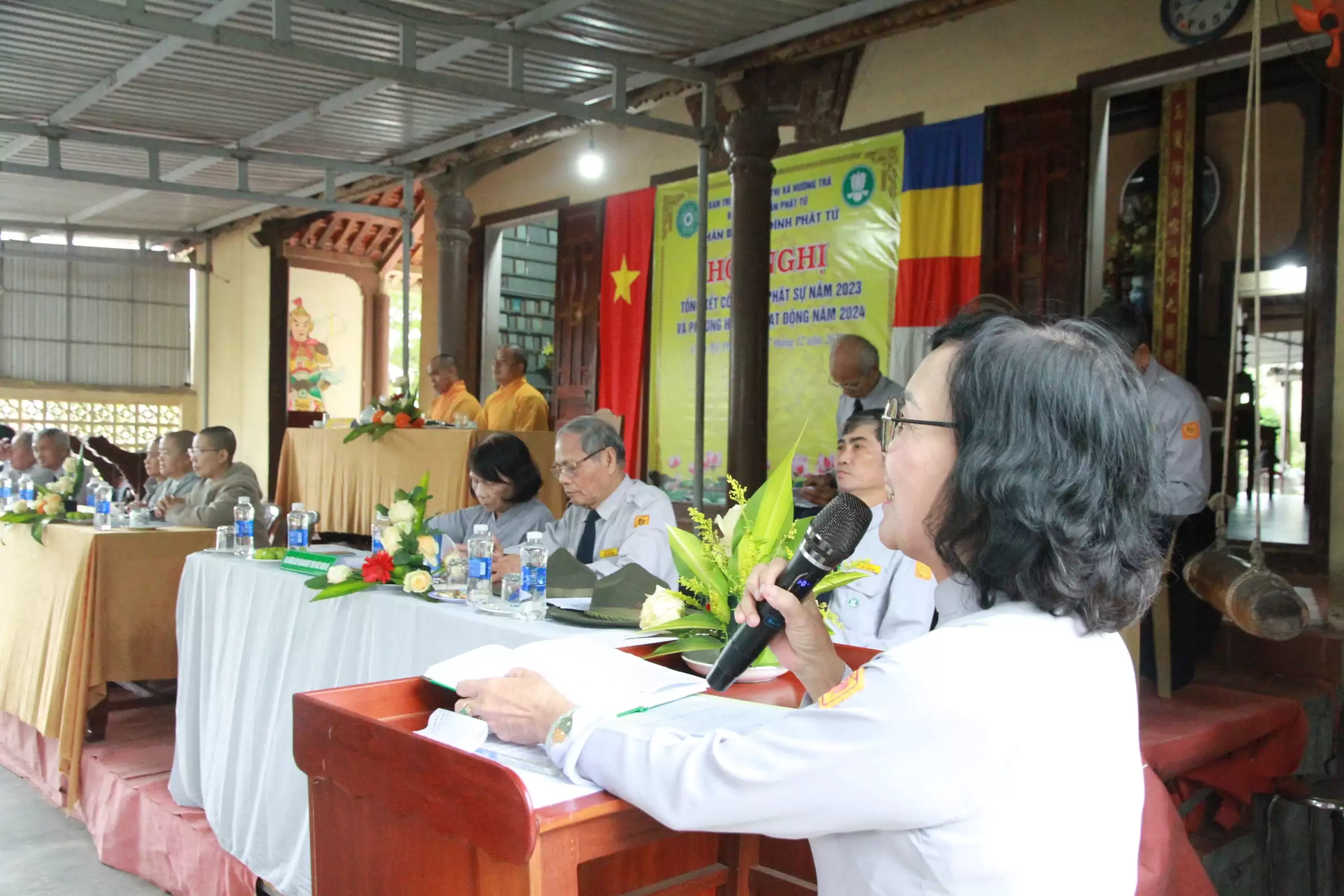 Phát biểu hướng dẫn tại Hội nghị, HTr. cấp Tấn Tâm Ngọc – Nguyễn Thị Minh Nguyệt đã biểu dương PB GĐPT thị xã và biểu dương từng đơn vị.
